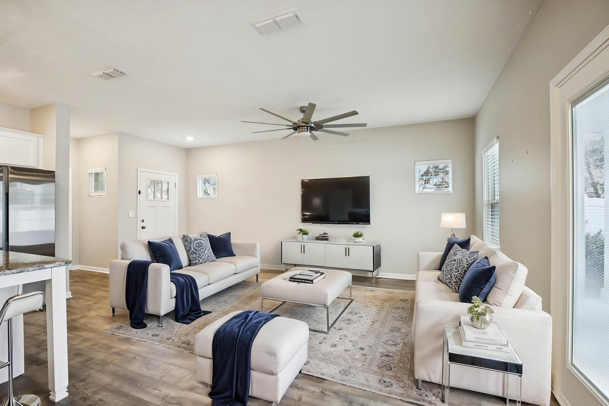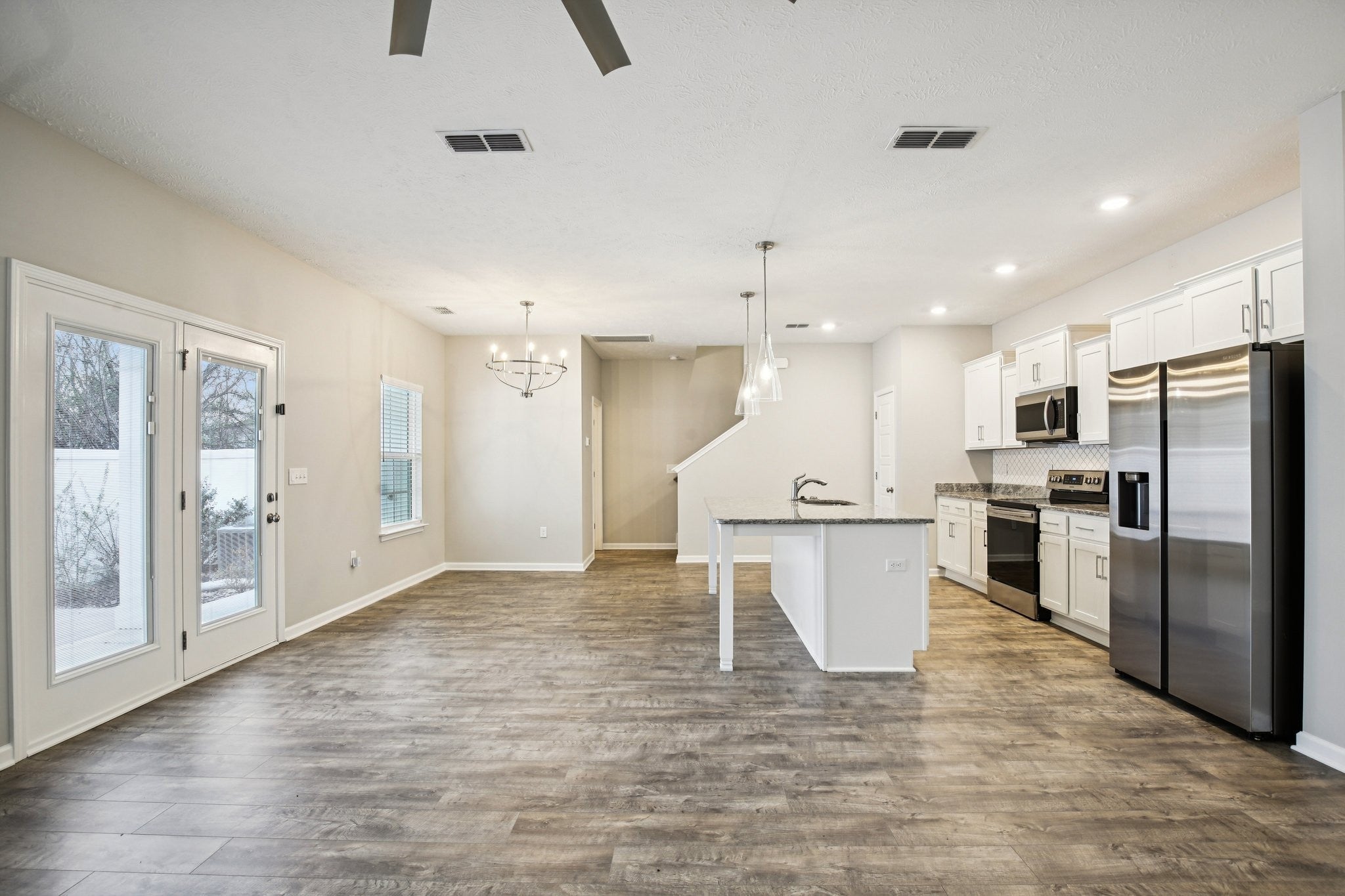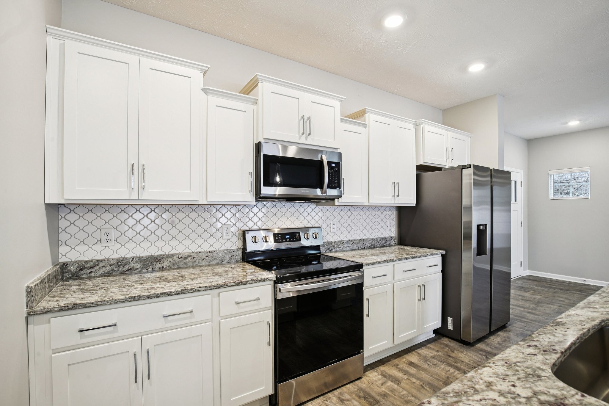 - Built-In Electric Range, Dishwasher, Disposal, Microwave, Refrigerator