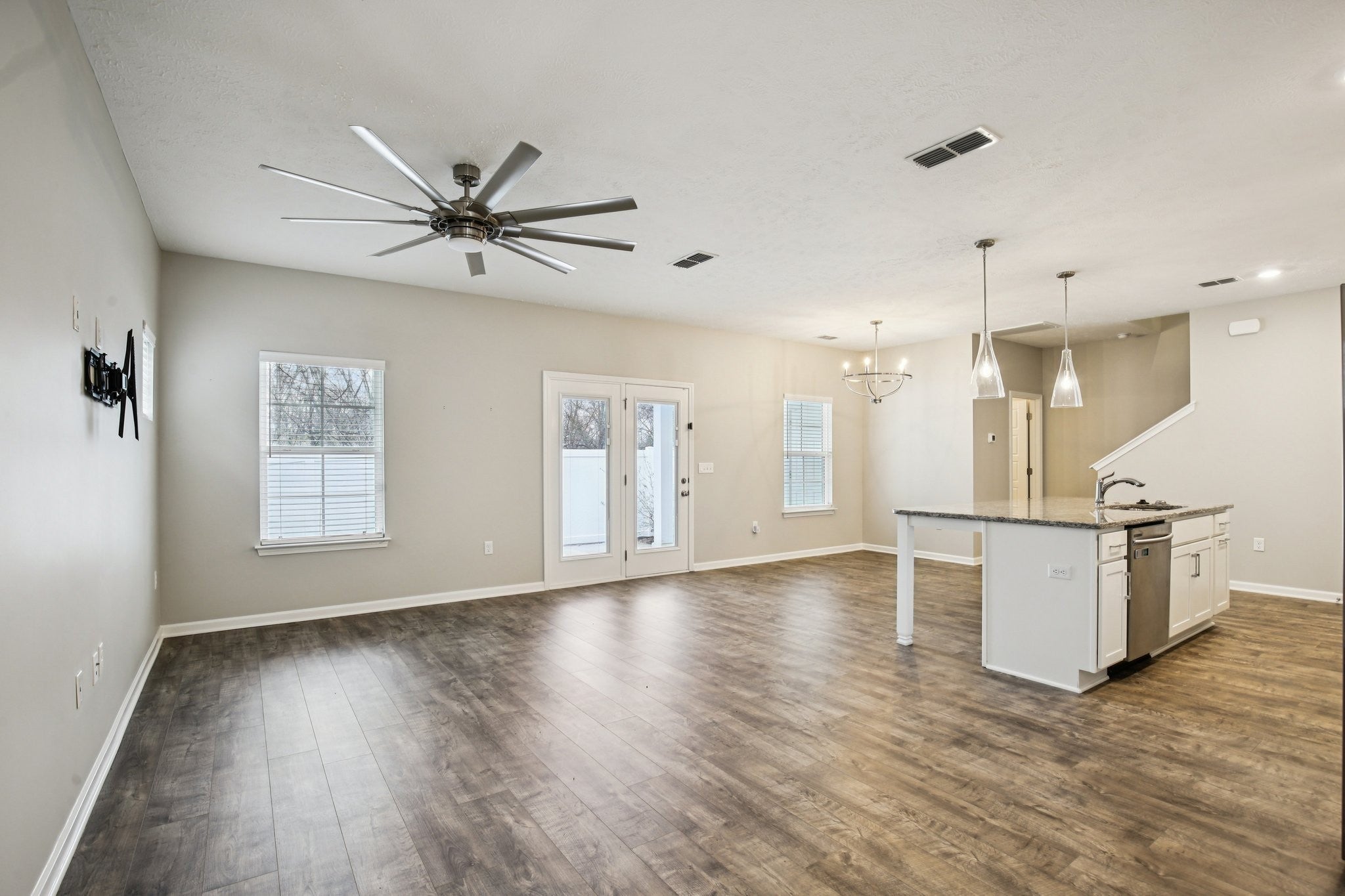 Located in the highly sought-after Jackson Towne Luxury Townhome Community, this stunning A-Plan home is filled with upgrades and thoughtful design details throughout. Enjoy outdoor living and added privacy on the fully fenced concrete patio, ideal for relaxing evenings, morning coffee, or entertaining guests. Inside, the beautifully designed kitchen shines with stainless steel appliances, granite countertops, crisp white cabinetry, and a stylish tile backsplash, creating a bright, timeless, and highly functional space. Granite countertops extend into all bathrooms, adding a cohesive touch of elegance and quality throughout the home. Backing up to a peaceful tree line, this property offers rare privacy and a serene backdrop not often found in townhome living—perfectly blending nature with neighborhood convenience. Just a short walk to the community pool and dog parks, this home also offers quick access to shopping, dining, and major routes, making everyday living easy and enjoyable. As an added bonus, the preferred lender is offering up to $4,000 toward buyer closing costs (with acceptable offer and loan terms). Whether you’re a first-time buyer, downsizer, or investor, this home delivers an exceptional combination of luxury, comfort, lifestyle convenience, and real financial value. Don’t miss your opportunity—schedule your private showing today!