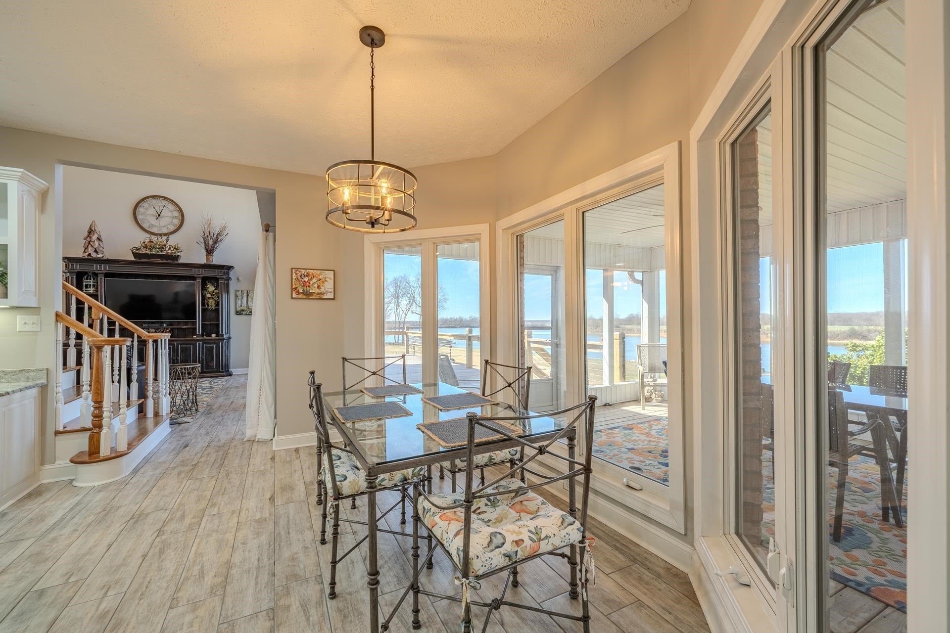 Welcome to your dream home on the TN River in the prestigious Cravens Area. This beautiful 5Br, 4 full Ba, 1 half Ba waterfront property offers space, style, & unforgettable views. Great room boasts vaulted ceilings & an open, airy feel, while the eat-in kitchen provides the perfect setting for family meals overlooking the water. Formal dining room adds elegance for entertaining & scenic river views can be enjoyed from nearly every room in the home. Designed w/both comfort & functionality in mind, home also features a private office, bonus room, spacious laundry room, & finished basement offering additional living & entertaining space. Outdoor living is just as impressive w/screened-in porch & 2 expansive decks – ideal for relaxing or hosting while taking in the riverfront setting. The home offers 4 garage spaces, including 1 perfectly suited for boat storage, & an electric car charging station. Getting on the water is quick & easy w/convenient boat ramp located just down the road.