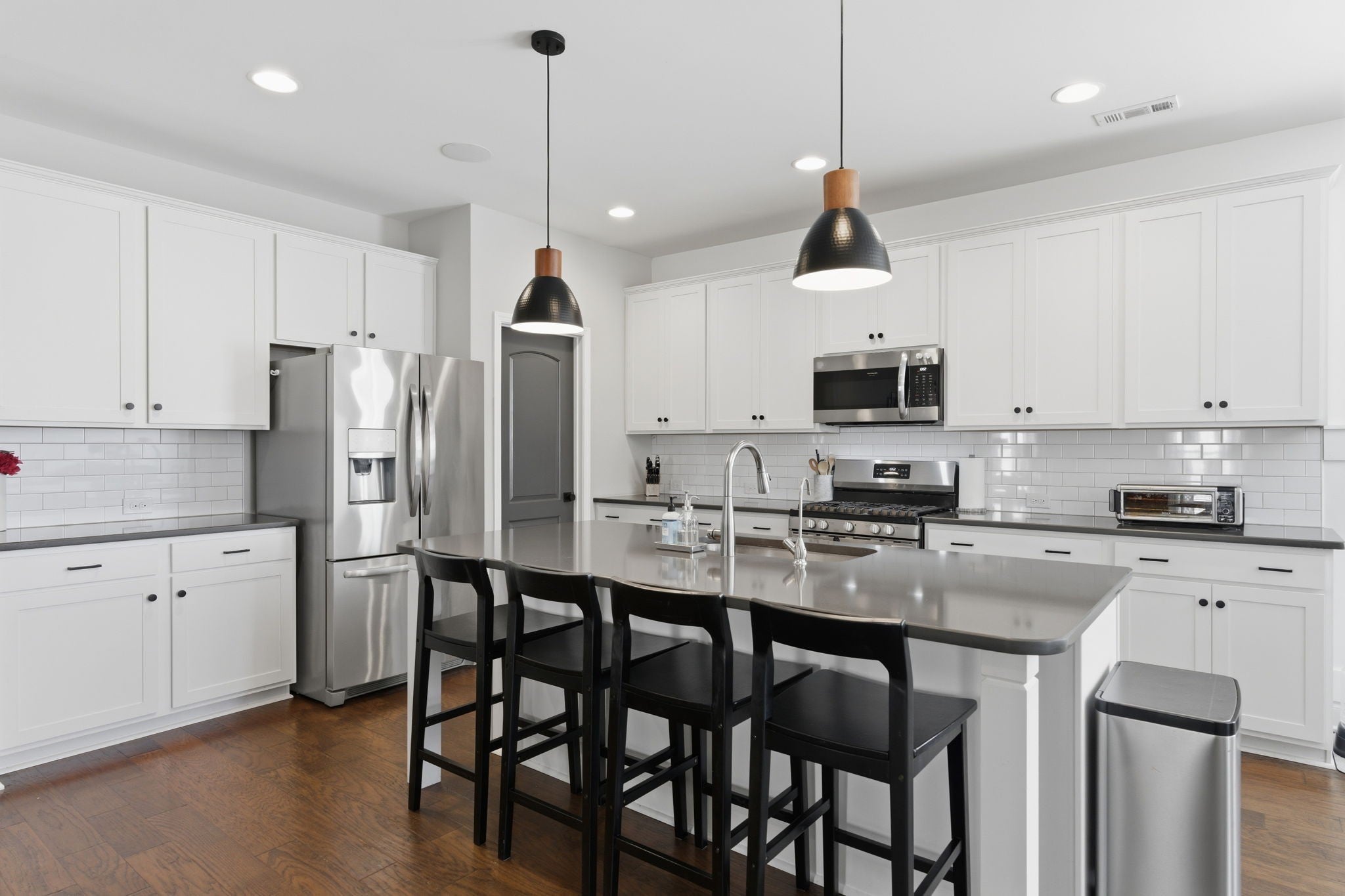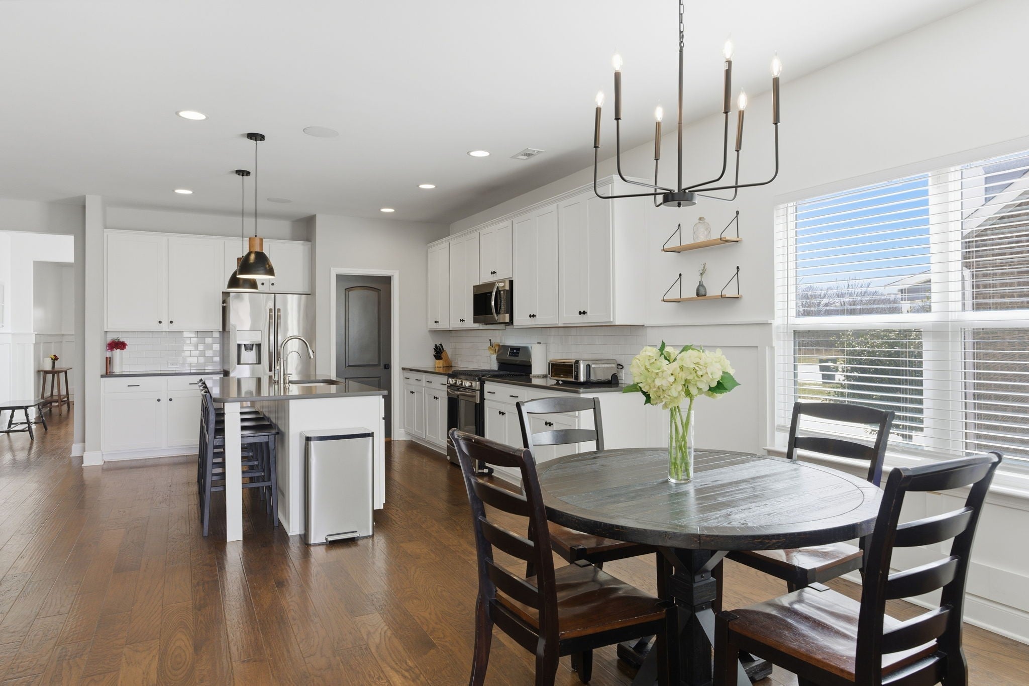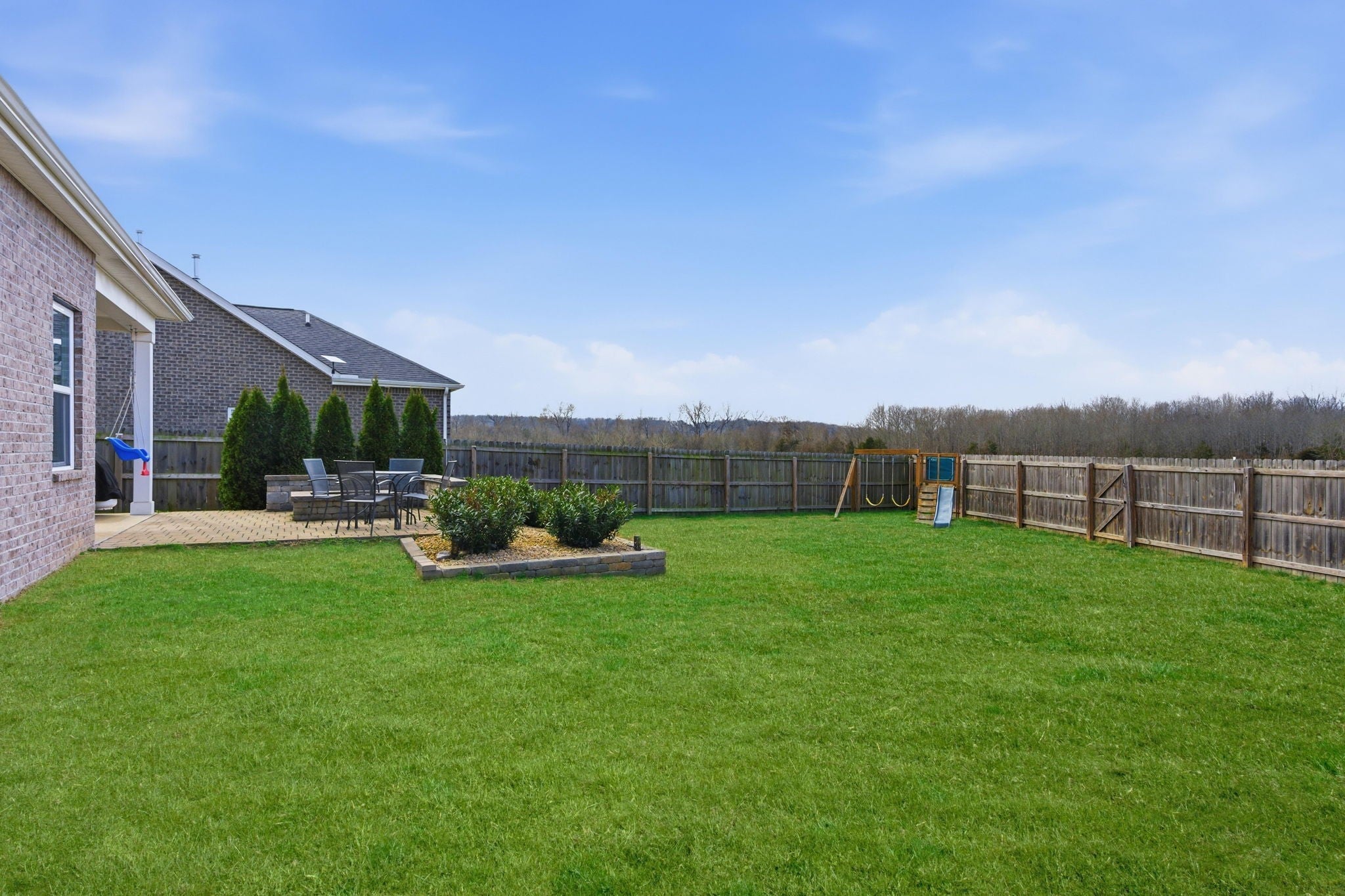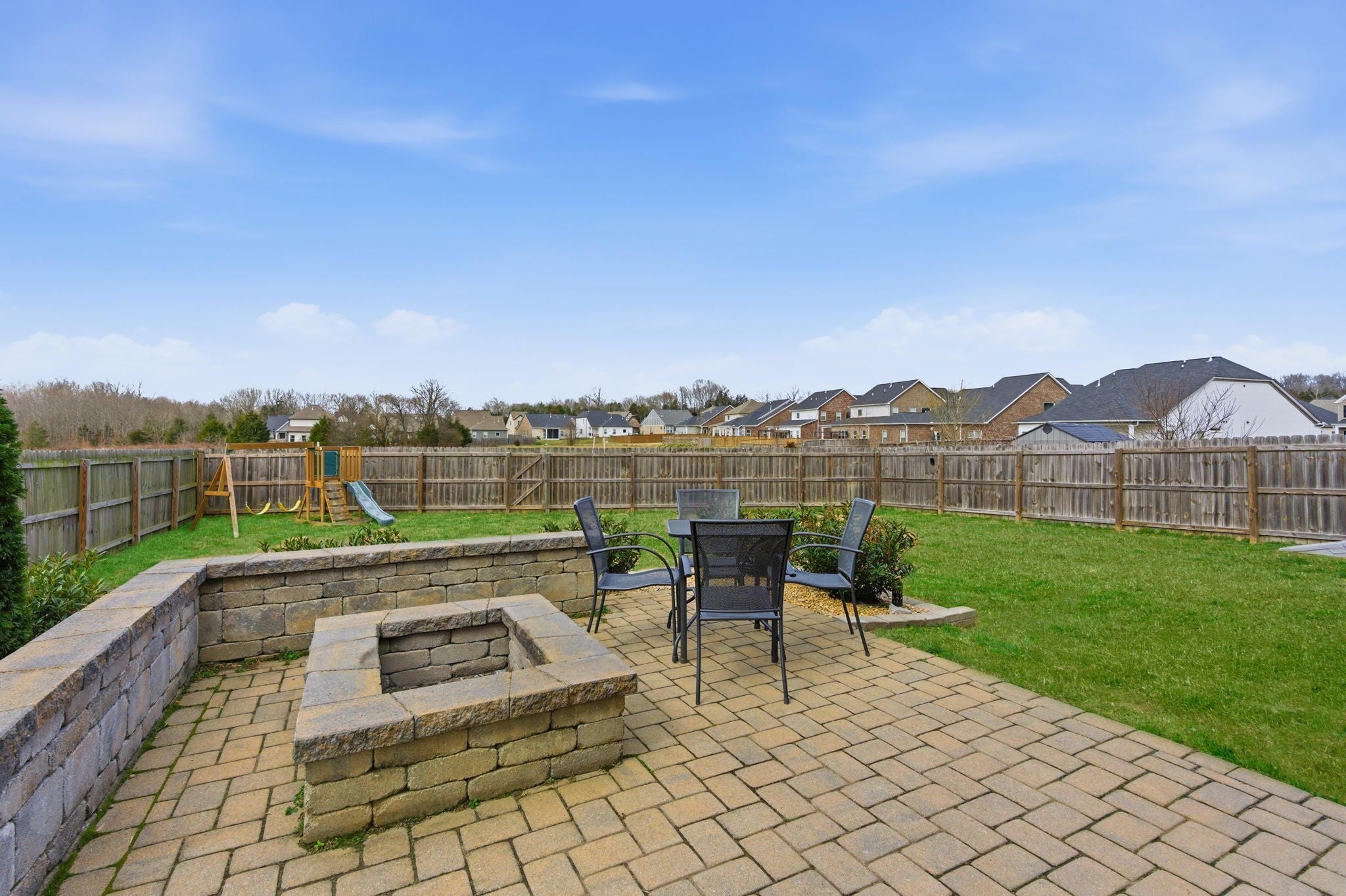 Welcome to 606 Oakvale Ln in the highly sought-after Oakvale community of Mount Juliet! Built in 2020, this beautifully designed home offers over 2,400 square feet of thoughtfully planned living space with 4 bedrooms and 3 full baths, including two bedrooms conveniently located on the main level. The open-concept layout features hardwood flooring in the formal areas and a stunning gourmet kitchen complete with granite countertops, tile backsplash, stainless steel appliances, and a spacious walk-in pantry—perfect for entertaining and everyday living. The expansive primary suite provides a relaxing retreat with a spa-like bath, dual vanities, and a large walk-in closet. Step outside to enjoy the open patio, with cover and gas fire pit!!!! Fully fenced backyard, private for quiet evenings or hosting guests. Additional highlights include a 2-car garage, energy-efficient systems, low HOA fees, and access to the neighborhood playground. All of this just minutes from top-rated schools, shopping, dining, and everything Mount Juliet has to offer!
