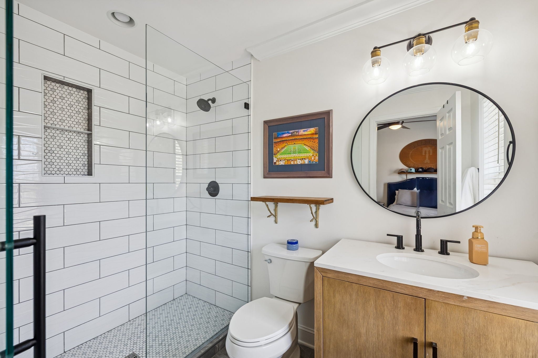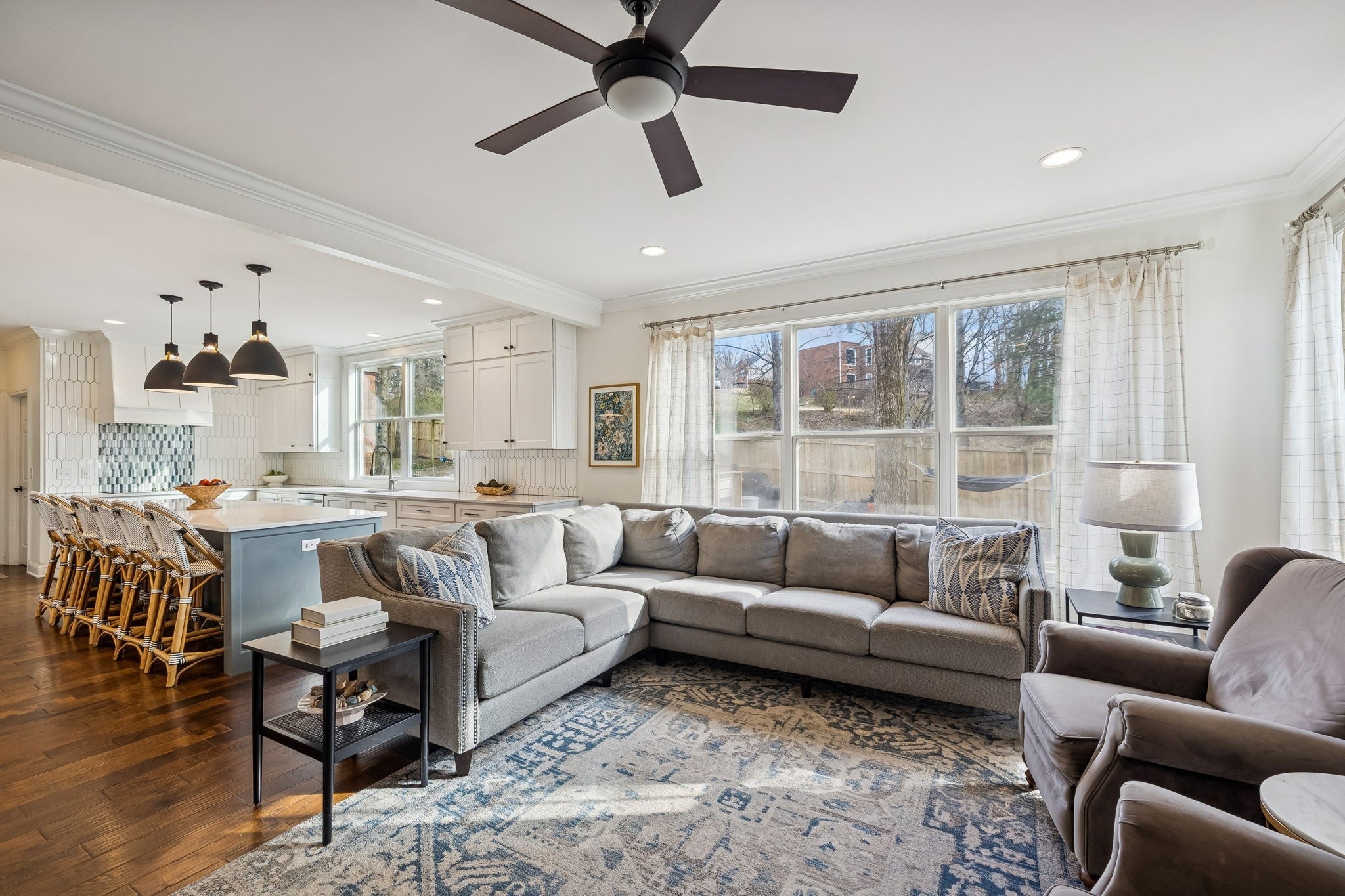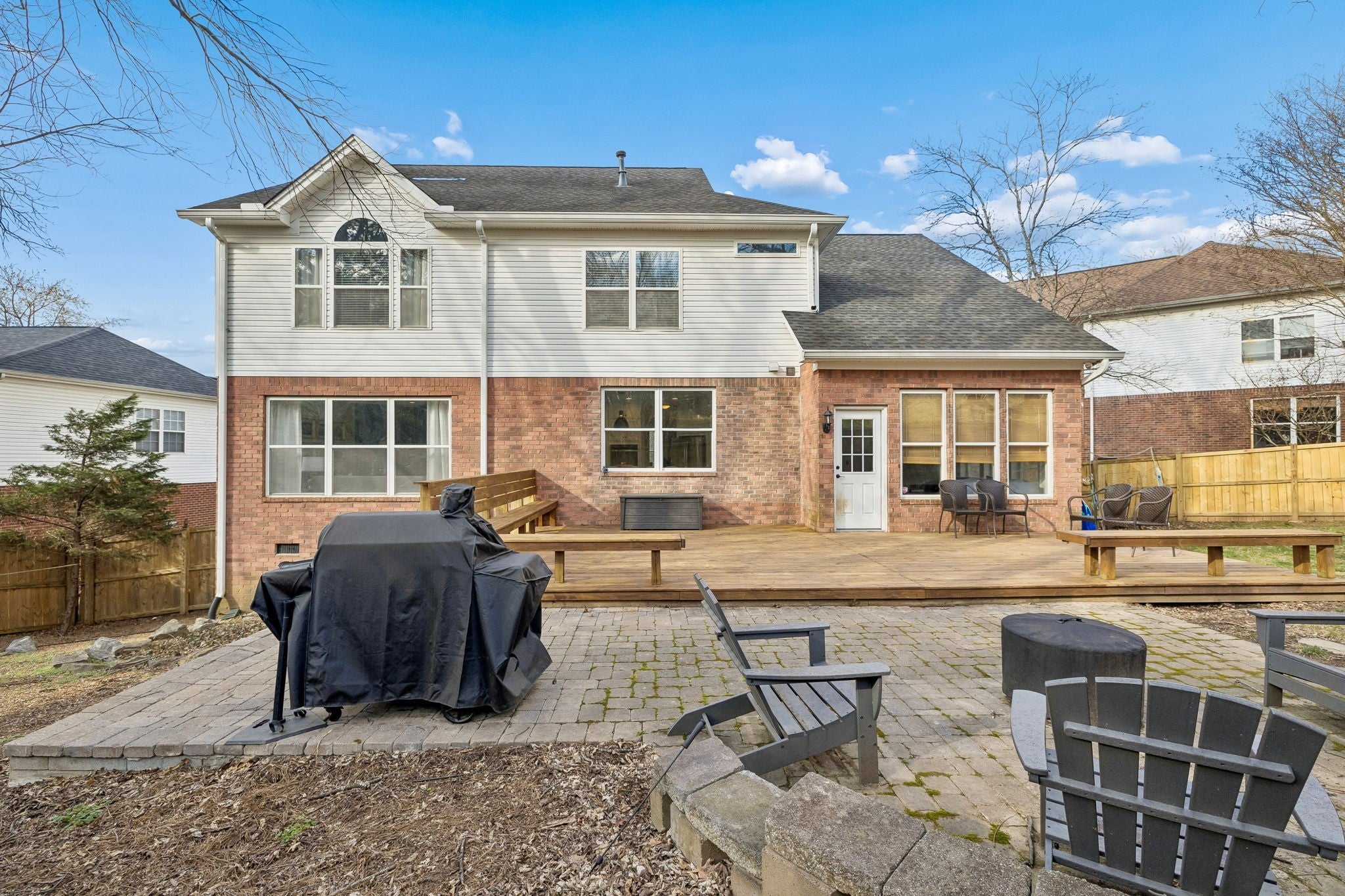 Welcome Home! This gorgeous Fieldstone Farms stunner is the one you have dreamed of! Don't miss this rare opportunity to own a fully updated 4 bedroom, 3 1/2 bath home in Franklin for under a million. An over- sized kitchen island, quartz countertops, double oven, wine fridge, cook top stove, custom range hood, floor to ceiling cabinets, soft close drawers, an undermount single bowl sink, custom pantry cabinets and drawers, stylish pendant lights, and huge windows facing the backyard make this kitchen a true chef's dream! Updated light fixtures throughout the home, hardwood flooring, trendy bannisters, tasteful wallpaper, new vanities, polished tile work in each of the three full bathrooms, decorative mirrors, a gas fireplace, built-ins throughout, and custom woodwork are just a few of the additional updates you will find. Outside is a spacious fenced backyard with a large deck that's perfect for entertaining! On the main level is also a bonus room/flex space perfect as a Florida room/ playroom/TV room/ music room--make it your own! Upstairs you will find an office space, currently being used as a sewing room/closet, and two large, walk-in storage spaces. Just minutes from charming downtown Franklin, Fieldstone Farms has two pools, a clubhouse, numerous parks, walking trails, playgrounds, Harpeth River canoe access, tennis courts, pickle ball courts, community events, and more! This home is walking distance to shops and restaurants and zoned for top ranking Williamson County schools. Come check it out, and make this outstanding home yours!