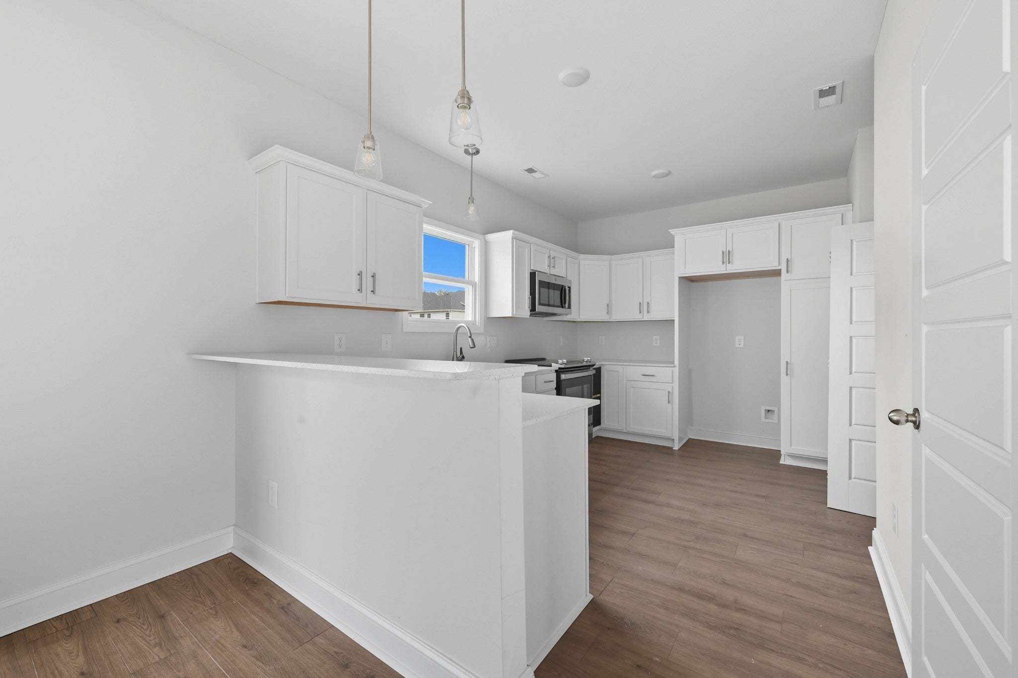 - Electric Range, Dishwasher, Disposal, Microwave