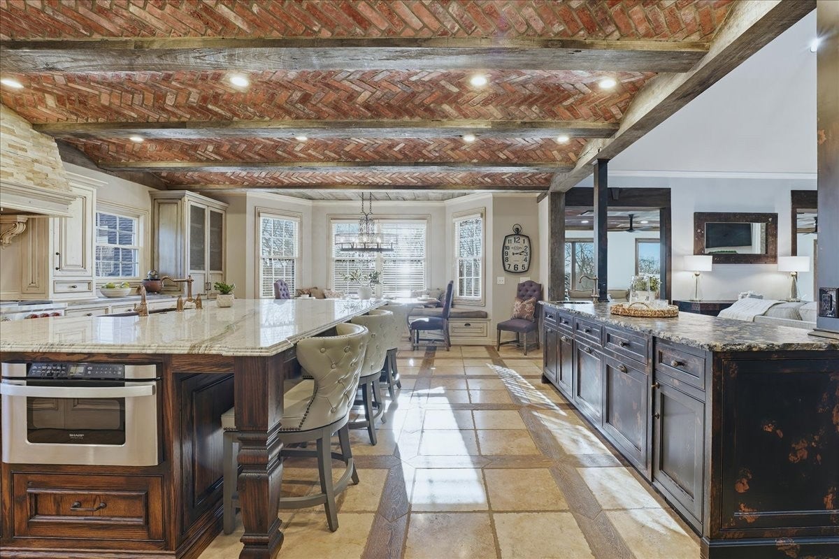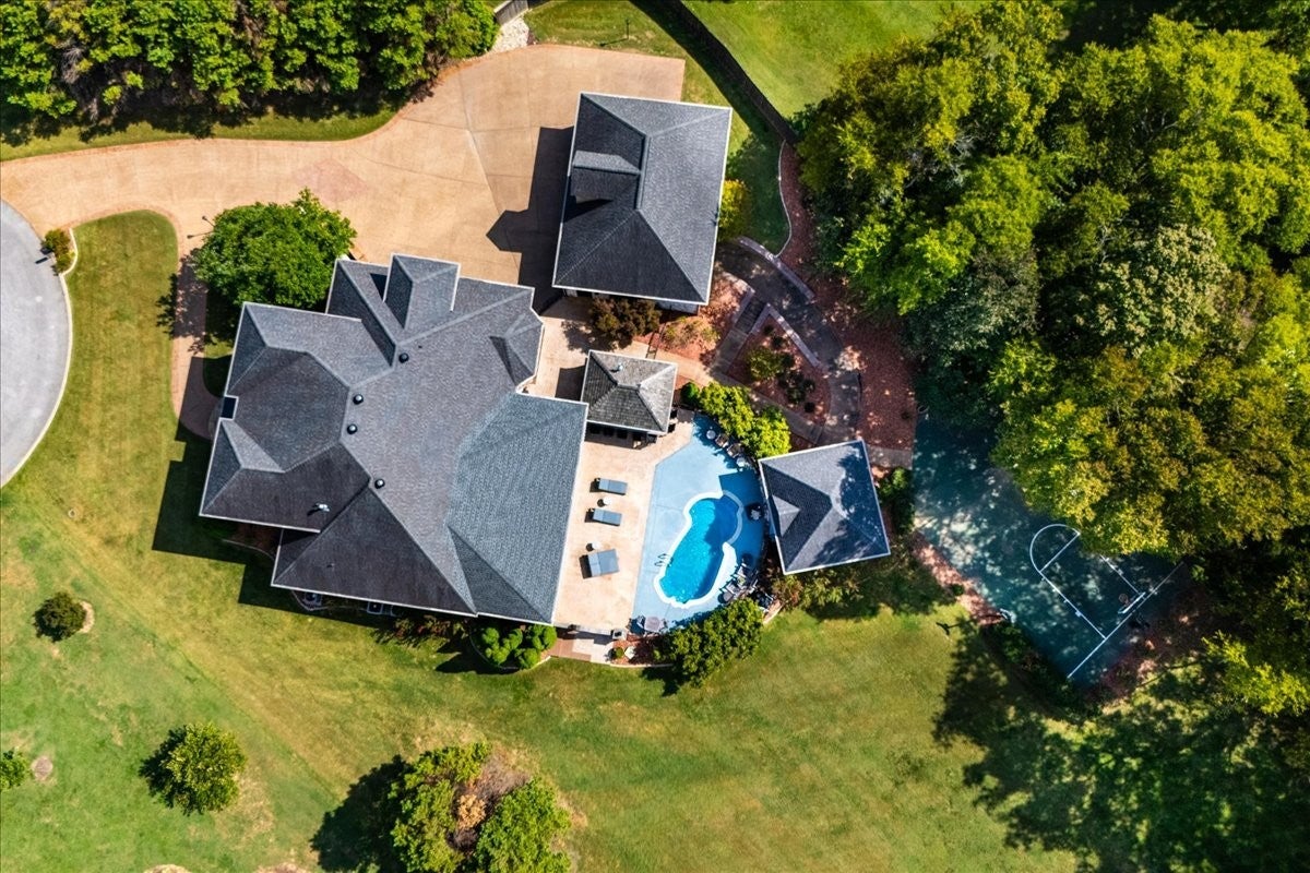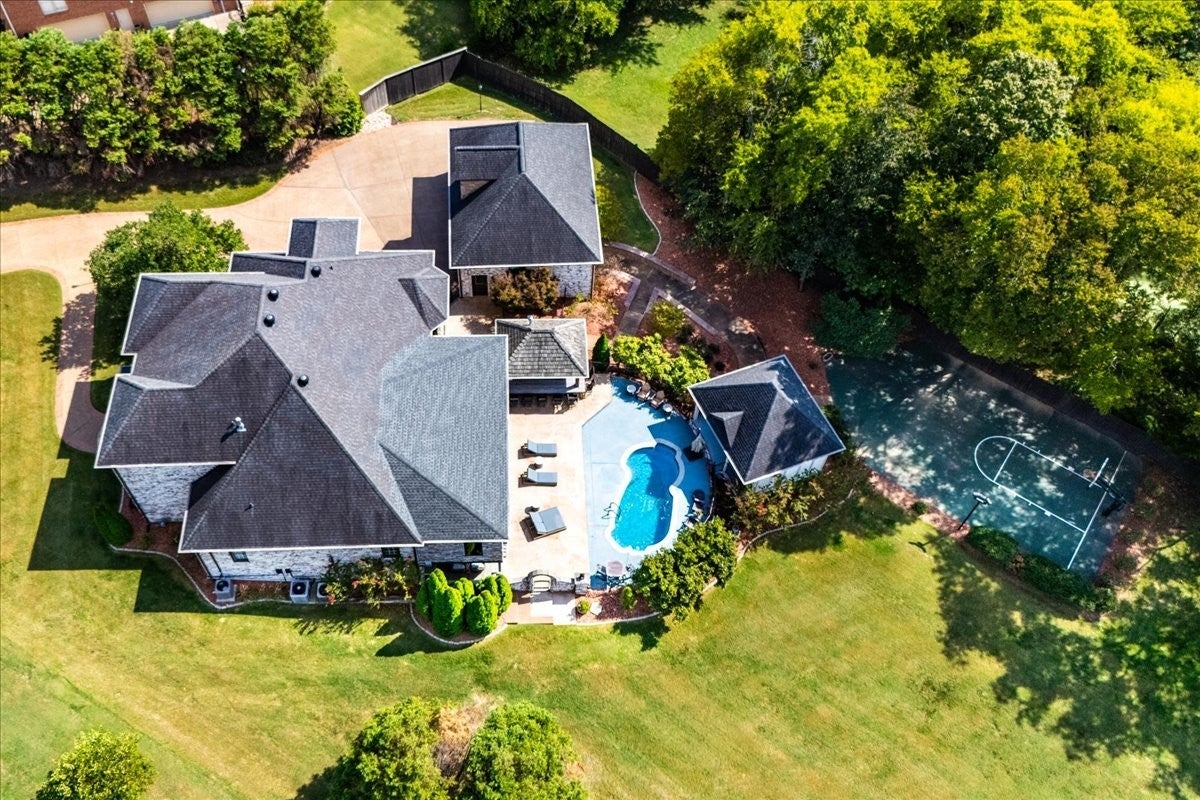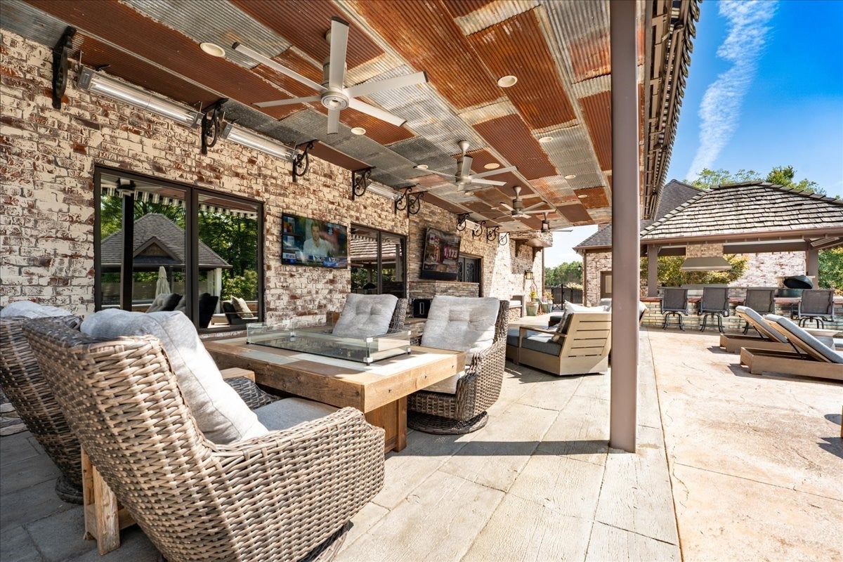 Architectural Masterpiece – Every Box Checked! This one-of-a-kind luxury sanctuary offers custom detail designed for the ultimate host. The heart of the home is a dream chef’s kitchen featuring a brick herringbone barrel-vaulted ceiling, rustic timber beams, a furniture-grade island, and a world-class appliance suite including a 72” Sub-Zero fridge, 48” Wolf double-oven range, and hidden walk-in pantry. The grand great room boasts dramatic vaults and a unique curved mezzanine balcony, leading to a new 14’x39’ sunroom with dedicated HVAC for year-round comfort. The entertainment continues in the full daylight walk-out basement, anchored by a media room with a two-sided stone fireplace and a "private club" style bar seating eight, complete with Sub-Zero refrigeration, an ice maker, and a warming drawer. This level also includes a 4th bedroom, full bath, and dedicated home gym. The attached 3-car garage is currently a premier "hangout retreat" but easily reverts to vehicle storage. Outside, the 1.27-acre private lot is a recreational paradise featuring a 25’x12’ heated/cooled pool and a 9-seat saltwater hot tub with a summer chiller. The vaulted outdoor kitchen is a culinary oasis with an XL Green Egg, 48” gas grill, power burners, and industrial "Big A" fans. Relax under the 40’ remote awning and covered living areas with dual TVs, a fireplace, and overhead heaters. Active owners will love the professional-grade basketball/pickleball court and the extra-deep 29’x40’ detached 3-car garage with epoxy floors and a full workshop basement. Systems are top-tier: whole-house water filtration, tankless water heater, TERSus air scrubbers, Anthem-powered AV, and smart irrigation. All this with NO HOA! Truly a one-of-a-kind retreat designed for making memories.