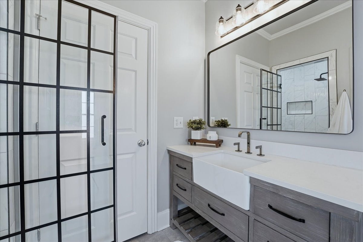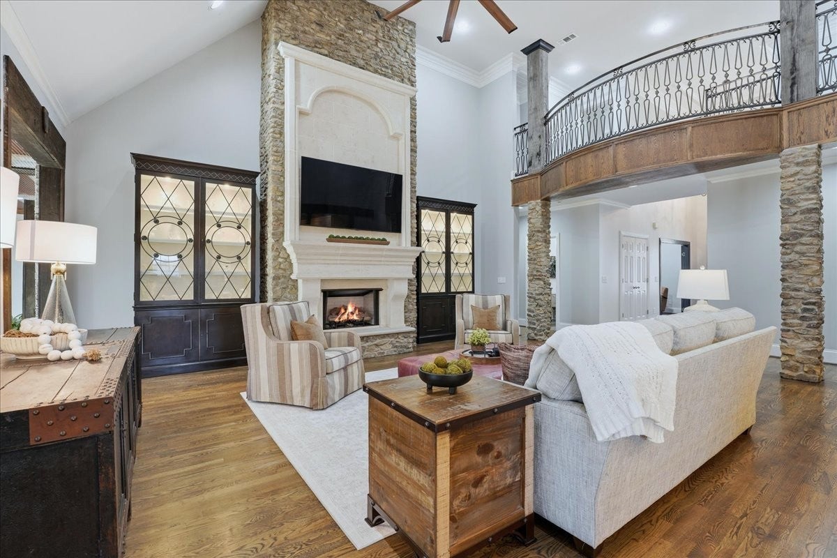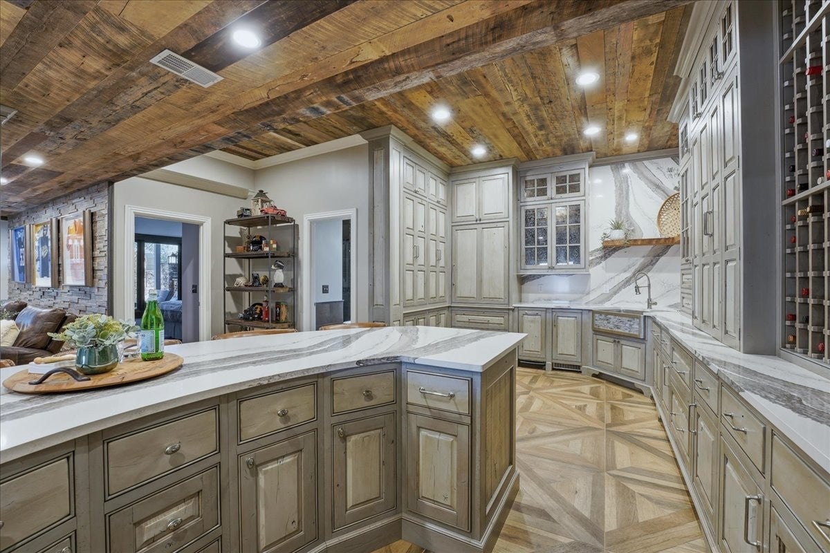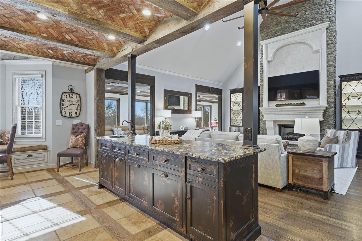 Architectural Masterpiece – Every Box Checked! This one-of-a-kind luxury sanctuary offers custom detail designed for the ultimate host. The heart of the home is a dream chef’s kitchen featuring a brick herringbone barrel-vaulted ceiling, rustic timber beams, a furniture-grade island, and a world-class appliance suite including a 72” Sub-Zero fridge, 48” Wolf double-oven range, and hidden walk-in pantry. The grand great room boasts dramatic vaults and a unique curved mezzanine balcony, leading to a new 14’x39’ sunroom with dedicated HVAC for year-round comfort. The entertainment continues in the full daylight walk-out basement, anchored by a media room with a two-sided stone fireplace and a "private club" style bar seating eight, complete with Sub-Zero refrigeration, an ice maker, and a warming drawer. This level also includes a 4th bedroom, full bath, and dedicated home gym. The attached 3-car garage is currently a premier "hangout retreat" but easily reverts to vehicle storage. Outside, the 1.27-acre private lot is a recreational paradise featuring a 25’x12’ heated/cooled pool and a 9-seat saltwater hot tub with a summer chiller. The vaulted outdoor kitchen is a culinary oasis with an XL Green Egg, 48” gas grill, power burners, and industrial "Big A" fans. Relax under the 40’ remote awning and covered living areas with dual TVs, a fireplace, and overhead heaters. Active owners will love the professional-grade basketball/pickleball court and the extra-deep 29’x40’ detached 3-car garage with epoxy floors and a full workshop basement. Systems are top-tier: whole-house water filtration, tankless water heater, TERSus air scrubbers, Anthem-powered AV, and smart irrigation. All this with NO HOA! Truly a one-of-a-kind retreat designed for making memories.