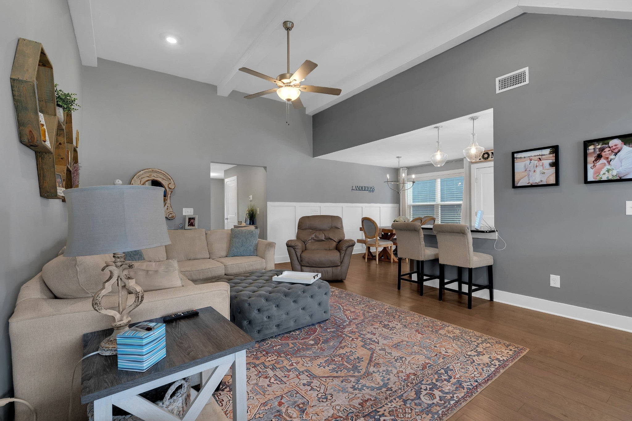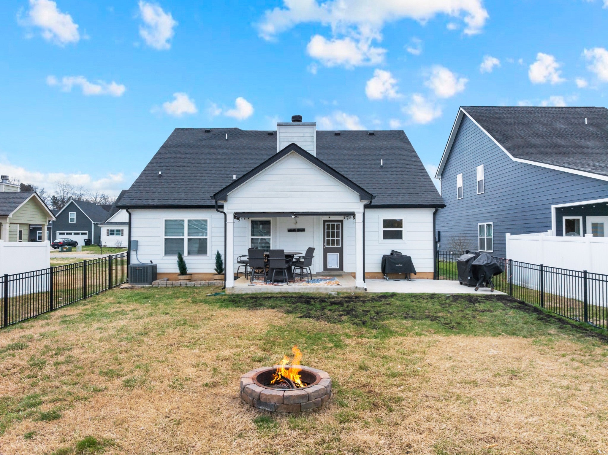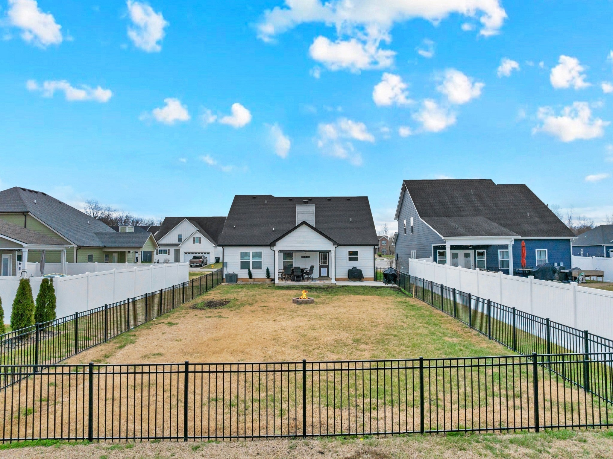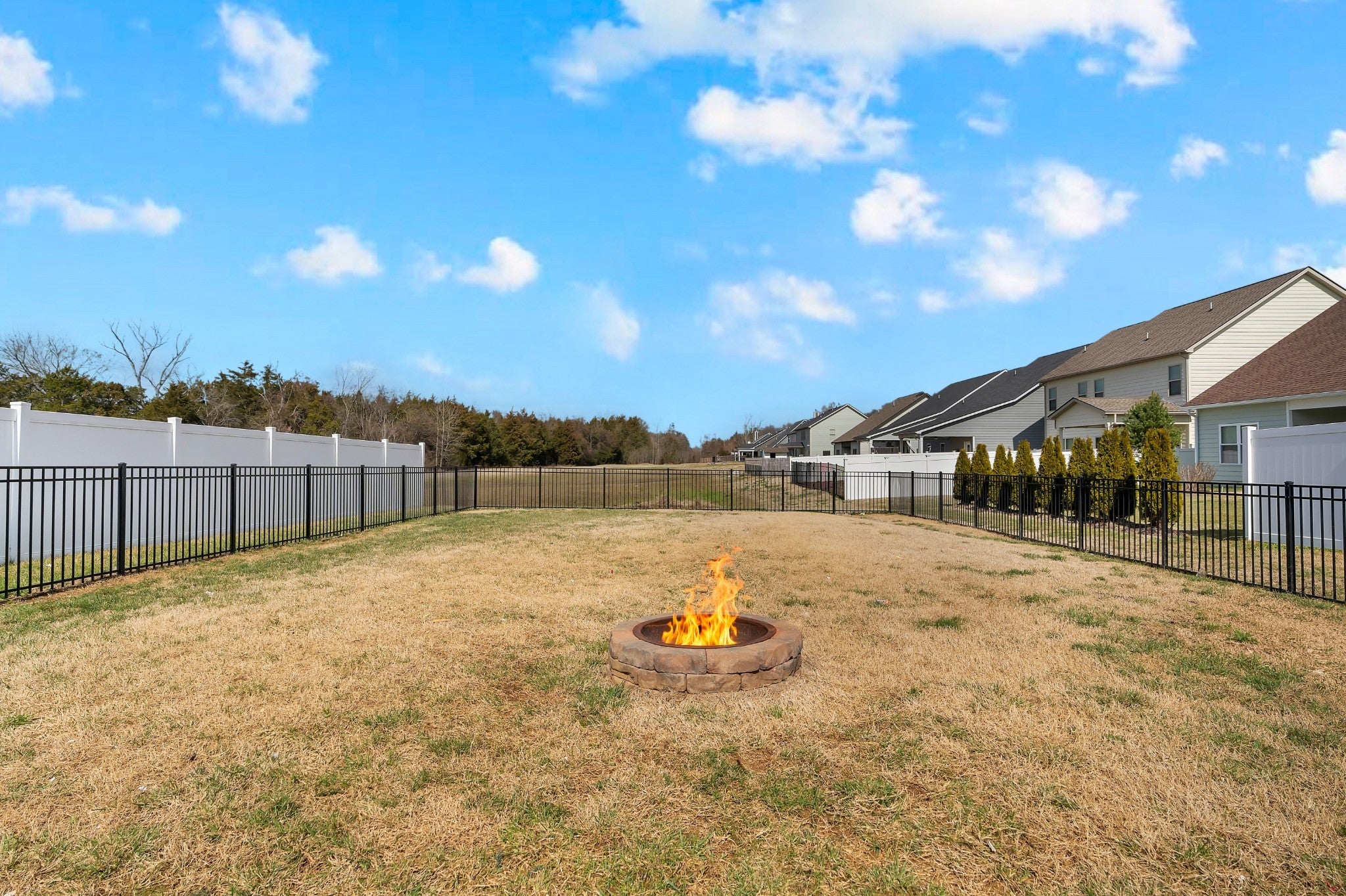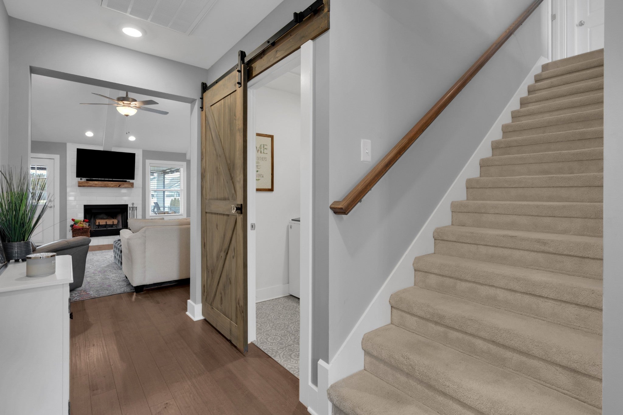 Beautifully maintained and move-in ready, this 3-bedroom, 3-bath home offers 2,121 square feet of thoughtfully designed living space in a quiet, family-friendly subdivision across from the Richard Siegel Soccer Complex. All three bedrooms are conveniently located on the main floor, providing easy, functional living. The primary suite features a tiled walk-in shower, double vanity, linen closet, and spacious walk-in closet. Upstairs, the large bonus room with its own full bath offers flexible space for a fourth bedroom, guest suite, office, or media room, complete with built-ins, an electric fireplace, and new carpet. The vaulted living room with a wood-burning fireplace flows into the open dining area and kitchen, showcasing stainless steel appliances, granite countertops, white subway tile backsplash, and a pantry. Fresh interior paint and wainscoting in the bathrooms and bedrooms add charm throughout. Additional storage includes a walk-in attic and a generous under-stair garage closet. With added upgrades like whole-home blinds, the fully fenced backyard with black aluminum fencing, a covered patio, and expanded concrete patio --- perfect for entertaining, this home offers conveniences not typically found in new construction! Ideally located on the desirable side of Murfreesboro, it’s truly move-in ready—even for your fur babies!