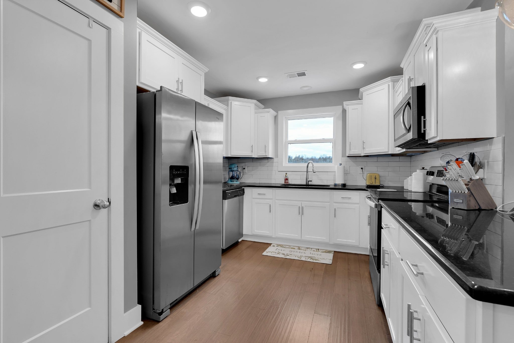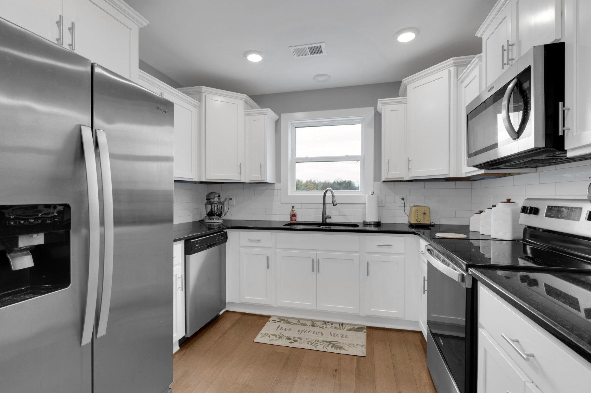 - Electric Range, Dishwasher, Microwave, Refrigerator, Stainless Steel Appliance(s)