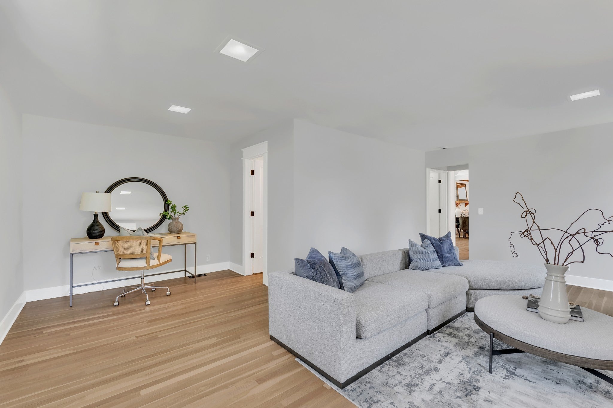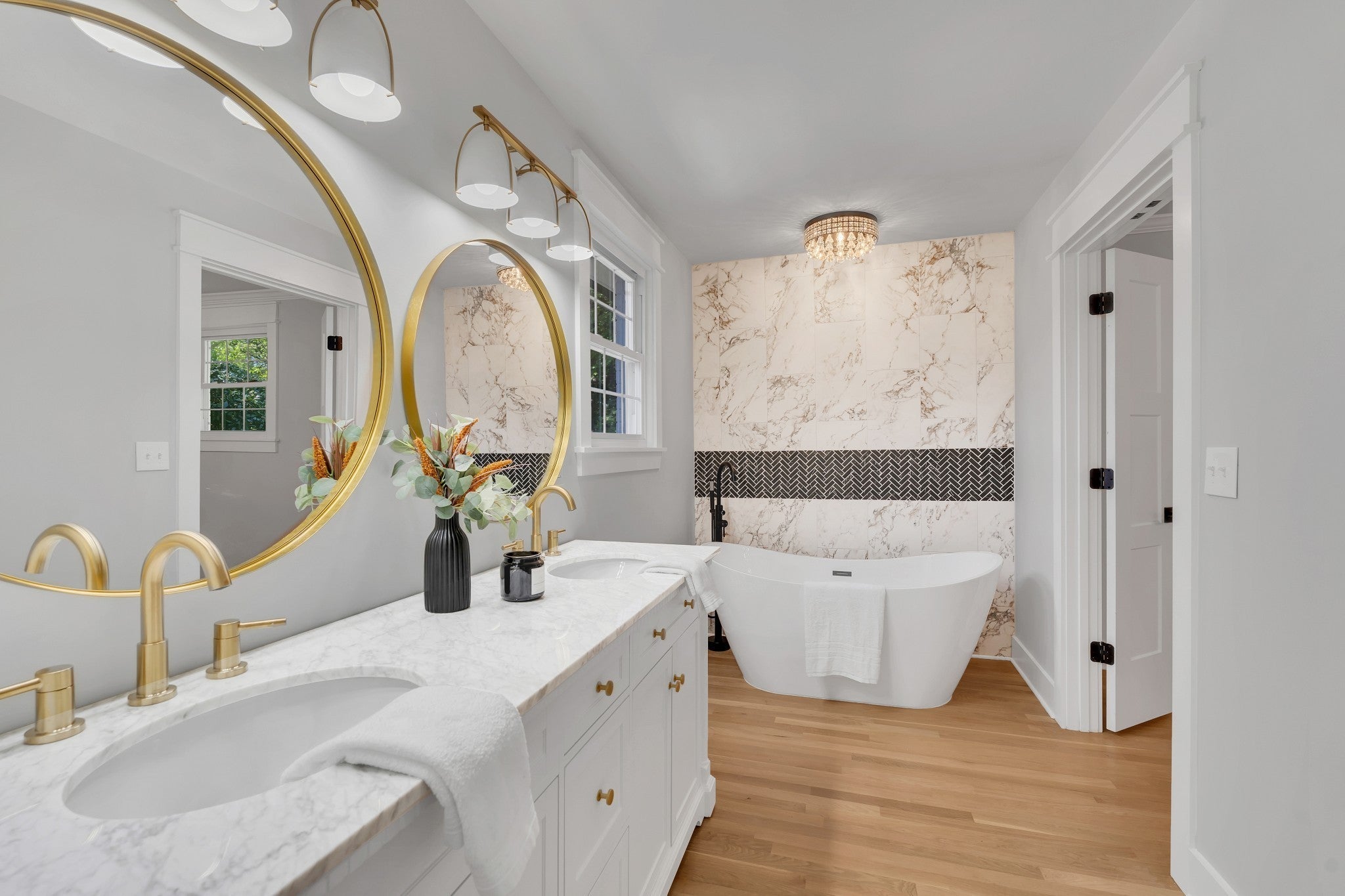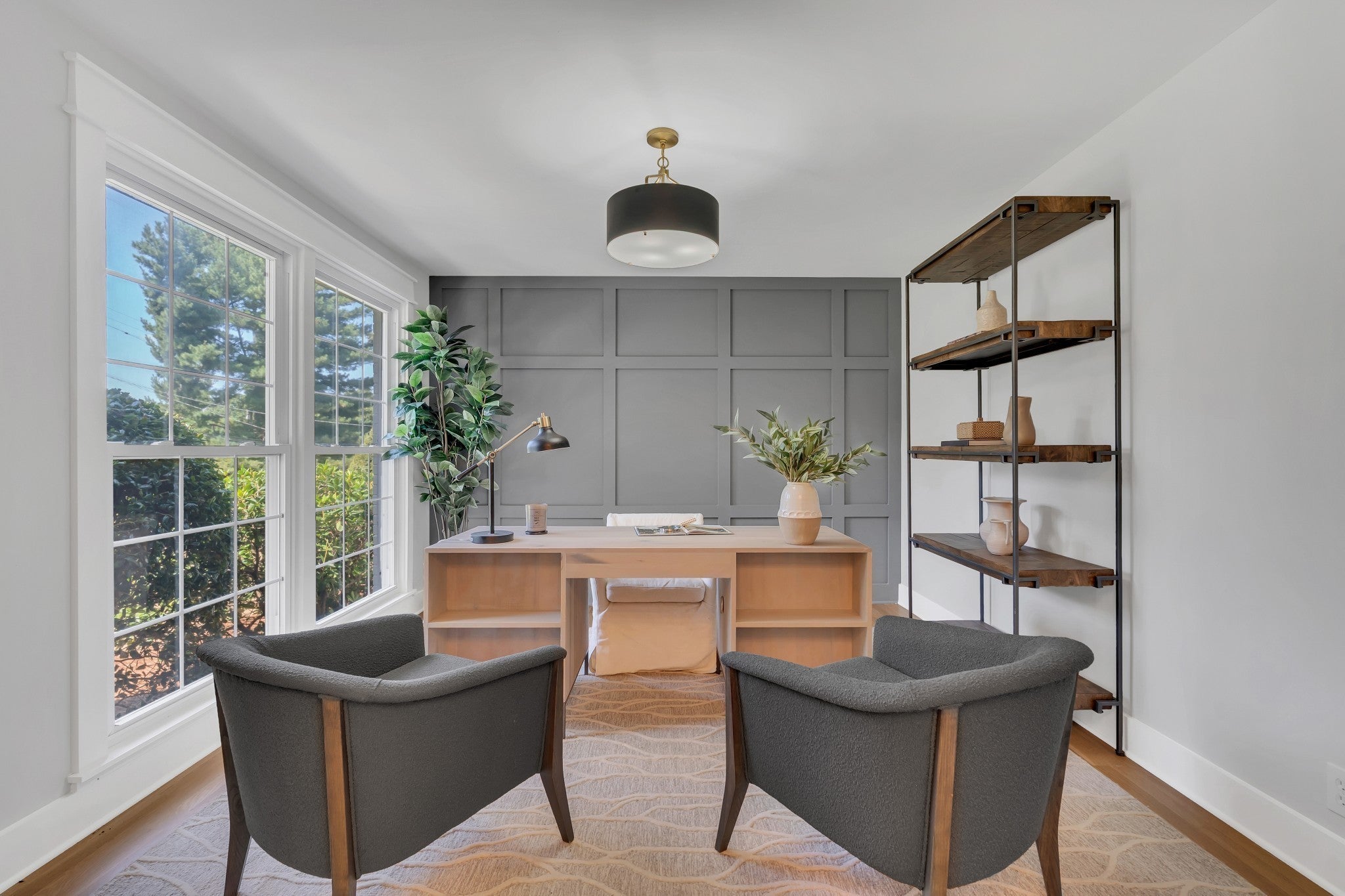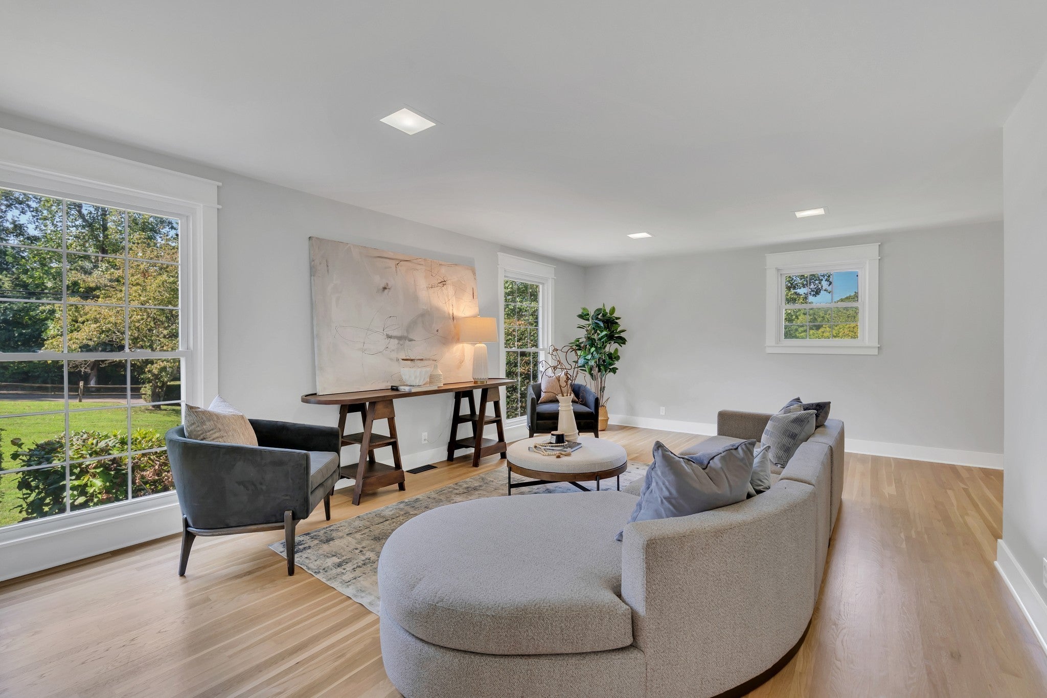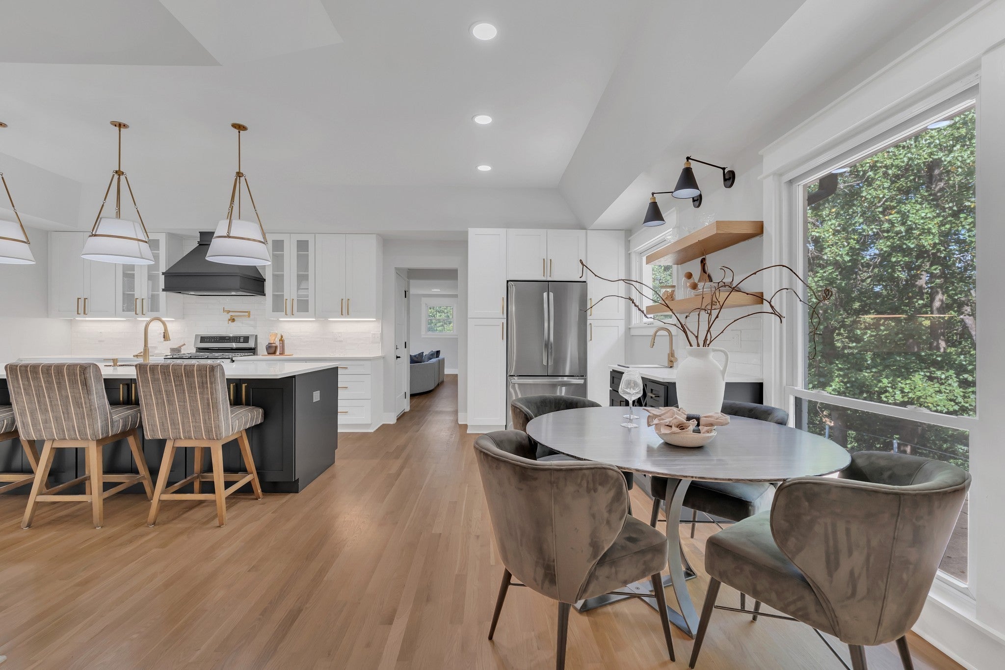 Elegantly Renovated Brentwood Home on Over an Acre — with 3-Car Garage & Basement! Discover timeless style and modern luxury in this beautifully renovated Brentwood home, perfectly situated on a lush, tree-lined corner lot. With 3 bedrooms, 2.5 baths, and an abundance of natural light, this home blends comfort, sophistication, and functionality at every turn. Step inside to a welcoming entryway adorned with marble flooring, French doors, and a designer accent wall framing the adjacent home office with floor to ceiling windows — a serene, light-filled space ideal for remote work, quiet reflection, or even a dining area. The fireside room offers a warm, inviting atmosphere with exposed ceiling beams, rich hardwoods, built-ins, and a gas fireplace, creating the perfect setting for relaxed evenings or entertaining guests. Flow seamlessly into the gourmet kitchen, where a large island, quartz countertops, stainless appliances, gas range, and striking gold-and-black fixtures define a true culinary centerpiece. Other features include a wet bar and a walk-in pantry that doubles as a laundry room with a third sink for added convenience. Enjoy movie nights in the versatile bonus/media room with an unexpected nook ideal for gaming or other hobbies – easily convertible into a 4th bedroom. Retreat to the spacious primary suite that boasts two separate walk-in closets and unwind in the luxury of a spa-inspired bathroom showcasing a freestanding soaking tub, double vanity, and a walk-in shower with dual shower heads. Step outside to the covered patio and experience the serenity of your park-like backyard, perfect for morning coffee or outdoor gatherings. Additional highlights: 3-car garage, partial basement, New HVAC and newer roof, Hardwood floors throughout. The rare combination of modern updates, elegant design, and expansive outdoor living – just minutes to retail, restaurants or a hike around Radnor Lake and steps away from Granbery Park tennis courts! Staging removed.