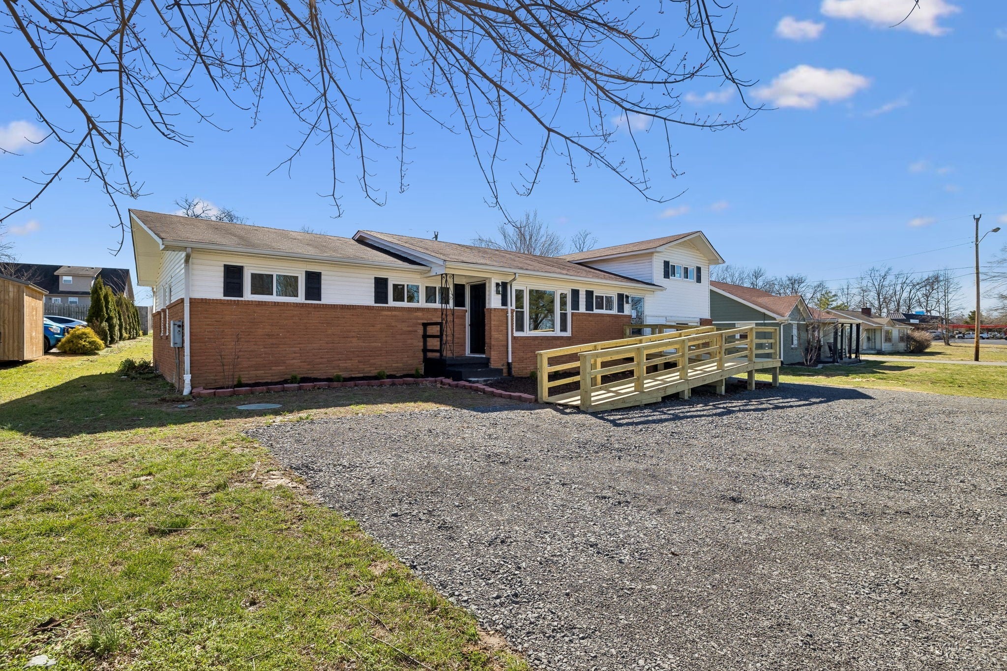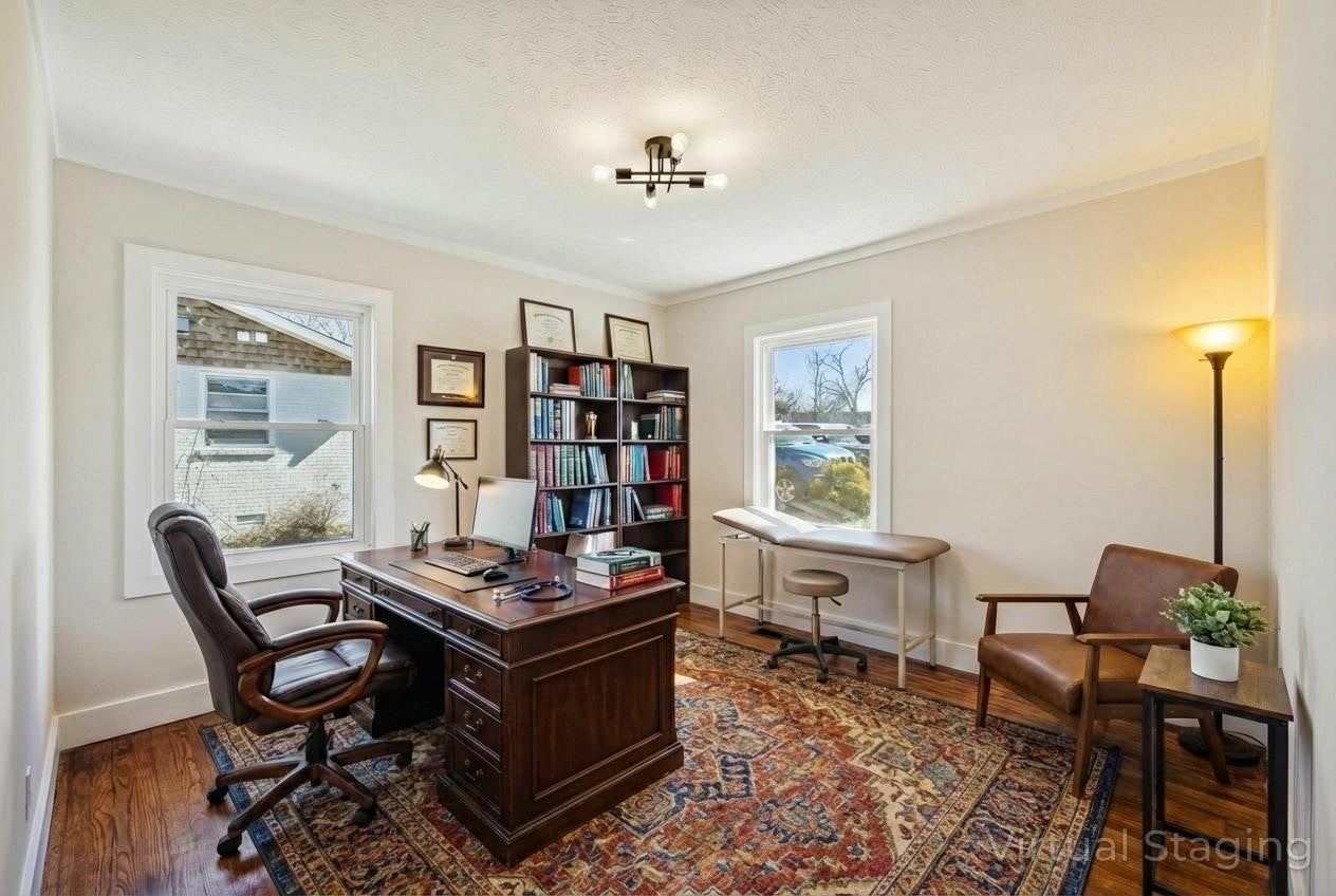 Fully renovated two-story commercial building offering 2,295 sq ft of flexible space in the heart of White House, TN, zoned C-1 (Central Business Service District) and ideally suited for professional or financial services, medical or wellness practices, educational or tutoring uses, or boutique retail with private office space. The main floor features an open-concept reception, waiting, and meeting area, a kitchen and dining/break area, a flex space off the rear entrance, 3 private offices, and an accessible restroom, while the upper level offers 2 additional offices, a separate waiting area, and a second restroom — all filled with abundant natural light. A new paved parking lot with 6 standard spaces and 1 ADA-compliant space is underway, complemented by a rear storage building, under-building storage, and a concrete patio. Situated on Highway 76 — White House's primary commercial corridor — this property offers maximum visibility and daily traffic exposure directly adjacent to the White House Chamber of Commerce and within walking distance of the new Publix-anchored shopping center, the Kroger plaza, White House Municipal Park, the greenway trailhead, the new White House Recreation Center, and White House Heritage Elementary School. Contact us today to schedule a tour and position your business on White House's most-traveled road. Buyer/tenant and their representing agent must conduct their own due diligence to verify all information; the listing agent assumes details are accurate but holds no liability for discrepancies.
