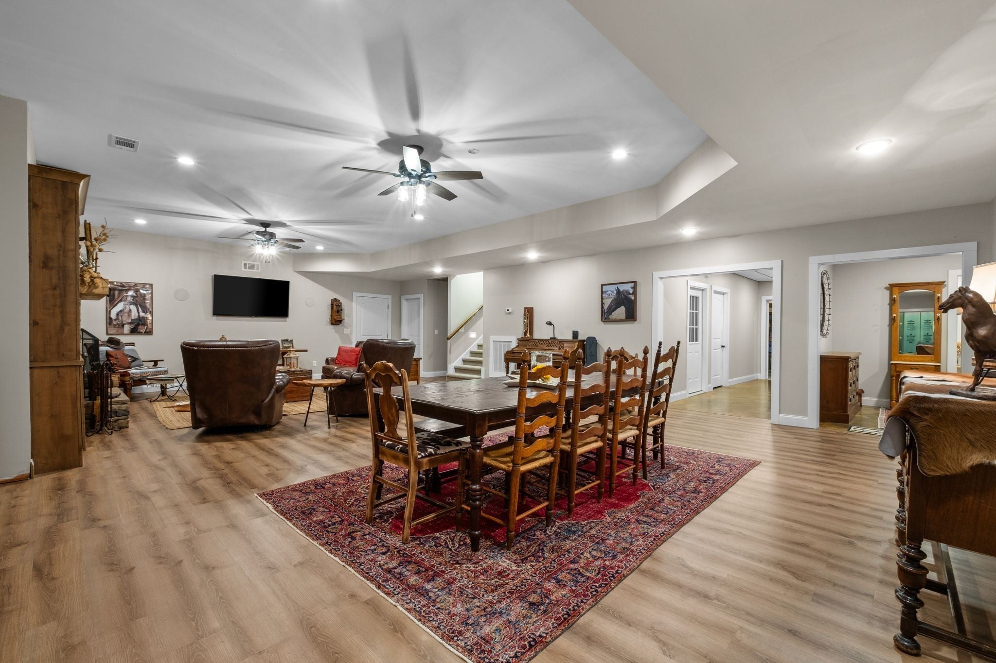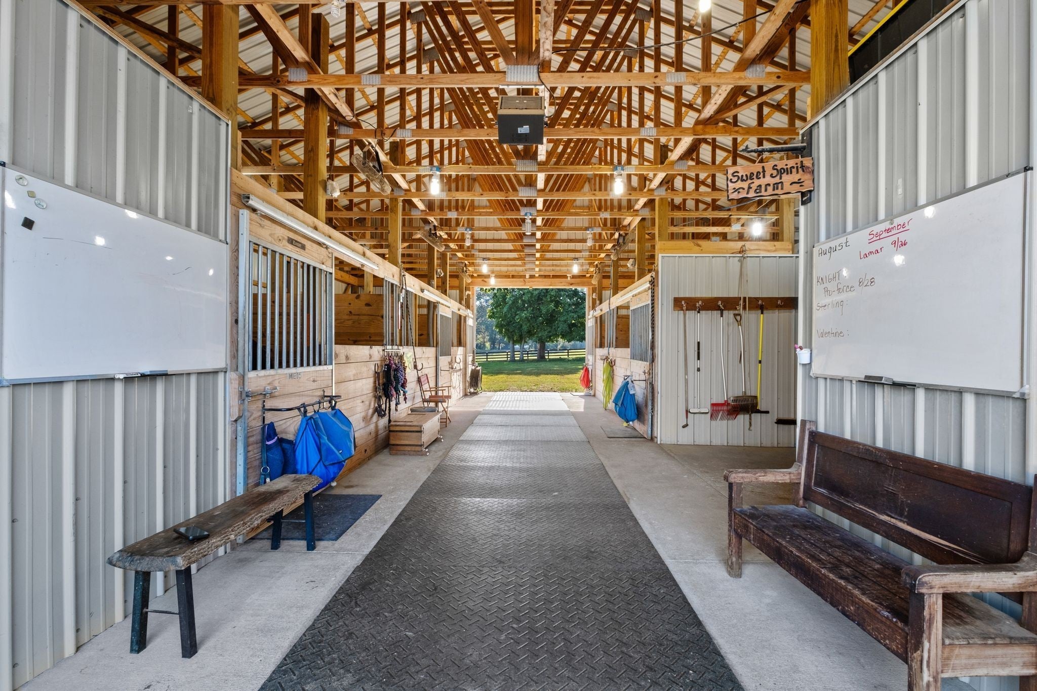 Truly exceptional 33-acre estate featuring a custom-built 2017 farmhouse in the heart of Robertson County. With approx. 5,800 sq ft of living space and 2,000+ sq ft of heated/cooled storage, this one-owner home offers a rare blend of privacy, functionality, and Southern charm—just minutes from I-24, Nashville, and surrounding communities. Basement level hobby room could be a 5th bedroom! A gated entrance, stately black four-plank fencing, and a paved drive set the tone for this peaceful property. The grounds include manicured flower beds, multiple paddocks, and open pastures ideal for horses, cattle, or future venue development. Step onto the expansive 10'x60' front porch and into a thoughtfully designed interior featuring walnut hardwoods, dual staircases, and a dramatic 20-ft gas fireplace with a reclaimed mantle from historic Springfield. The open layout connects a music room, dining space, and gourmet kitchen equipped with custom cabinetry, Miele gas range, and large eat-in areas overlooking the backyard, veranda, and gardens. The main-level primary suite offers a spa-like ensuite with Carrara marble, walk-in shower cave, soaking tub, custom closet, and access to a private screened sun porch—perfect for morning coffee or quiet reflection. Upstairs features 3 spacious bedrooms (2 with en suites), large closets, and a bonus/office area with beautiful views. The finished lower level includes a second living area with stone wood-burning fireplace, custom bar, full bath, and extensive storage. A 4th garage bay and large workshop complete the lower level. Built with energy-efficient Superior Walls and supported by a Cummins generator that powers key areas—including horse stables—within 30 seconds of outage. Ideal as a private estate, horse property, Airbnb, or event venue. Peaceful setting with easy access to modern conveniences. Incredible views, incredible value, and amazing location! This one checks all the boxes- come see it today!