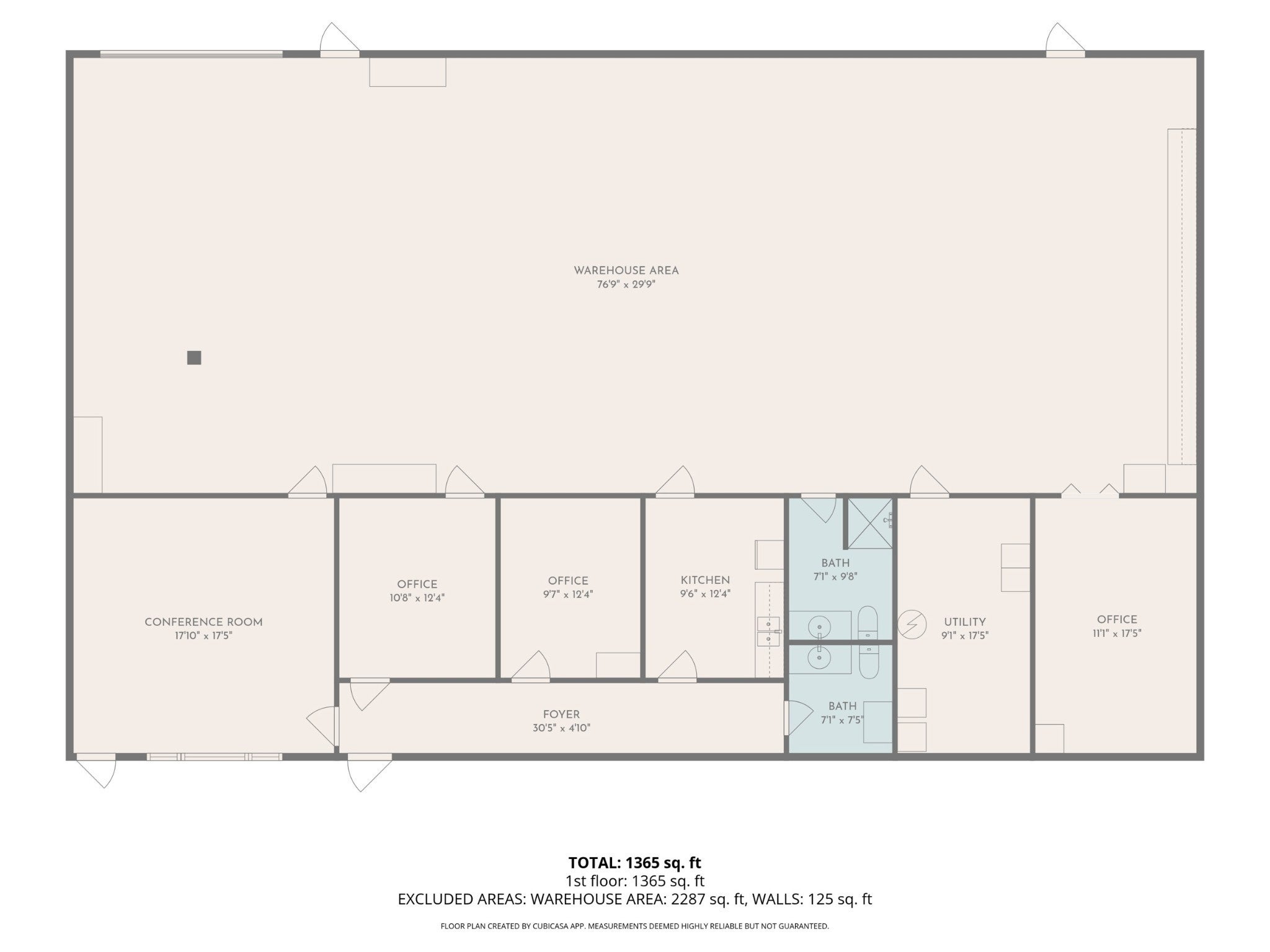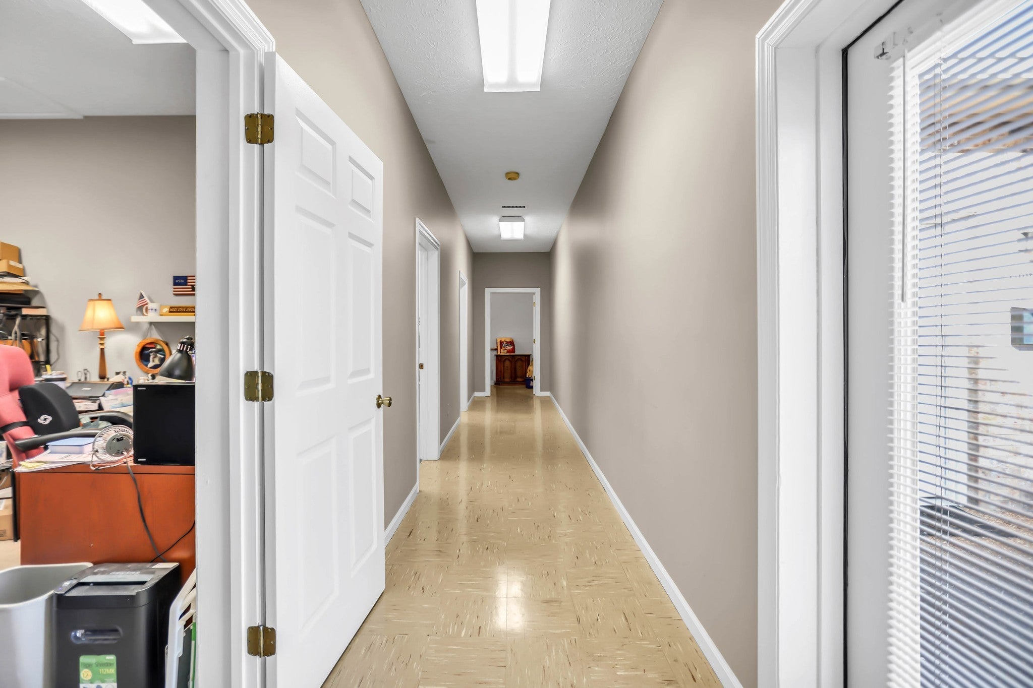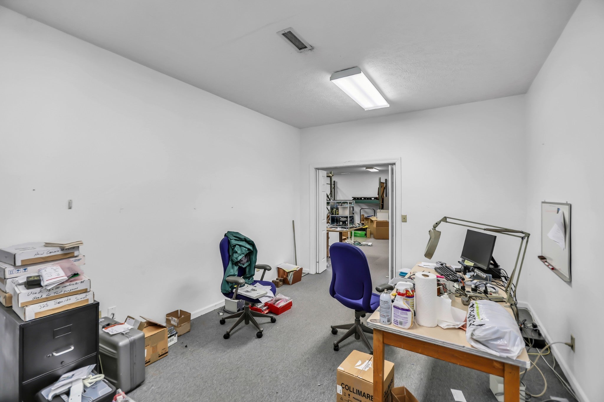 Commercial Condo with 4 offices, conference room, utility room, and warehouse space. 2050 square feet of office space and 2050 square feet of warehouse space with an overhead door. More parking is available in the rear. This listing is for Unit 1 at the back left of the property. Please DO NOT disturb other units with questions. Feel free to call the agent with questions.