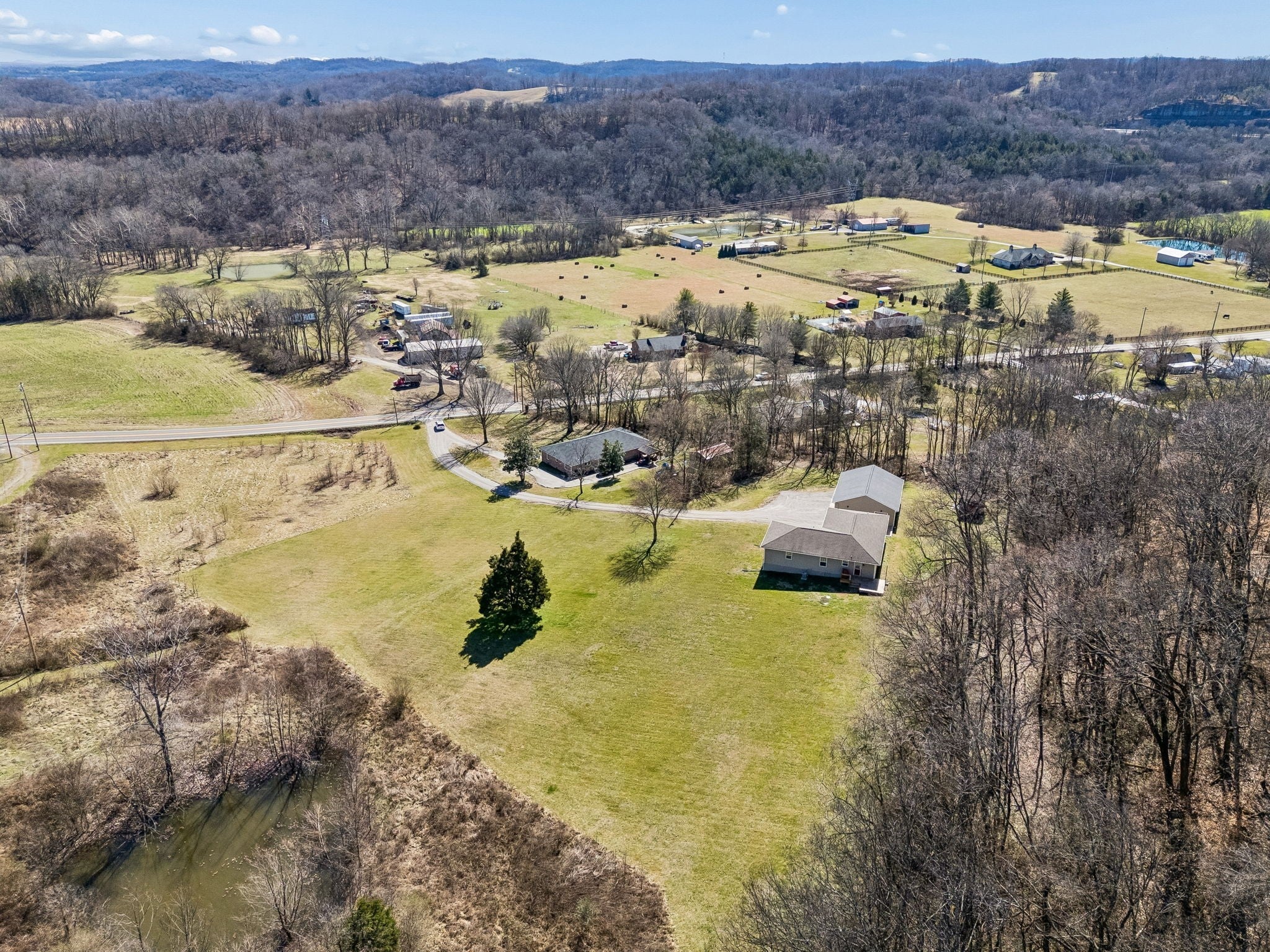 Rare opportunity to own 5 scenic acres in Williamson County for under $800,000 in Thompsons Station! * Single-level home currently used as a 4 bedroom + office * Enormous 40' x 30' workshop/garage (oversized doors for trucks, framed for 3rd garage door, loft rafters and with 100-amp service) as well as a 12'x10' shed, which both remain * Kitchen updated in 2025 including quartz counters and backsplash, undermount sink and beadboard in dining area * Primary bath updated 2024 * 2nd Bath updated 2020 * Roof replaced in 2019 * Water heater replaced in 2020 * Enjoy the private wooded trail - entrance is at the back left corner of cleared yard behind shed * Easy access to I-840 only 0.9 miles away * Fiber Internet through United