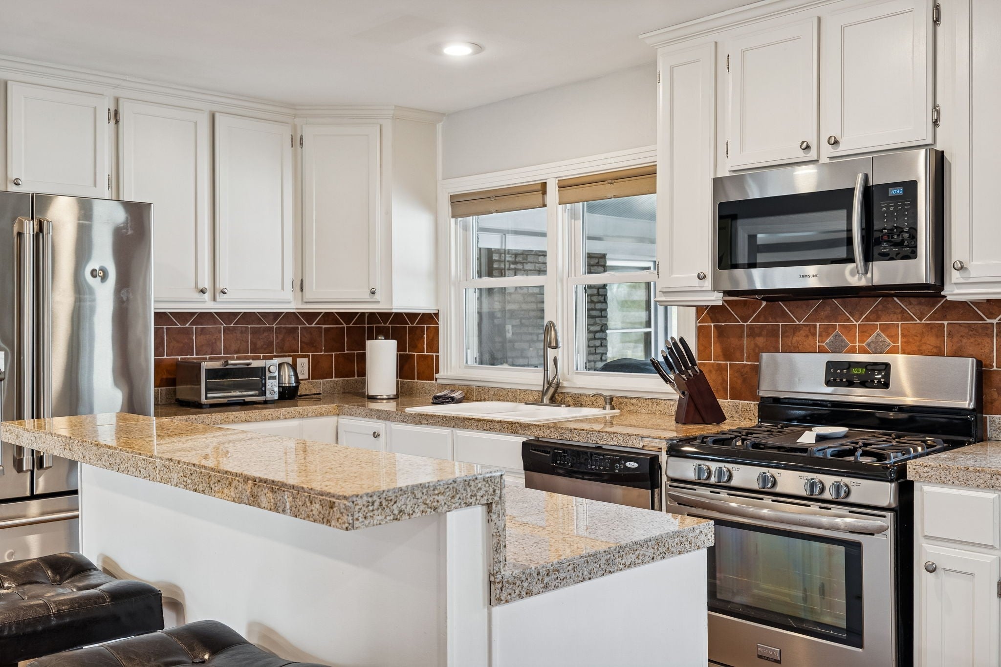 - Electric Oven, Built-In Gas Range, Dishwasher, Disposal, Microwave, Refrigerator