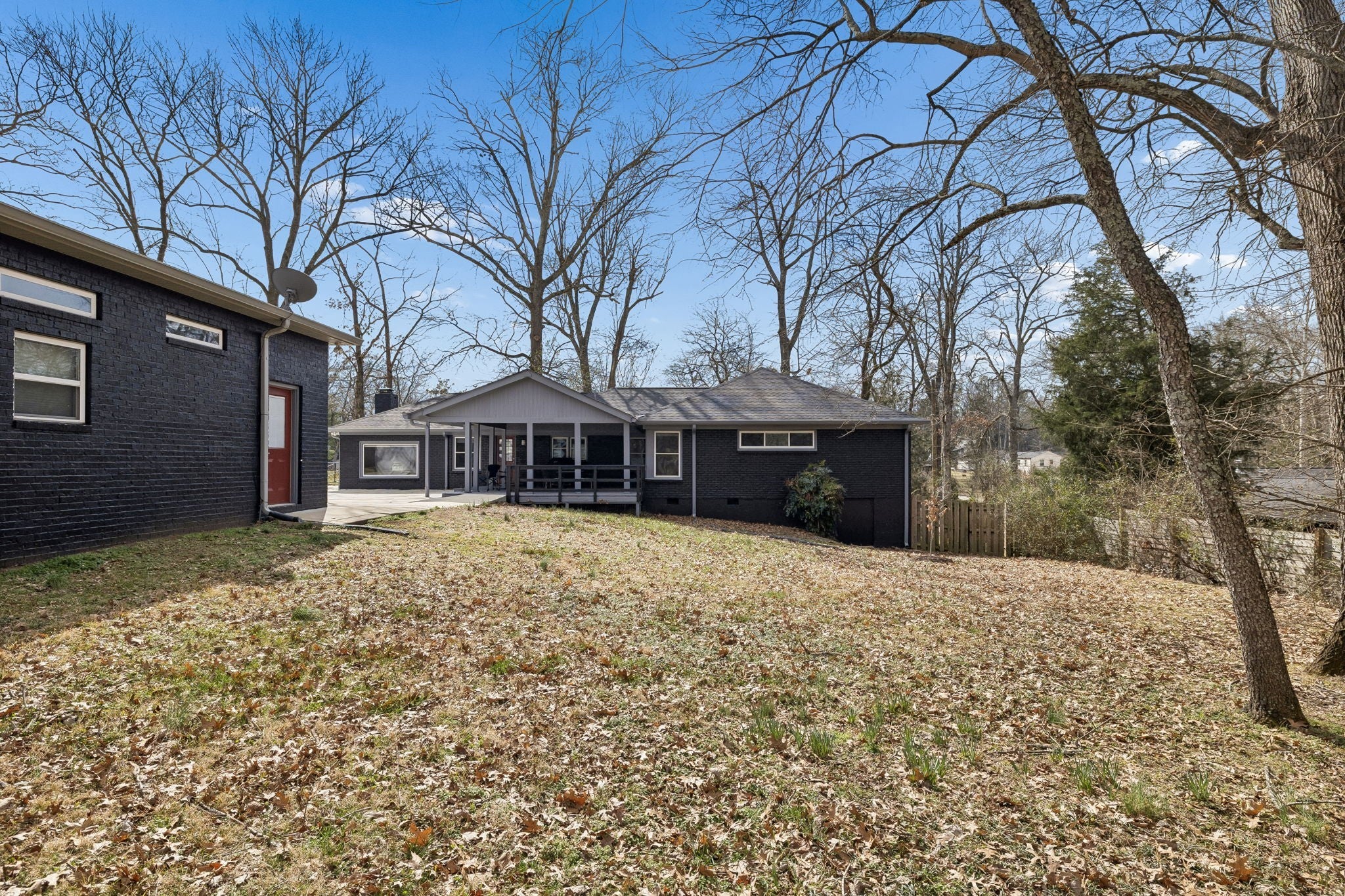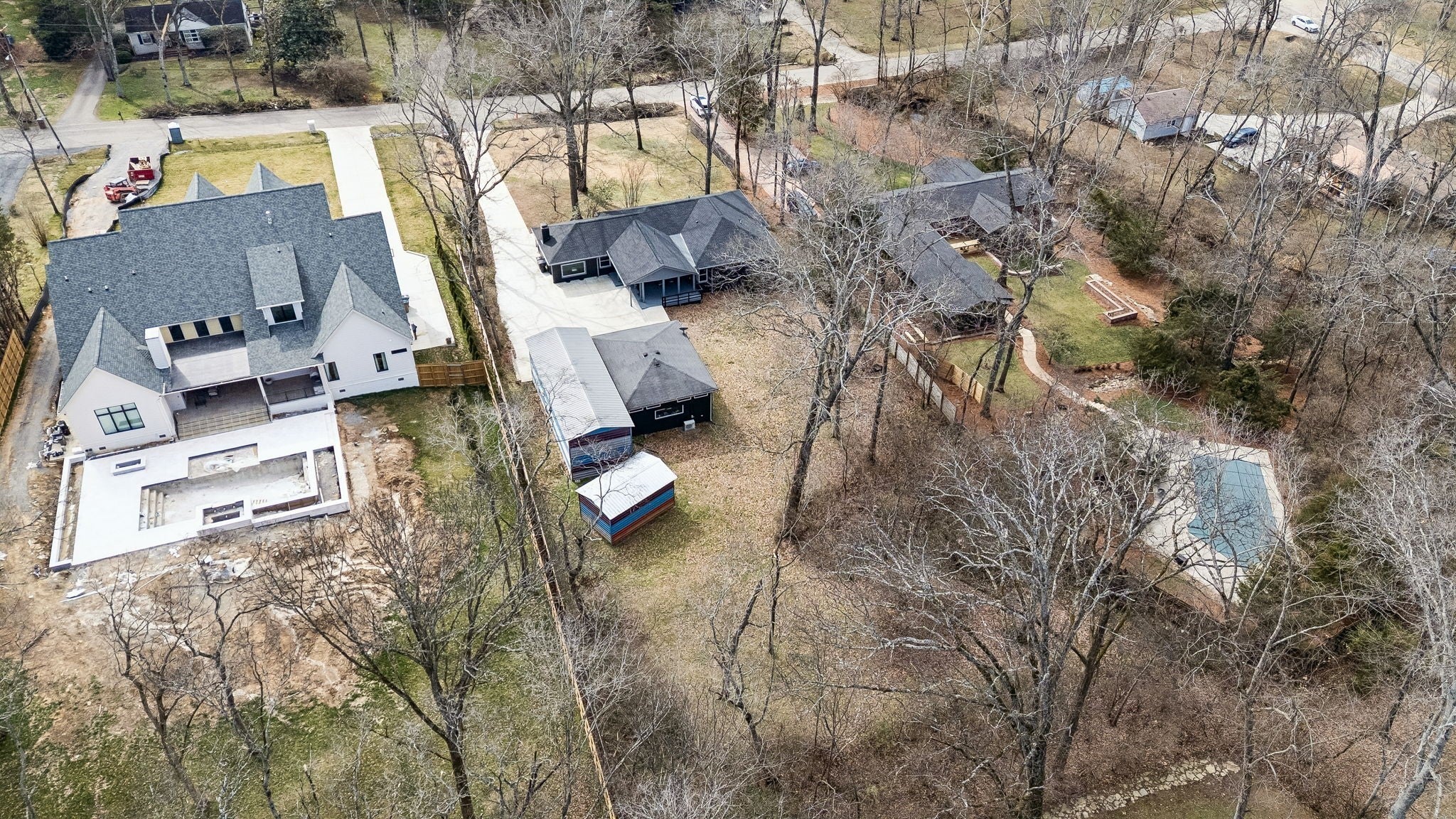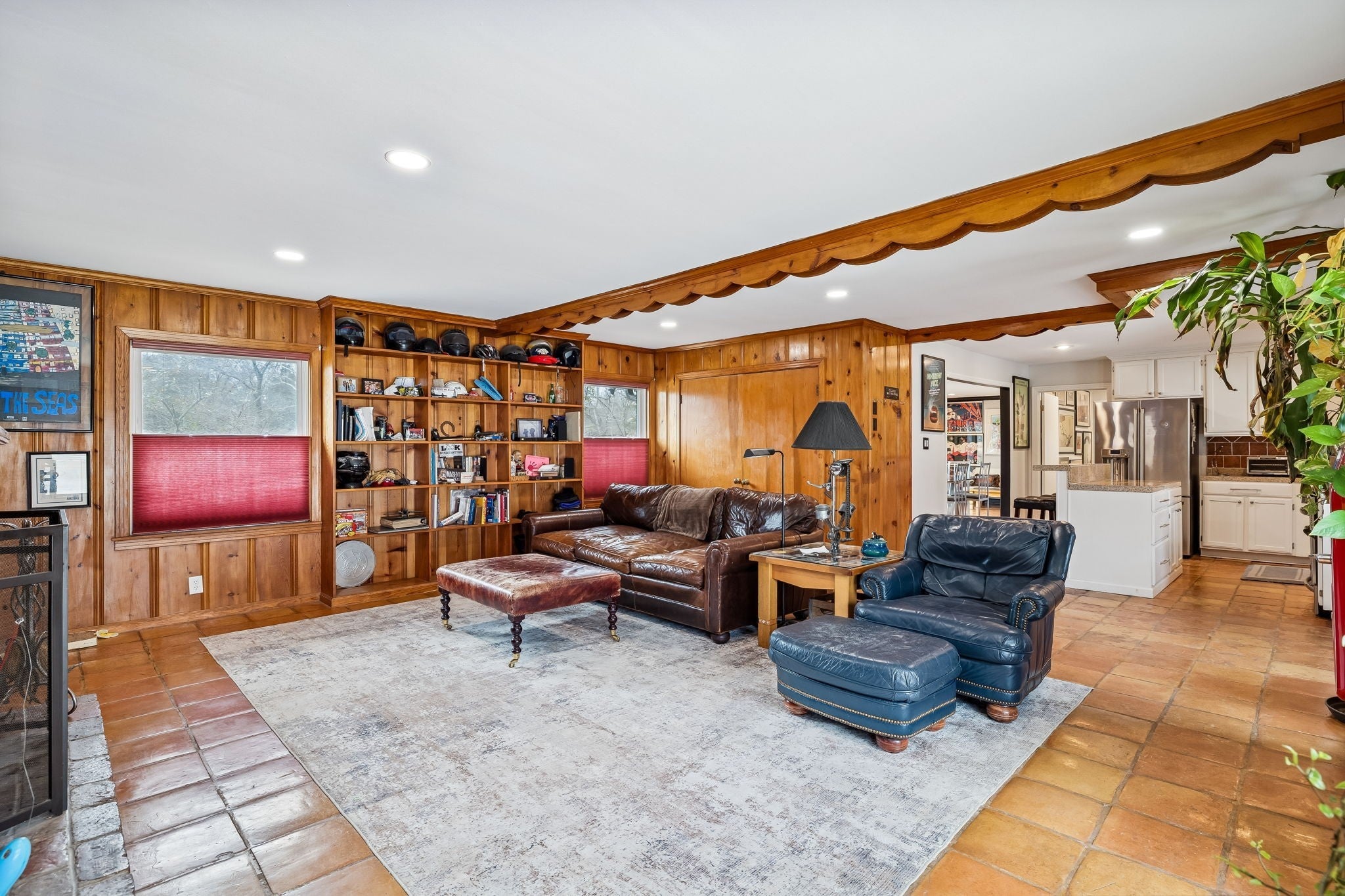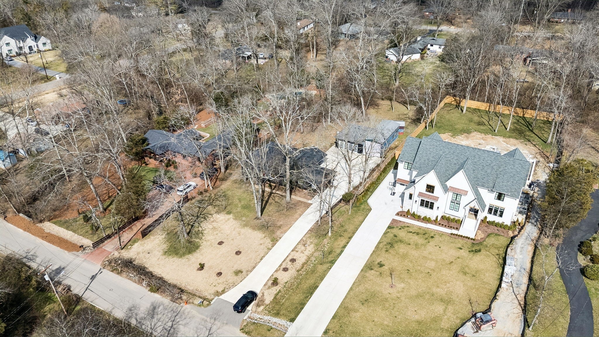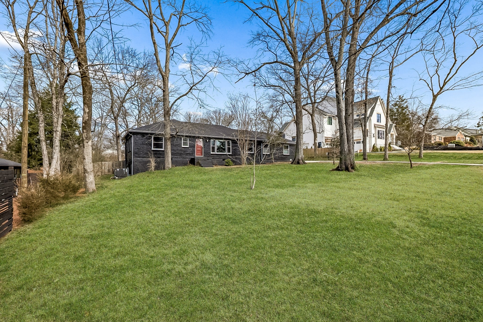Tucked away in the highly sought-after Hillwood Estates/Brook Meade community of West Nashville, this well-maintained single-story ranch home sits on just under an acre minutes from shopping, dining, and all that West Nashville has to offer. Inside, you’ll find 3 bedrooms (with 2 primary suites) and 2 bathrooms thoughtfully arranged around an easy, flowing floor plan. Upon entering the home, the spacious living room is filled with natural light and can easily accommodate both a lounge area and dining room. Adjacent to the living room is a bright kitchen featuring a breakfast bar, granite countertops and pantry. The family room located just off the kitchen showcases warm Saltillo terracotta title floors, period piece wood paneling, built in bookcases and wood burning fireplace. Two doors lead to the backyard, one of which there is an oversized covered patio with natural gas hookups for a BBQ. The space overlooks a private wooded fully fenced backyard including an electric driveway gate. The oversized primary suite with new cherrywood oak floors serves as a true retreat, filled with natural light and a door to the covered patio the room comes complete with a generous en-suite bath which was remodeled in the last six months. The primary bathroom features heated floors, a large walk in shower, separate soaking tub, a sink vanity area and a large walk-in closet. Direct access to the laundry room is off the primary bedroom but an additional door from the hallway could be easily added. There is a 720 square foot detached garage/workshop area that is temperature-controlled (heated and cooled) and has a sink with a dedicated water heater for quick cleanups. The property also features 2 separate storage areas for an RV or trailer storage. With a new roof, new plumbing, new water heater and a prime West Nashville location less then 2 miles to Nashville West Shopping Center, Costco, and dining don’t miss this rare opportunity to own a private acre sought-after neighborhood.