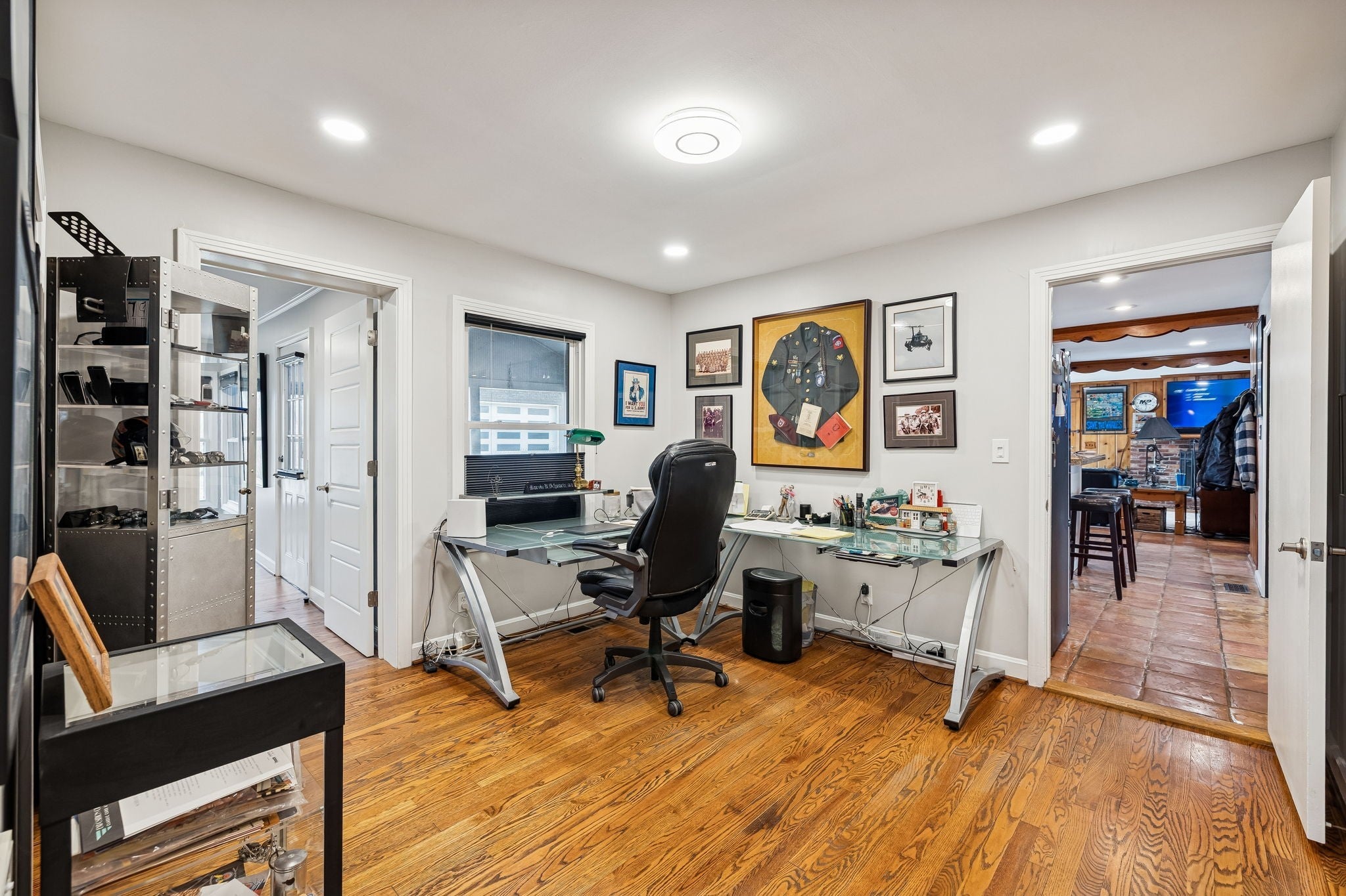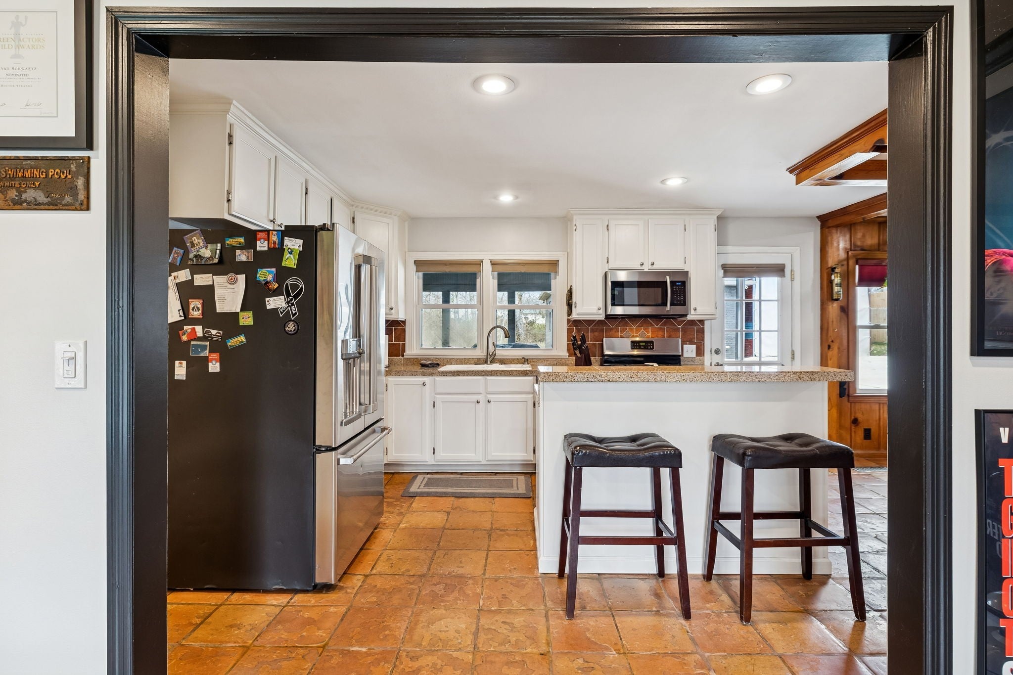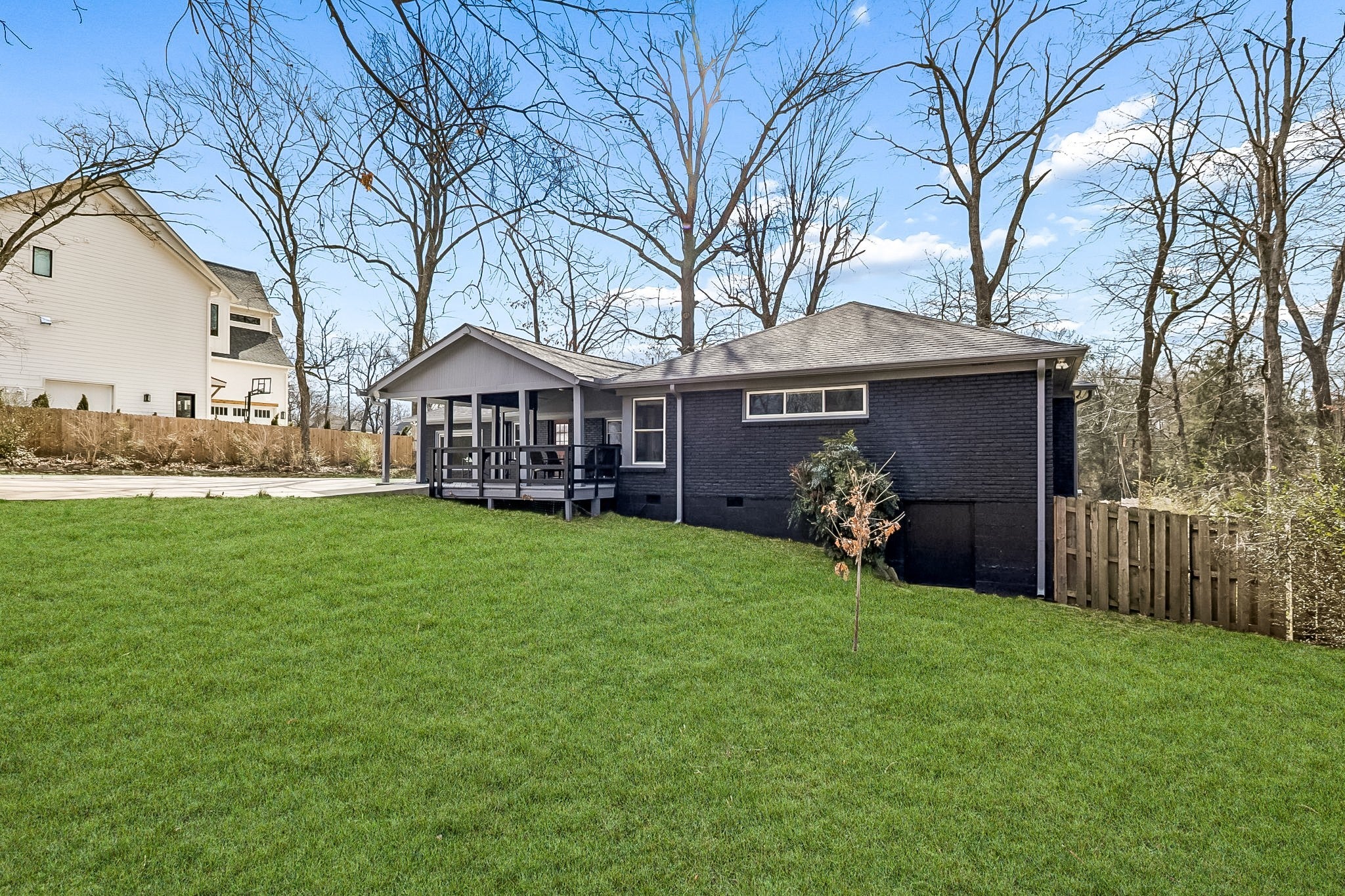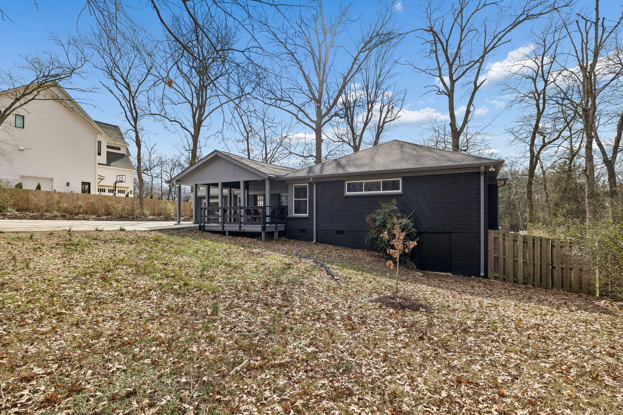Tucked away in the highly sought-after Hillwood Estates/Brook Meade community of West Nashville, this well-maintained single-story ranch home sits on just under an acre minutes from shopping, dining, and all that West Nashville has to offer. Inside, you’ll find 3 bedrooms (with 2 primary suites) and 2 bathrooms thoughtfully arranged around an easy, flowing floor plan. Upon entering the home, the spacious living room is filled with natural light and can easily accommodate both a lounge area and dining room. Adjacent to the living room is a bright kitchen featuring a breakfast bar, granite countertops and pantry. The family room located just off the kitchen showcases warm Saltillo terracotta title floors, period piece wood paneling, built in bookcases and wood burning fireplace. Two doors lead to the backyard, one of which there is an oversized covered patio with natural gas hookups for a BBQ. The space overlooks a private wooded fully fenced backyard including an electric driveway gate. The oversized primary suite with new cherrywood oak floors serves as a true retreat, filled with natural light and a door to the covered patio the room comes complete with a generous en-suite bath which was remodeled in the last six months. The primary bathroom features heated floors, a large walk in shower, separate soaking tub, a sink vanity area and a large walk-in closet. Direct access to the laundry room is off the primary bedroom but an additional door from the hallway could be easily added. There is a 720 square foot detached garage/workshop area that is temperature-controlled (heated and cooled) and has a sink with a dedicated water heater for quick cleanups. The property also features 2 separate storage areas for an RV or trailer storage. With a new roof, new plumbing, new water heater and a prime West Nashville location less then 2 miles to Nashville West Shopping Center, Costco, and dining don’t miss this rare opportunity to own a private acre sought-after neighborhood.