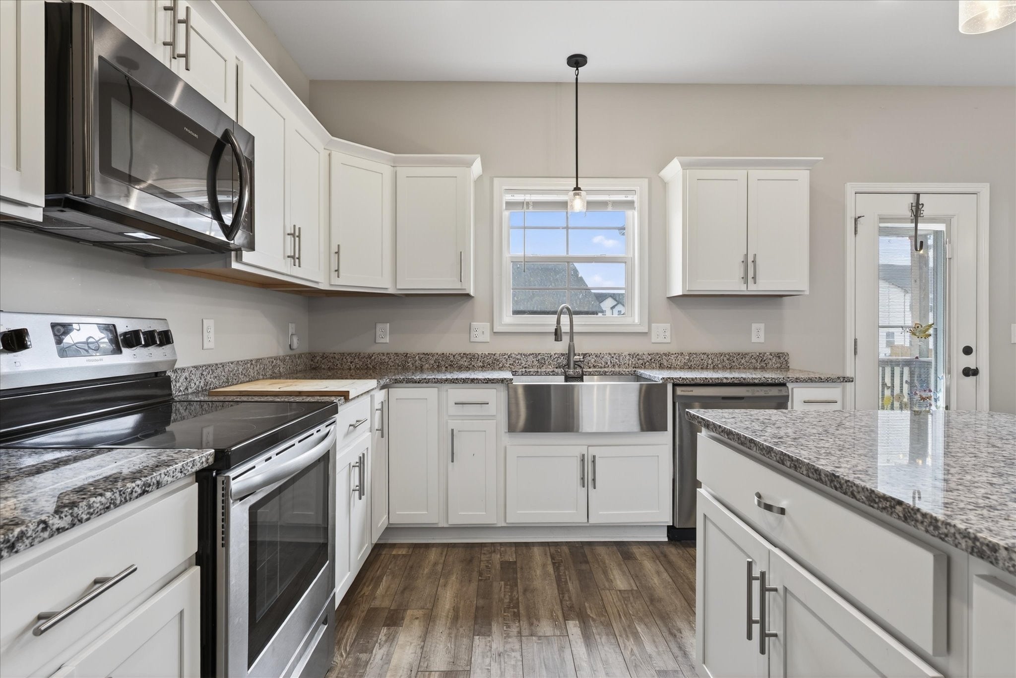 - Electric Oven, Electric Range, Dishwasher, Microwave, Refrigerator, Stainless Steel Appliance(s)