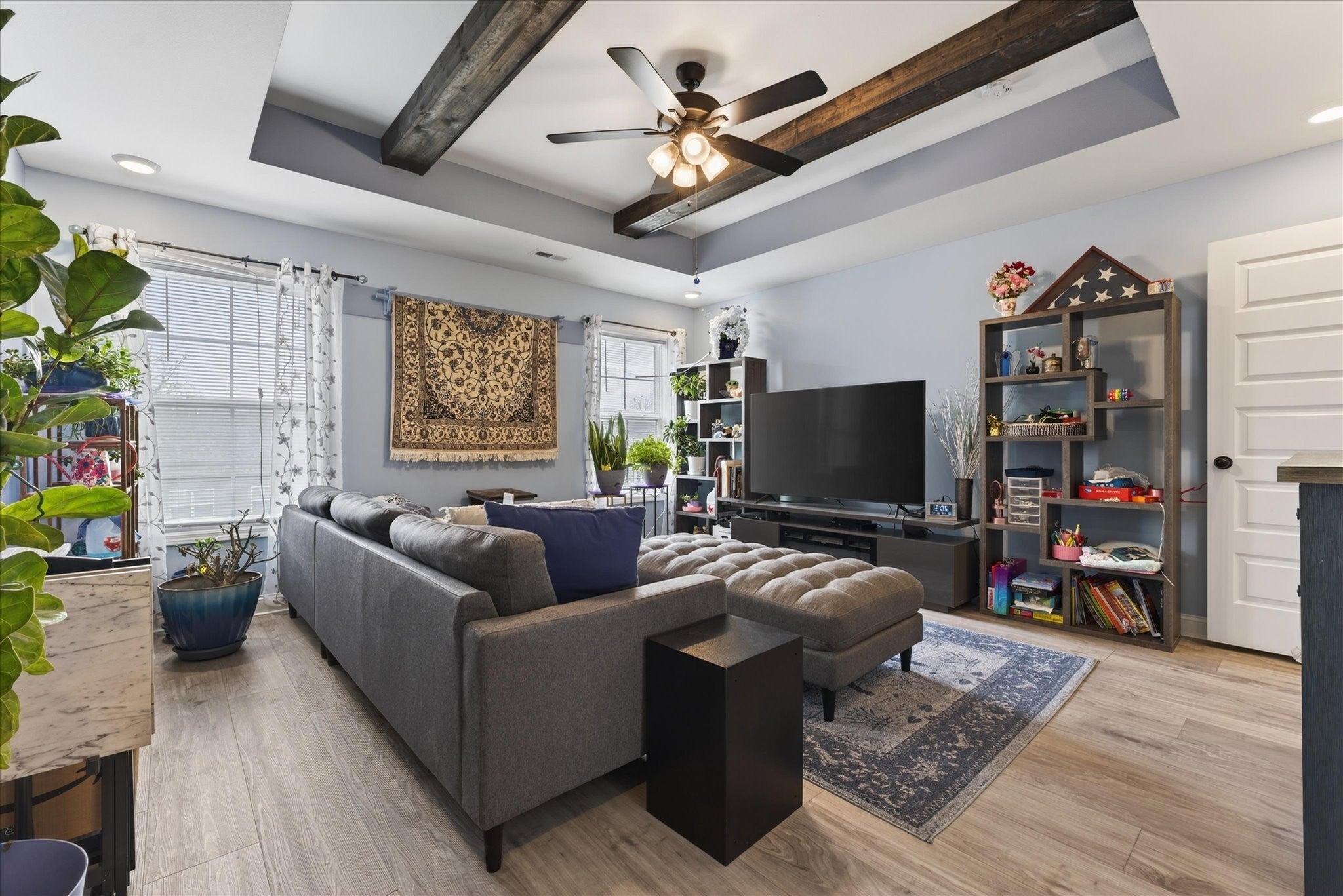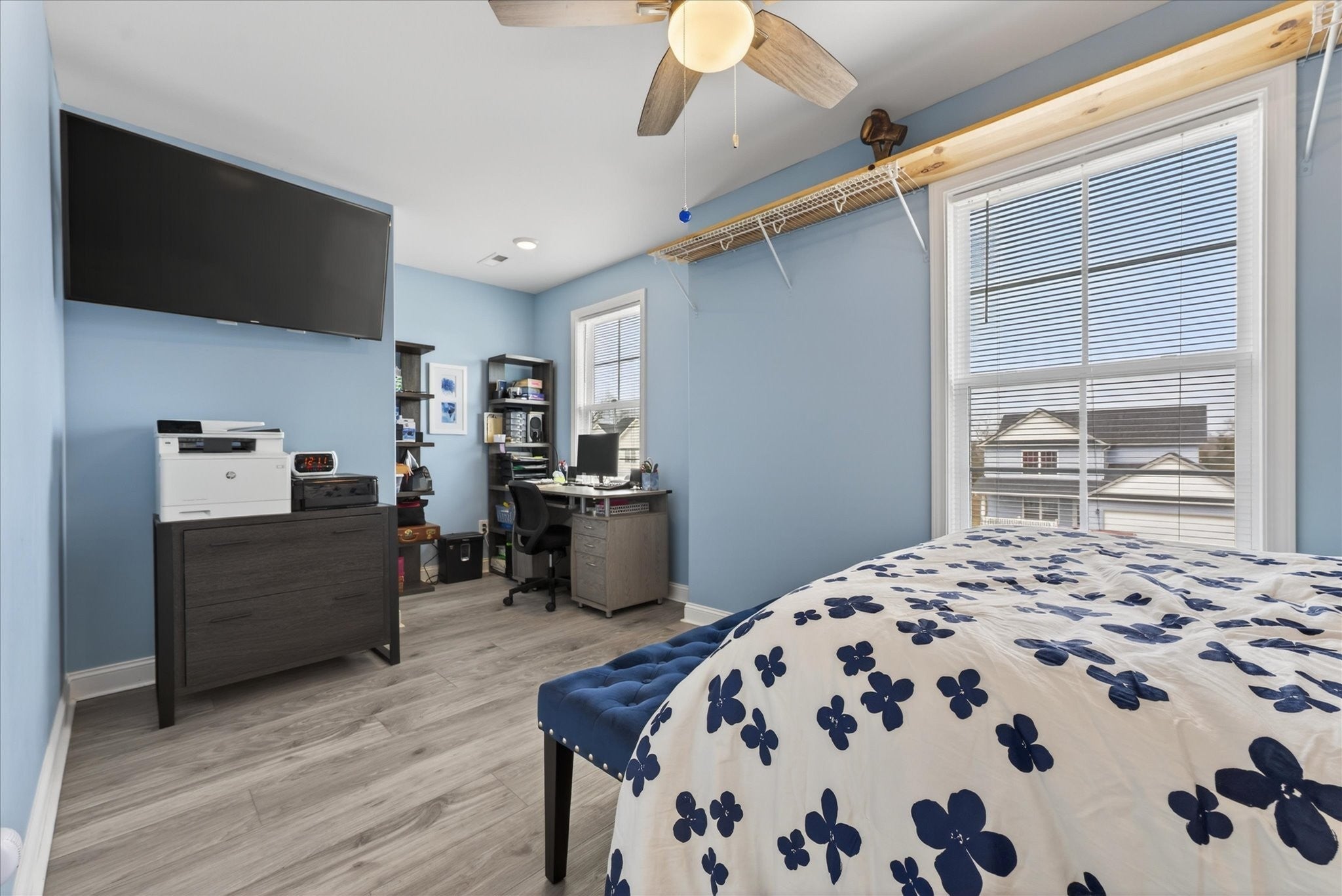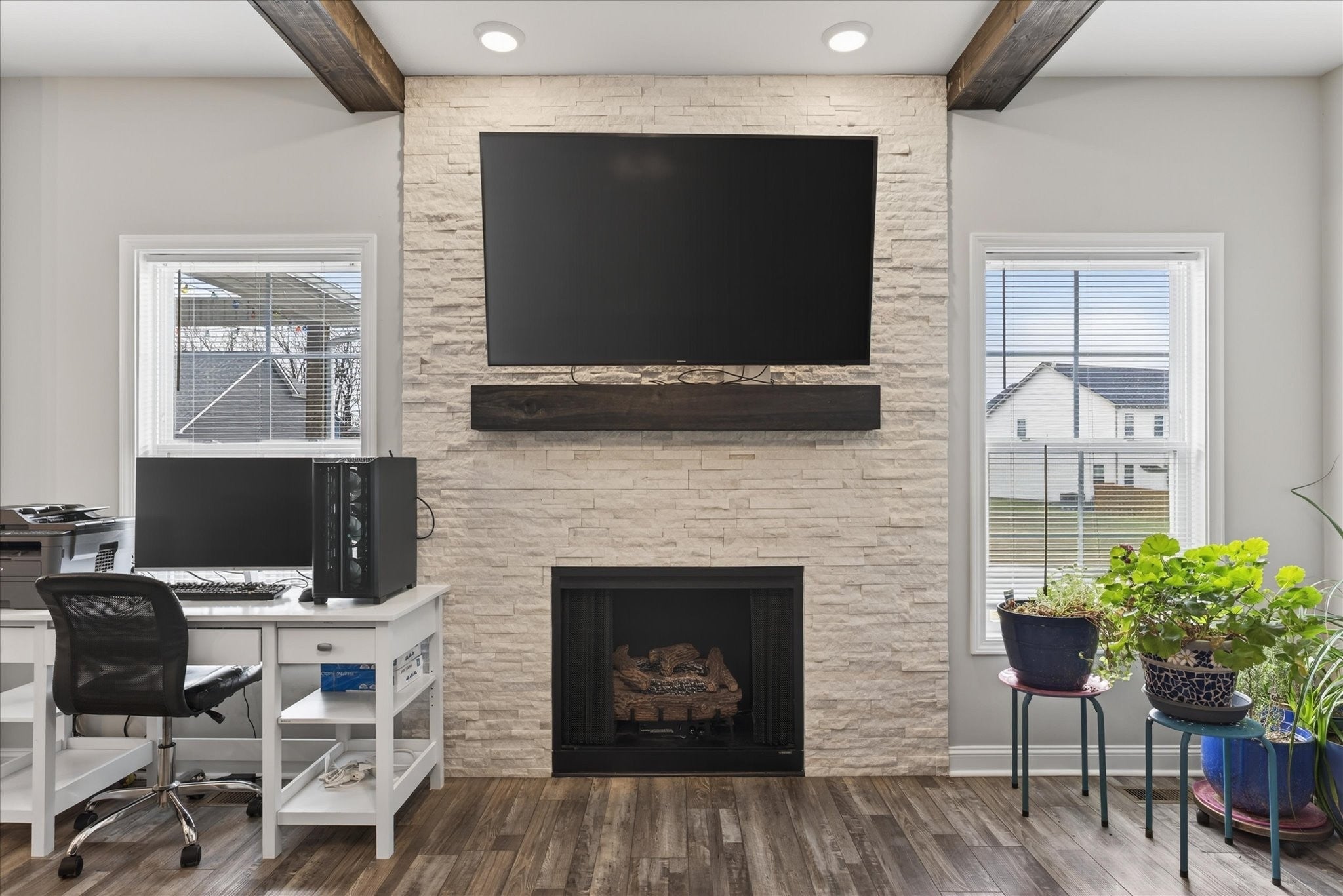 Welcome home to 530 Bloomington Trace, where this open and inviting floor plan was designed with everyday living and entertaining in mind. This beautiful home offers a formal dining room and a spacious living area that flows seamlessly into the kitchen. The kitchen features an island, stainless steel appliances, plenty of cabinet space, and overlooks the cozy fireplace, making the main level perfect for both everyday living and entertaining. Upstairs, you’ll find two primary suites, each with its own private bathroom and LVP flooring, plus two additional bedrooms with generously sized closets. The upper level laundry room adds convenience right where you need it most. Step outside to enjoy the covered back porch, ideal for relaxing evenings, and a screened garage door that lets you take advantage of summer nights in comfort. Storm doors on both the front and back doors offer added functionality and efficiency. Don’t miss this one. Schedule your showing today! Items to convey with the sale include the living room TV, two refrigerators, all TV mounts, and curtain rods. Negotiable items include the bedroom set in the grey room, washer and dryer, and both couches.