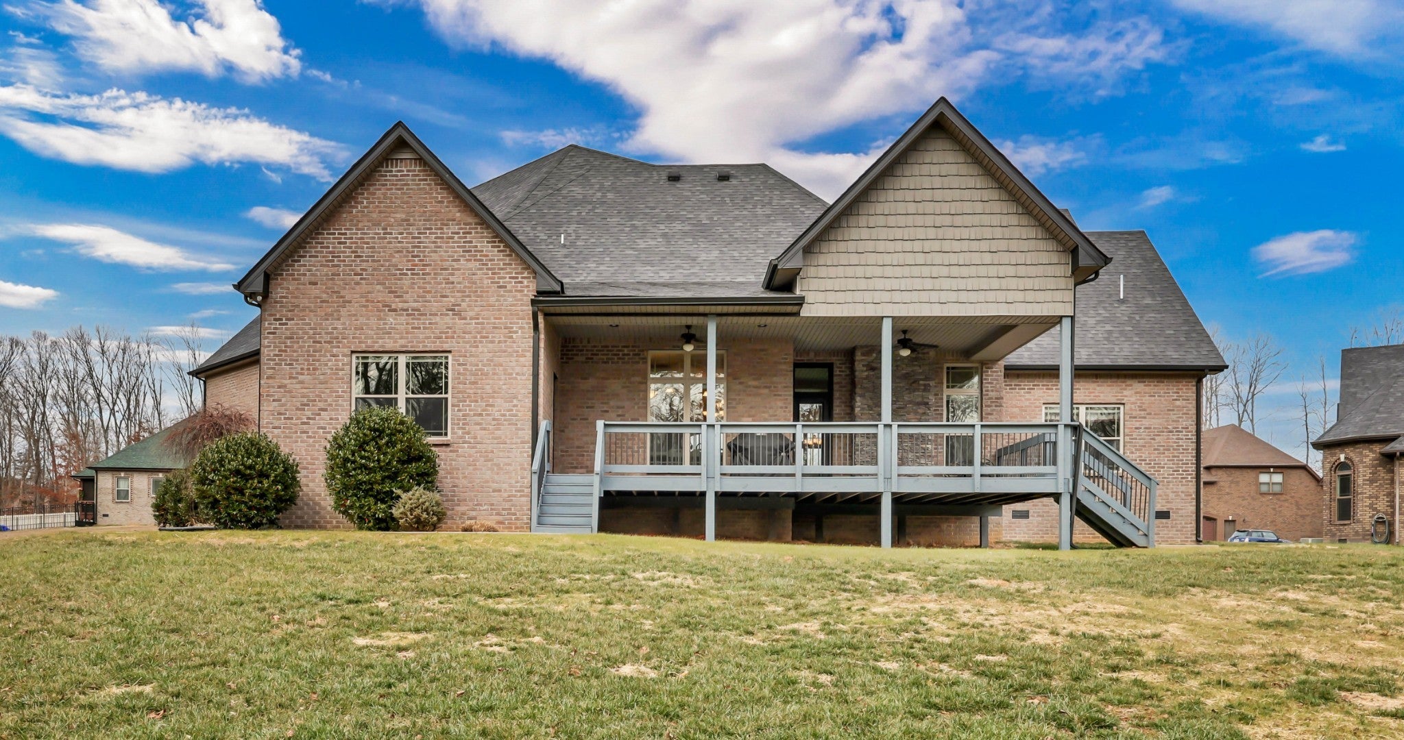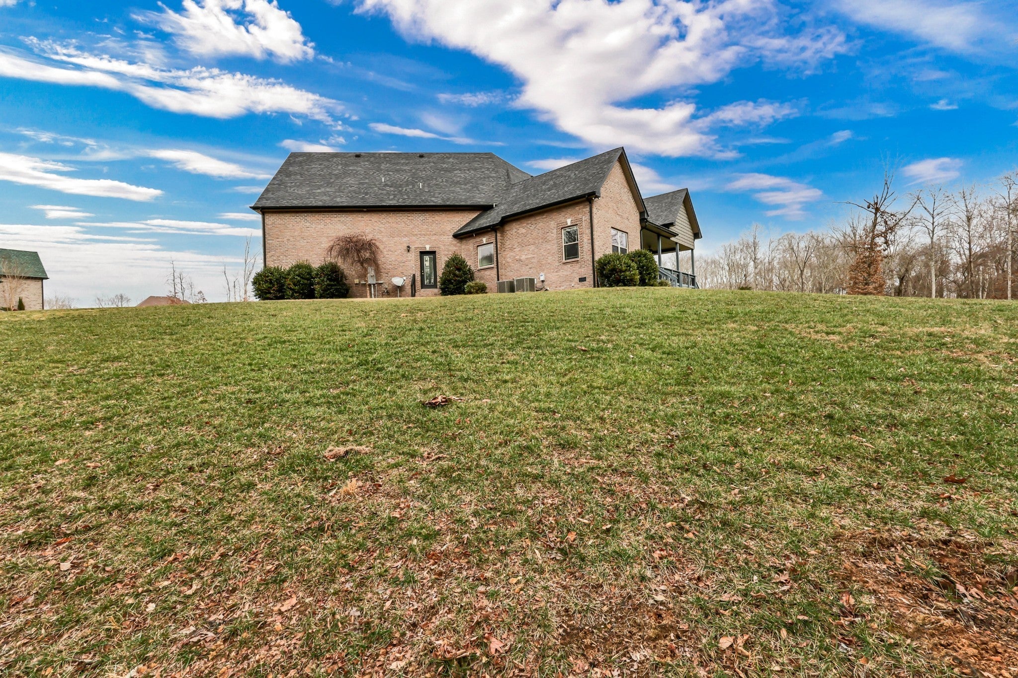 Beautiful all brick contemporary home on an amazing 1.96 acre lot with no HOA!! Main level features an open plan with soaring ceilings, great room, dining and eat-in kitchen. Primary bedroom on the main level has full bathroom with separate tub/shower and walk-in closet. One additional bedroom on main level plus an office (or additional BR) and huge laundry room. Upper level has 9' ceilings, massive bonus room plus 2 bedrooms and bathrooms. Huge covered deck overlooking trees with no rear neighbors. Two water heaters, floored attic space and an encapsulated crawl space with dehumidifier. This home has it all!!