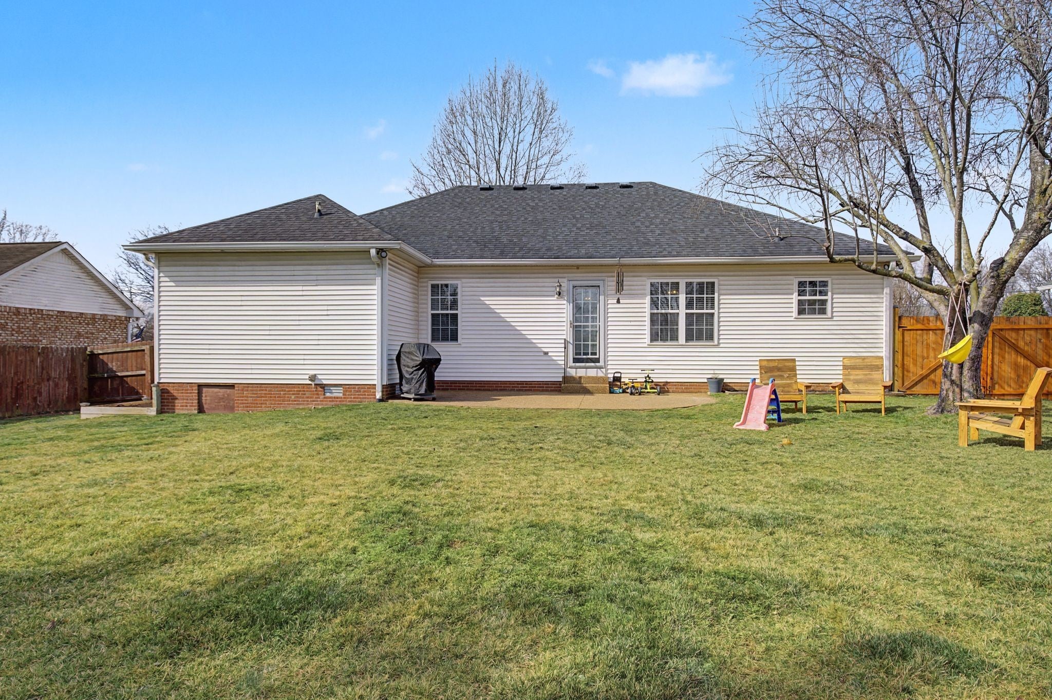 Updated, well-maintained, and truly move-in ready, this one-level home in Eagle Creek offers strong value at $400,000 with no HOA. Fresh paint throughout gives the home a clean, cohesive feel. The living room features a tray ceiling and a gas fireplace and opens easily into the kitchen and dining area, creating a functional layout for everyday living. The floor plan is exceptionally efficient, offering well-proportioned rooms and minimal wasted space, allowing every square foot to live larger than expected. The kitchen provides generous cabinet storage, ample countertops, and a center island. The primary suite includes a newly added ceiling fan and an updated bath with refreshed finishes. The backyard has been newly fenced and leveled, offering excellent usable space for pets, play, or entertaining. The patio creates a natural extension of the living area, and mature trees add character to the setting. With a two-car garage and convenient access to shopping, dining, and commuter routes, this home delivers thoughtful updates, practical design, and strong outdoor space in an established Gallatin neighborhood. Preferred lender, Brandon Carter of Steadfast Mortgage is offering a $2k closing cost credit when closing a loan on this home through him - 615.390.6942 / brandon@steadfastmortgage.com. Video Walk-Thru: https://youtu.be/TI5K0OjP22g?si=YNO0pm48kTEDrZTU