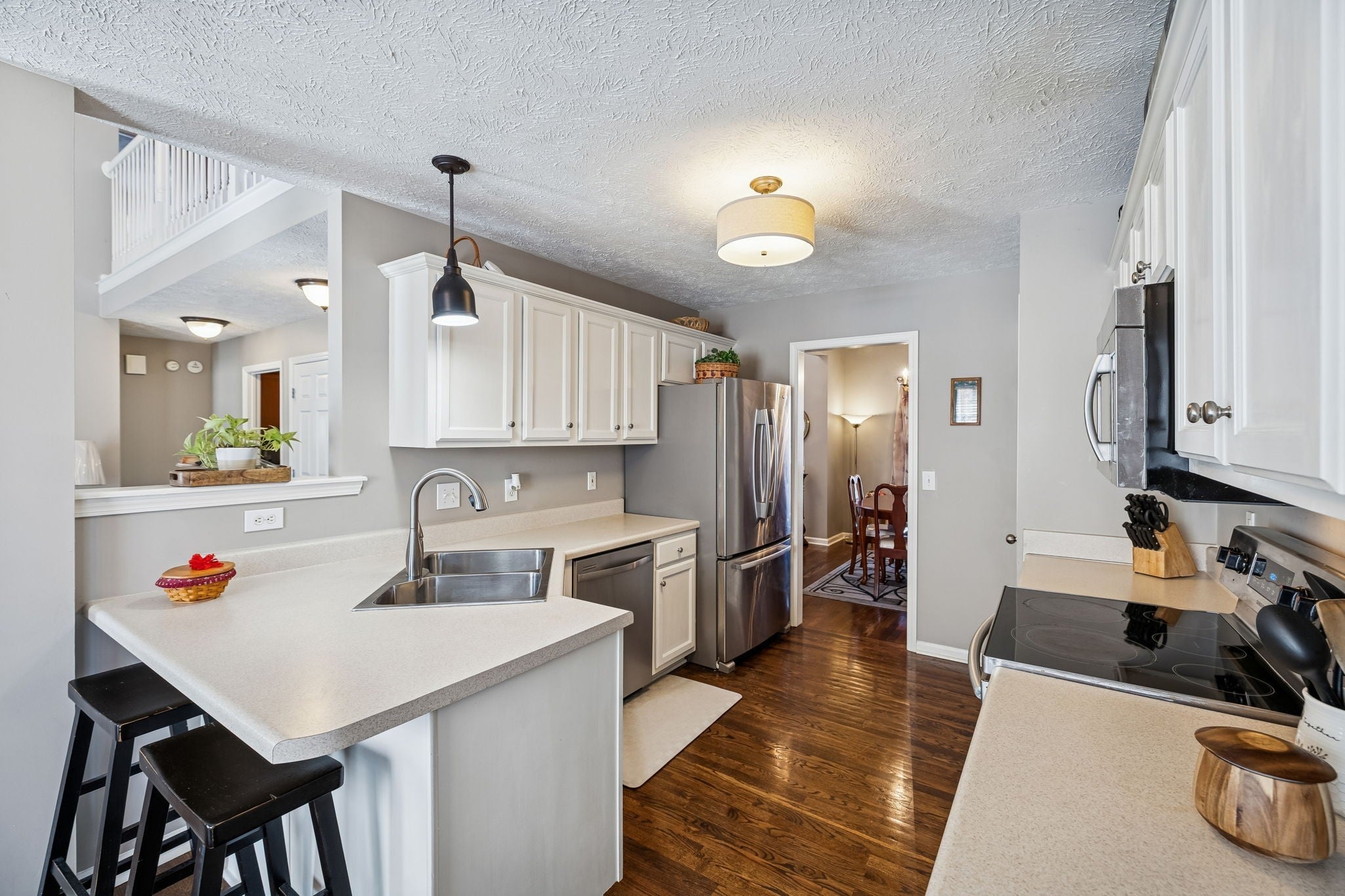 - Oven, Range, Dishwasher, Microwave, Refrigerator, Stainless Steel Appliance(s)