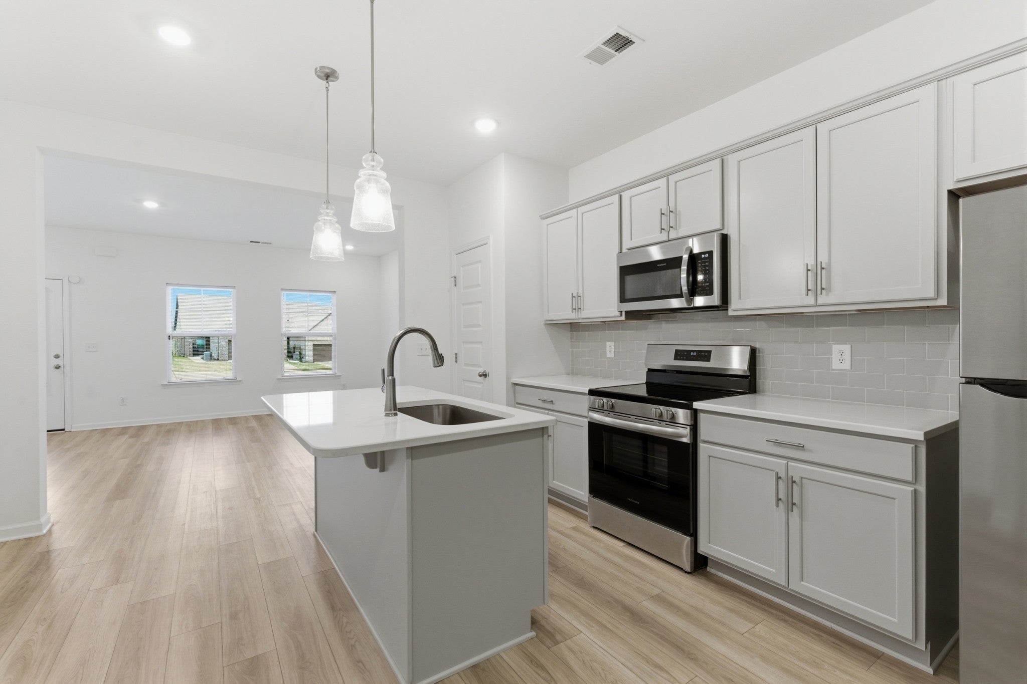 Welcome to your new home in The Knoll at Fairview where you're right in the middle of Gallatin's shopping, dining, and entertainment centers. This townhome offers true low maintenance living in a beautiful community, walkable to it all. From your large covered front porch you walk into your oversized living room, which flows beautifully to the sunny kitchen and separate dining area. The kitchen features with quartz countertops, beautiful tile backsplash, kitchen island, and stainless steel appliances. Separate laundry room with washer and dryer that convey. Park in the attached garage or on your private 2 car driveway. The second level features an extra large primary bedroom with a spacious walk in closet and en suite bathroom complete with double sinks and a beautiful tile shower. This home is move in ready, and as a bonus, all appliances convey! Enjoy the beautiful walking trails throughout the community or skip over to the Publix, movie theater, or plenty of Gallatin's newest restaurants.