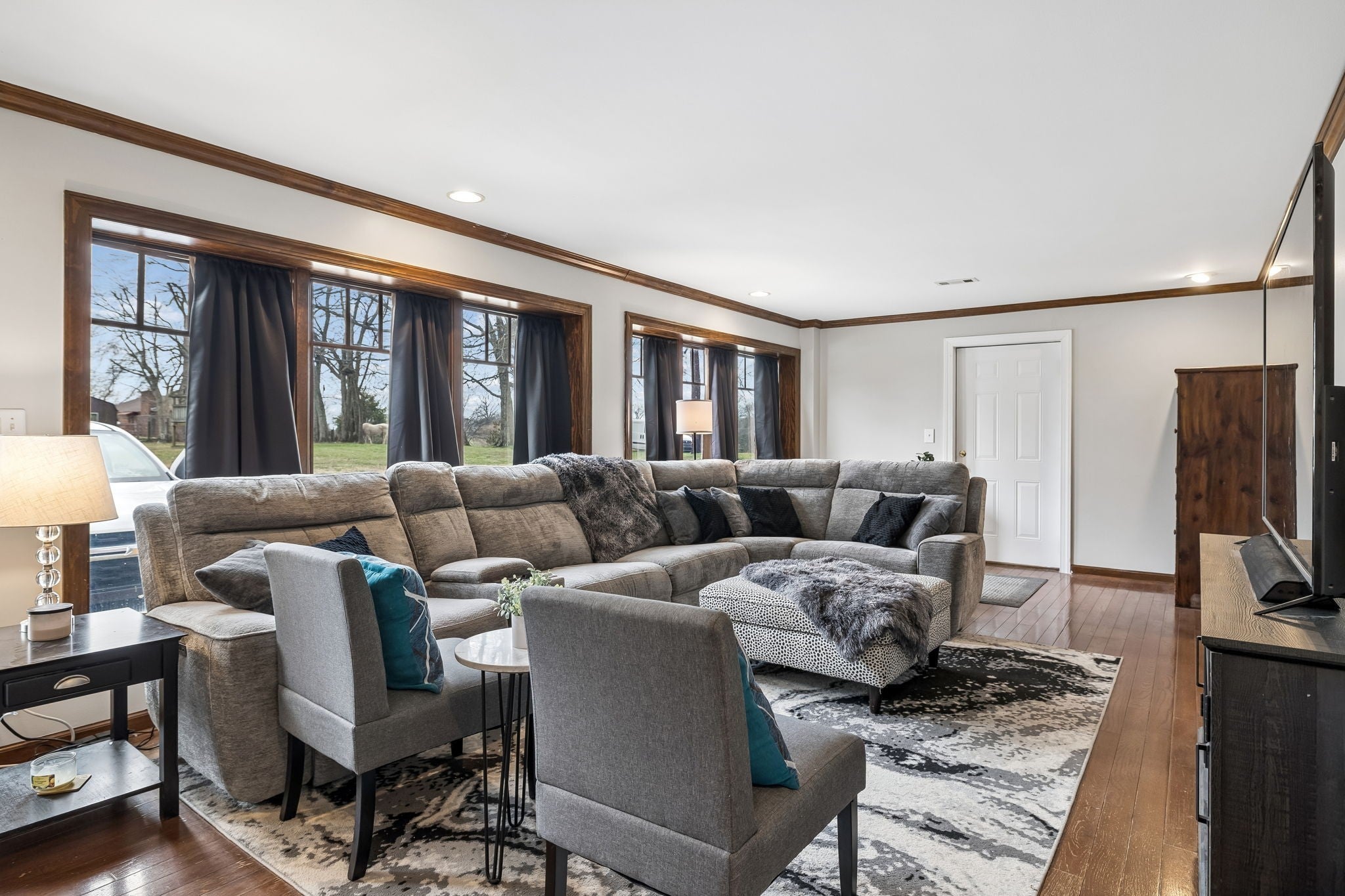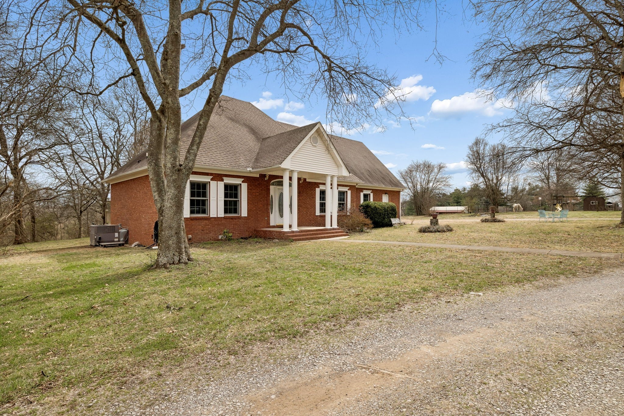 OPEN HOUSE, Sunday, April 12th, 1pm-3pm! *Up to $5,000 in incentives with preferred lender!* Spacious all-brick family home offering over 3,700 sq ft of living space, privately situated on a park-like lot set off the road with a long driveway for added privacy and curb appeal. This property features 3 bedrooms, 3.5 baths, a large bonus room, plus an upstairs flex room with two walk-in closets, ideal for a 4th bedroom, home office, or additional living space. A brand-new HVAC system has just been installed, and the interior has been professionally painted throughout most of the home. The kitchen is designed for both everyday living and entertaining with an abundance of cabinetry, bar seating, and built-in booth/bench seating. The living room showcases floor-to-ceiling windows that fill the space with natural light, along with a fireplace, crown molding, and quality finishes throughout. A desirable split-floor plan offers privacy along with generous storage space throughout the home. The oversized utility room is exceptionally functional, featuring space large enough for multiple hampers, a utility sink, a built-in ironing board for added convenience, and an additional storage closet with deep freezer. Situated on 5.01 acres with room to roam, this property offers privacy, space, and flexibility in a peaceful setting—perfect for buyers seeking tranquility.