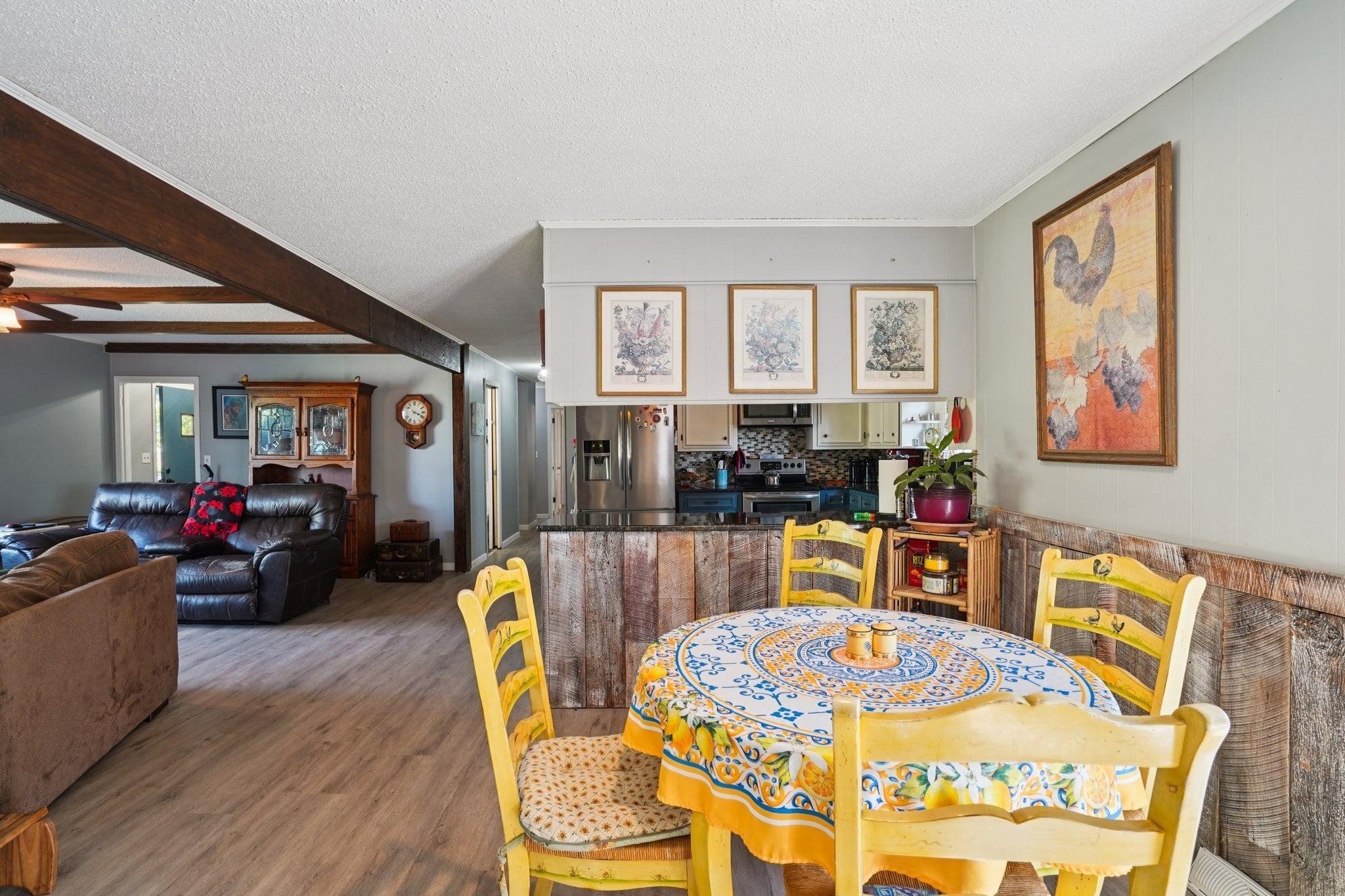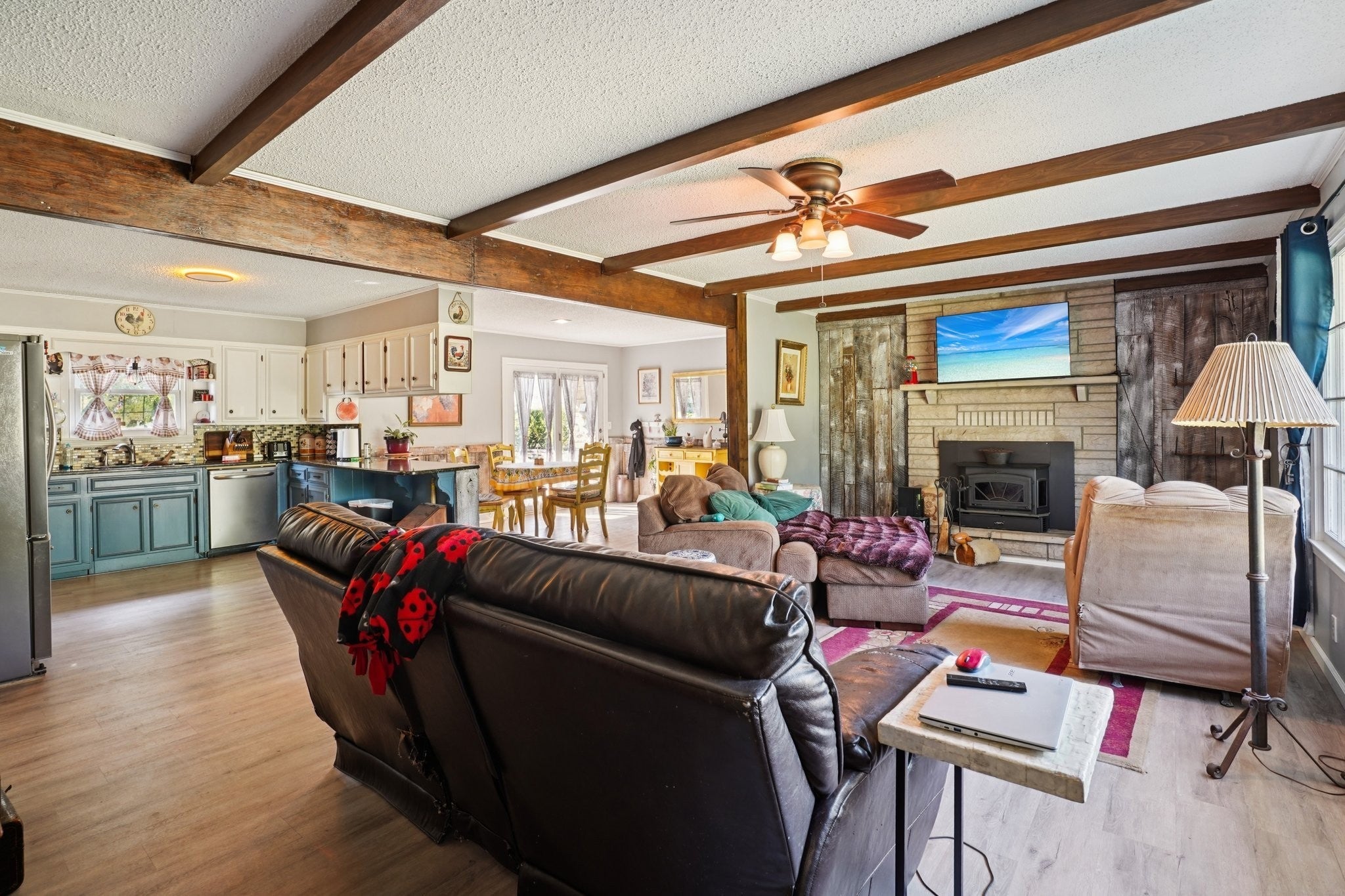 Beautifully Updated 3 Bed / 2 Bath Home on Nearly 1 Acre – Move-In Ready! Highly sought after area with No restrictions. This spacious home offers over 2,000 sq ft of updated living space with 3 bedrooms and 2 bathrooms, all set on almost an acre of land. Features include a brand-new HVAC system, whole house water filtration system, new flooring throughout, and a refreshed kitchen with updated finishes plus new appliances. A standout feature is the hidden room with an approximate 10-gun safe—shown only with a binding contract. Outside, enjoy the versatility of a massive shop complete with a new car lift (included in sale), and RV parking with room to spare. Kubota Tractor included with acceptable offer. Whether you're looking for comfort, space, or functionality, this home has it all. Fourth room is virtually stagged as a media room.