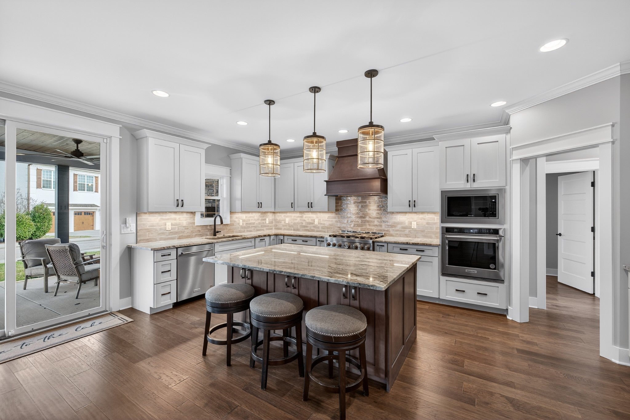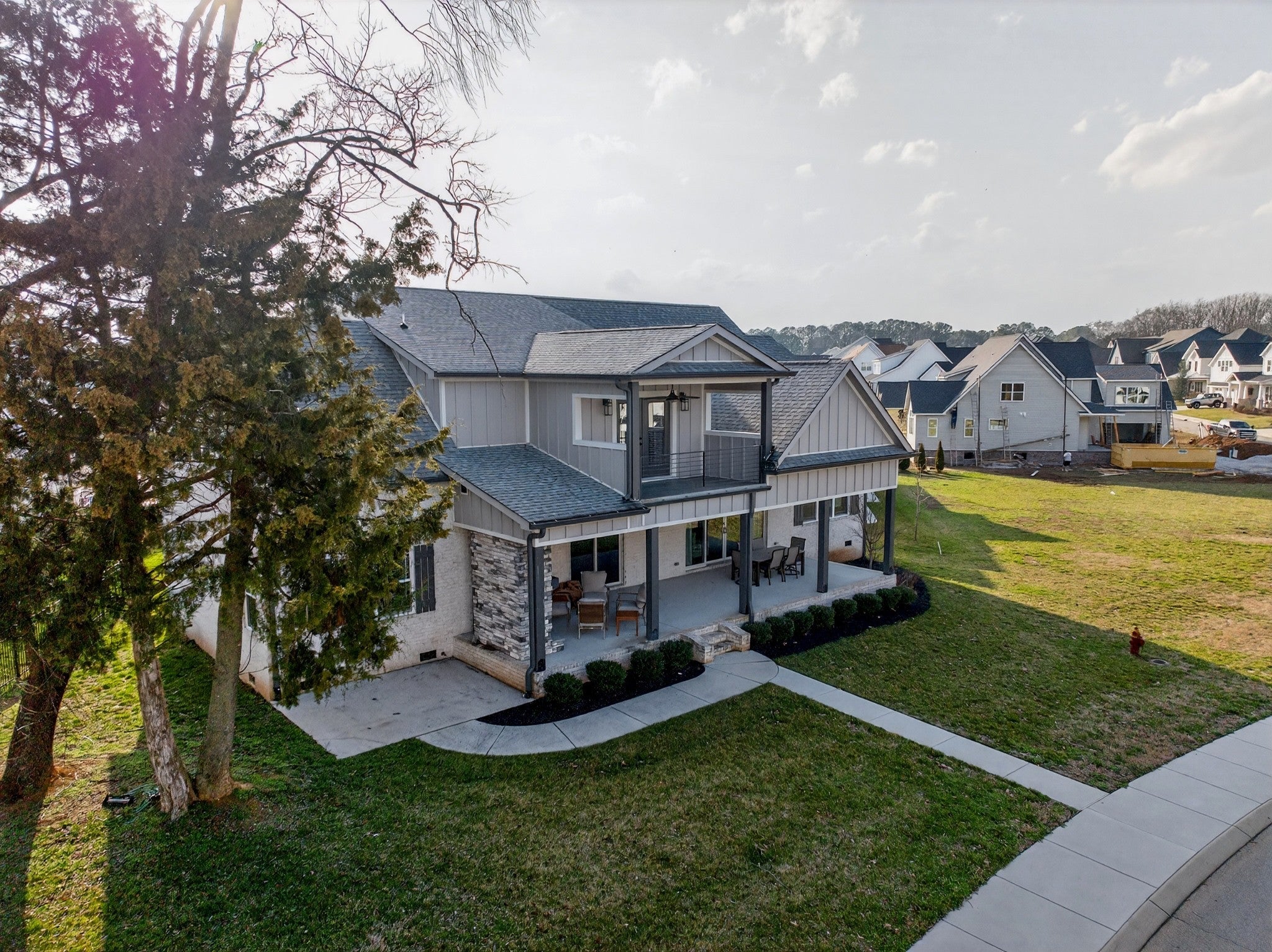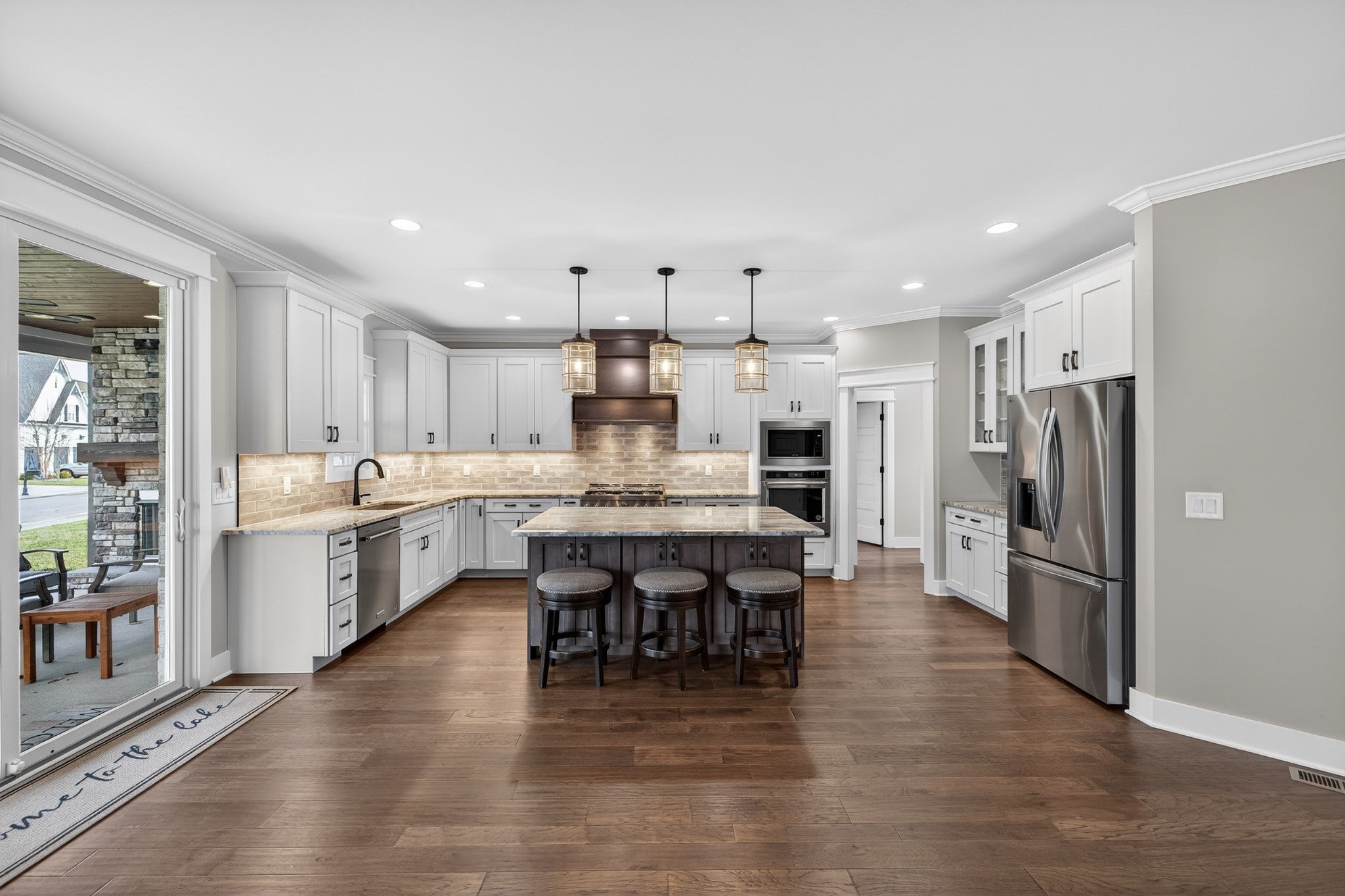 Lake life meets living space in this standout Twin Creeks home inside a Tims Ford Lake gated, marina community. Uniquely positioned, the front entry opens to a quiet cul-de-sac while the rear of the home sits just across from a marina walking path, creating an ideal blend of privacy and walkability. From the back covered porch and upstairs covered balcony, you’ll enjoy partial lake views. With over 3,800 square feet, this is one of the larger homes in the neighborhood and fits entertainers, large families, or buyers who want room for everyone to gather. The layout offers six bedrooms, four and a half baths, a bonus room, a covered front porch, and an impressive 40x13 covered rear porch with outdoor fireplace made for game days, long evenings, and memorable weekends. There is also a patio with a natural gas stub ready for your grill. Inside, the main level features wood flooring throughout the living areas, trim detail, and wainscoting. The vaulted Great Room is anchored by a gas fireplace with built-in bookcases on both sides, while double sliding glass doors open to the covered porch. The kitchen features granite surfaces, a large island, stainless appliances, double ovens, gas range, and a walk-in pantry. Also on the main level are a formal dining room, a drop zone with cubbies, and two bedroom suites—including the primary and a secondary bedroom—each with a bath and walk-in closet. Upstairs, four additional bedrooms and a large bonus room provide flexibility, and one bedroom opens directly to the covered balcony with a sight line toward the water. The epoxy-finished garage adds another polished detail. Beyond the home itself, Twin Creeks offers neighborhood pools, a clubhouse, and easy access to Twin Creeks Marina and Drafts & Watercrafts. Boat rentals, paddlesports, lakeside dining, downtown Winchester, Tims Ford Lake, Tims Ford State Park, and Bear Trace golf help make this a place where weekends feel bigger, summers feel longer, and memories come easy.