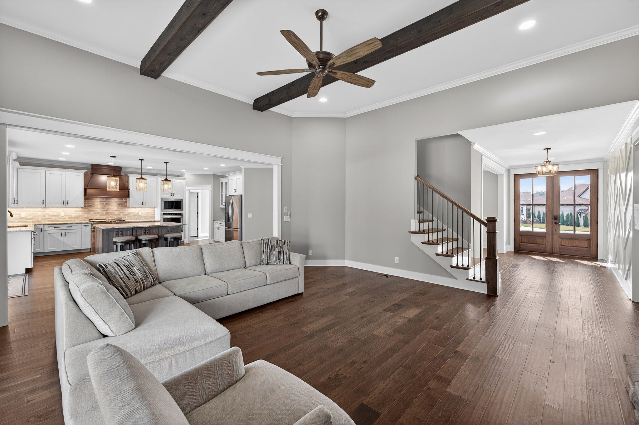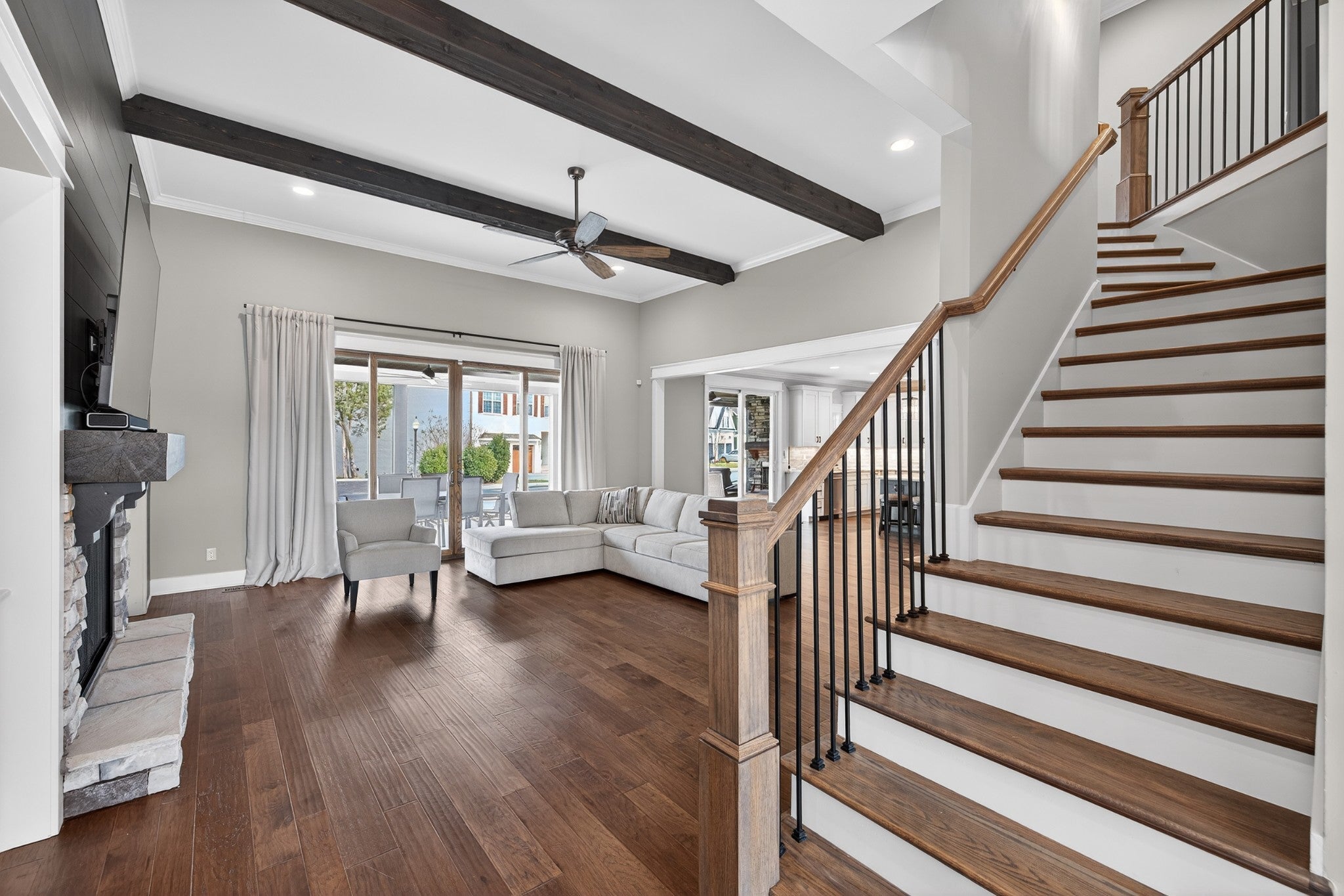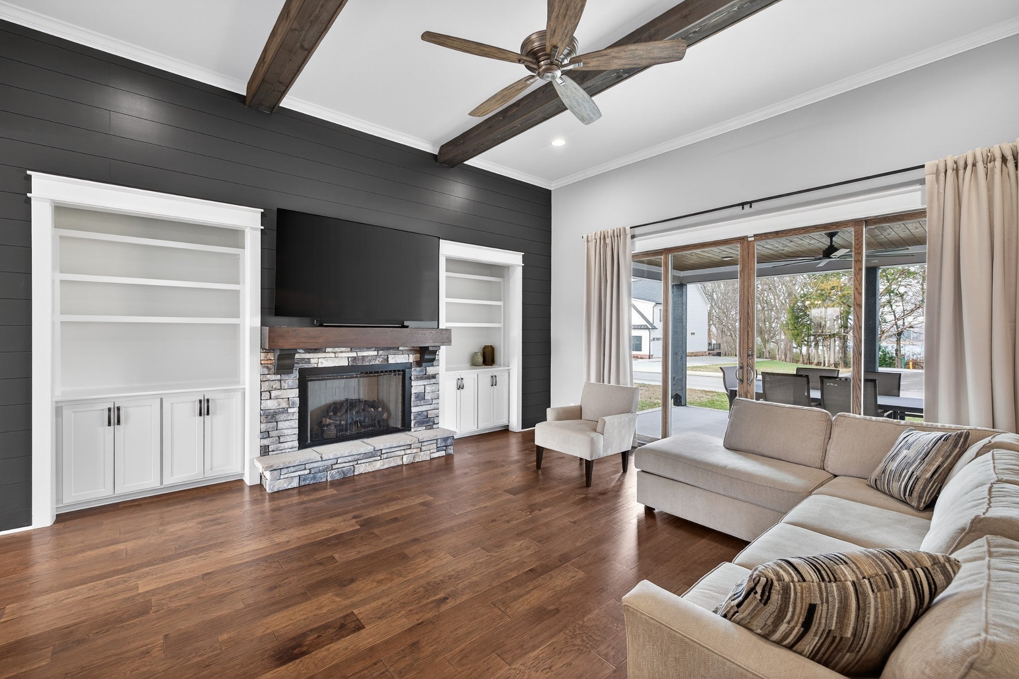 Lake life meets living space in this standout Twin Creeks home inside a Tims Ford Lake gated, marina community. Uniquely positioned, the front entry opens to a quiet cul-de-sac while the rear of the home sits just across from a marina walking path, creating an ideal blend of privacy and walkability. From the back covered porch and upstairs covered balcony, you’ll enjoy partial lake views. With over 3,800 square feet, this is one of the larger homes in the neighborhood and fits entertainers, large families, or buyers who want room for everyone to gather. The layout offers six bedrooms, four and a half baths, a bonus room, a covered front porch, and an impressive 40x13 covered rear porch with outdoor fireplace made for game days, long evenings, and memorable weekends. There is also a patio with a natural gas stub ready for your grill. Inside, the main level features wood flooring throughout the living areas, trim detail, and wainscoting. The vaulted Great Room is anchored by a gas fireplace with built-in bookcases on both sides, while double sliding glass doors open to the covered porch. The kitchen features granite surfaces, a large island, stainless appliances, double ovens, gas range, and a walk-in pantry. Also on the main level are a formal dining room, a drop zone with cubbies, and two bedroom suites—including the primary and a secondary bedroom—each with a bath and walk-in closet. Upstairs, four additional bedrooms and a large bonus room provide flexibility, and one bedroom opens directly to the covered balcony with a sight line toward the water. The epoxy-finished garage adds another polished detail. Beyond the home itself, Twin Creeks offers neighborhood pools, a clubhouse, and easy access to Twin Creeks Marina and Drafts & Watercrafts. Boat rentals, paddlesports, lakeside dining, downtown Winchester, Tims Ford Lake, Tims Ford State Park, and Bear Trace golf help make this a place where weekends feel bigger, summers feel longer, and memories come easy.