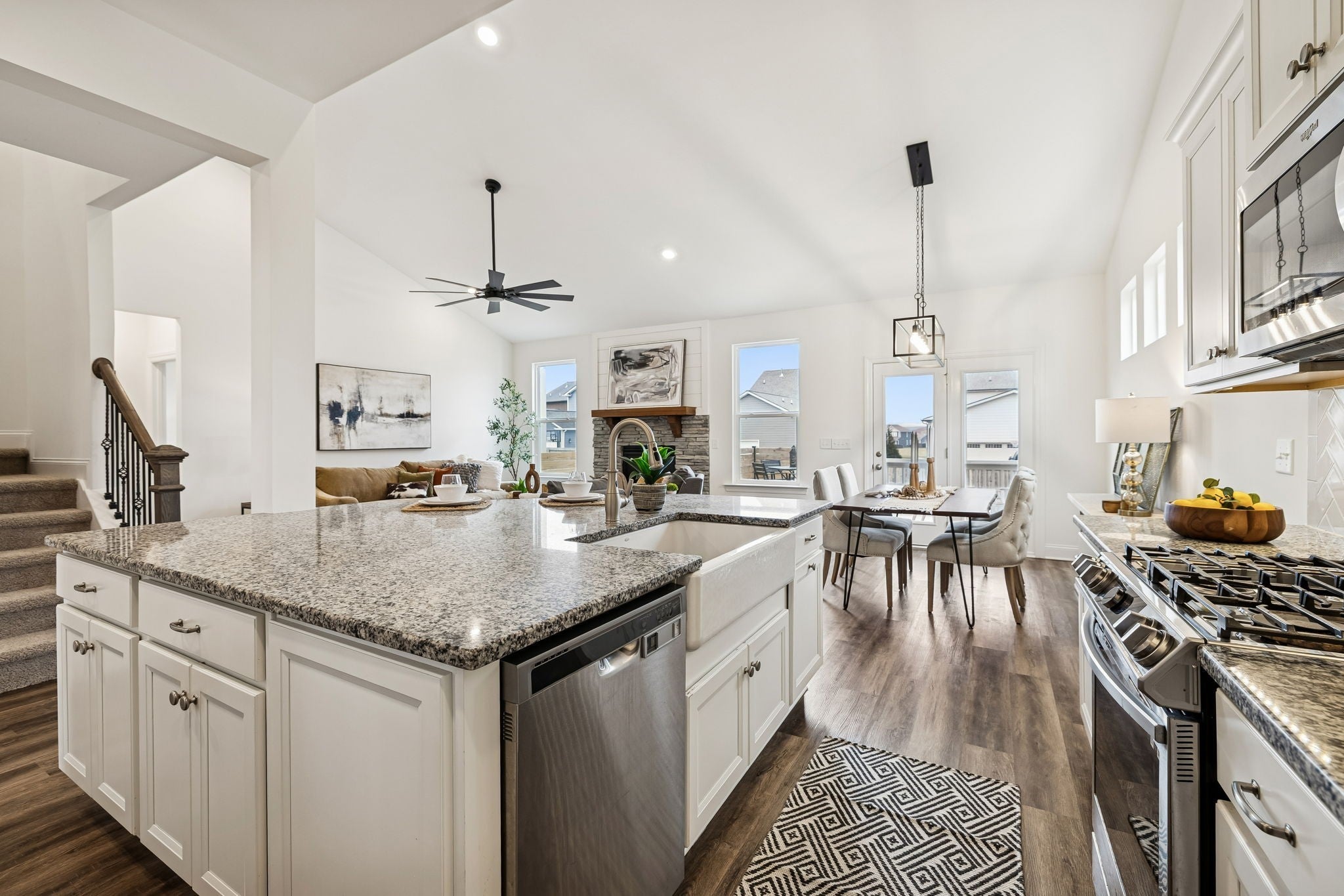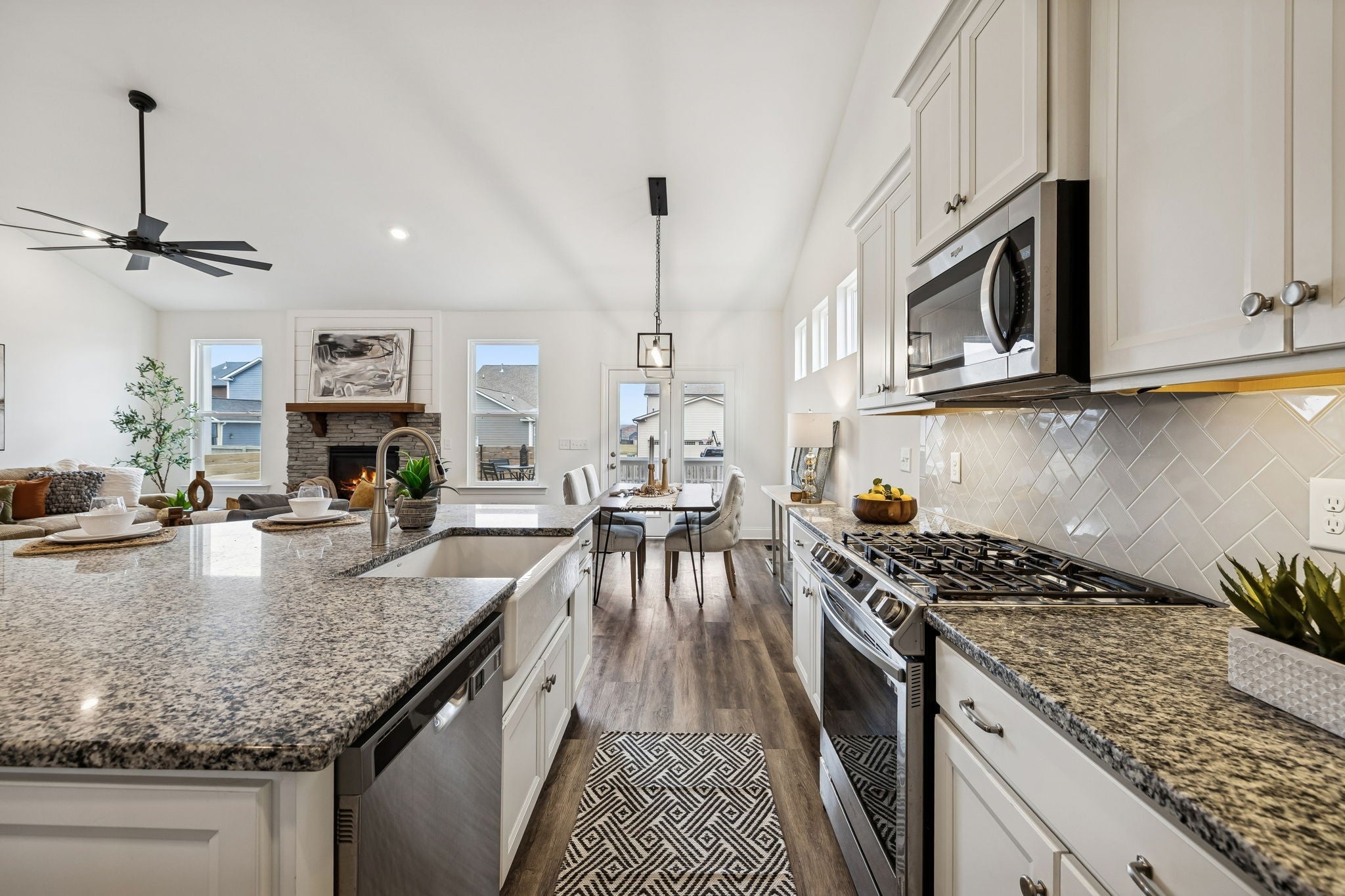 - Electric Oven, Gas Range, Dishwasher, Disposal, Dryer, Microwave, Refrigerator, Stainless Steel Appliance(s), Washer