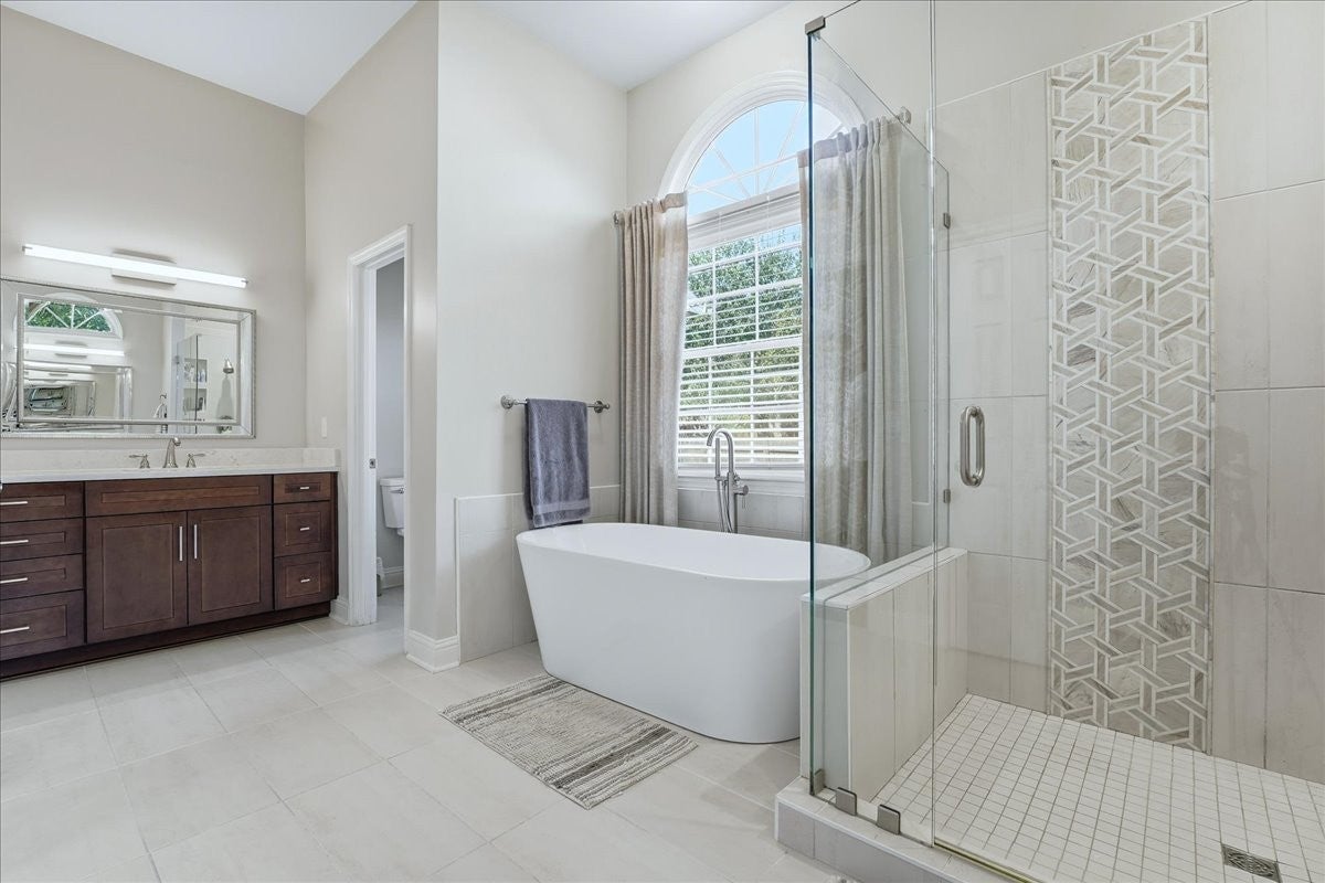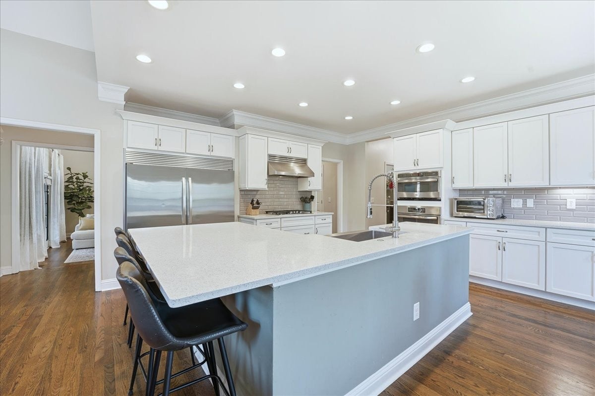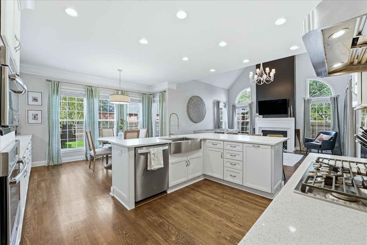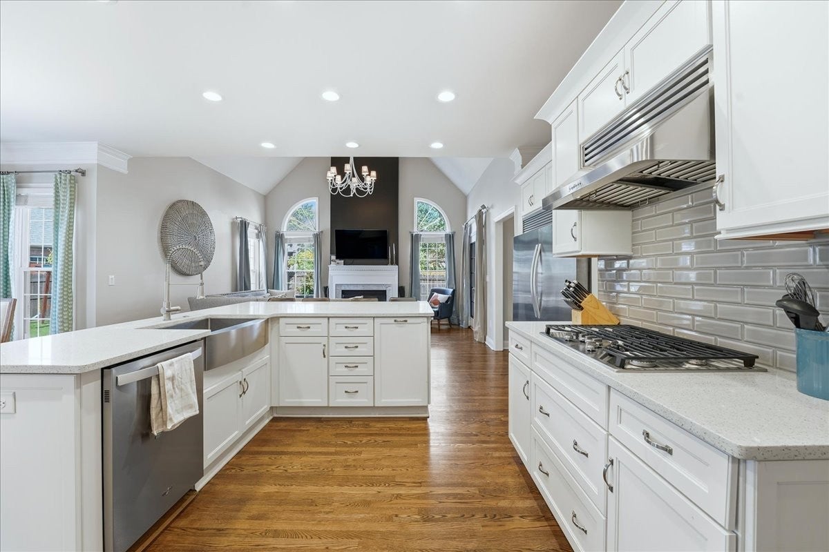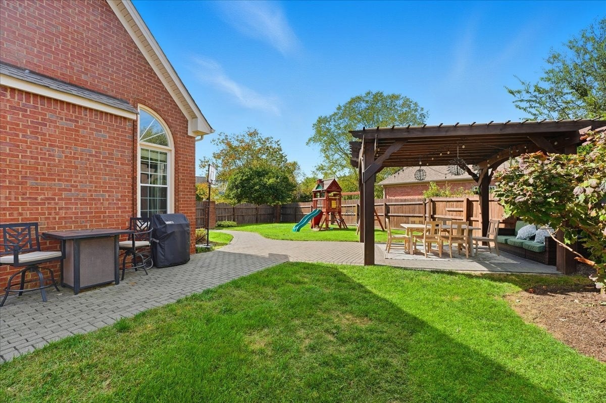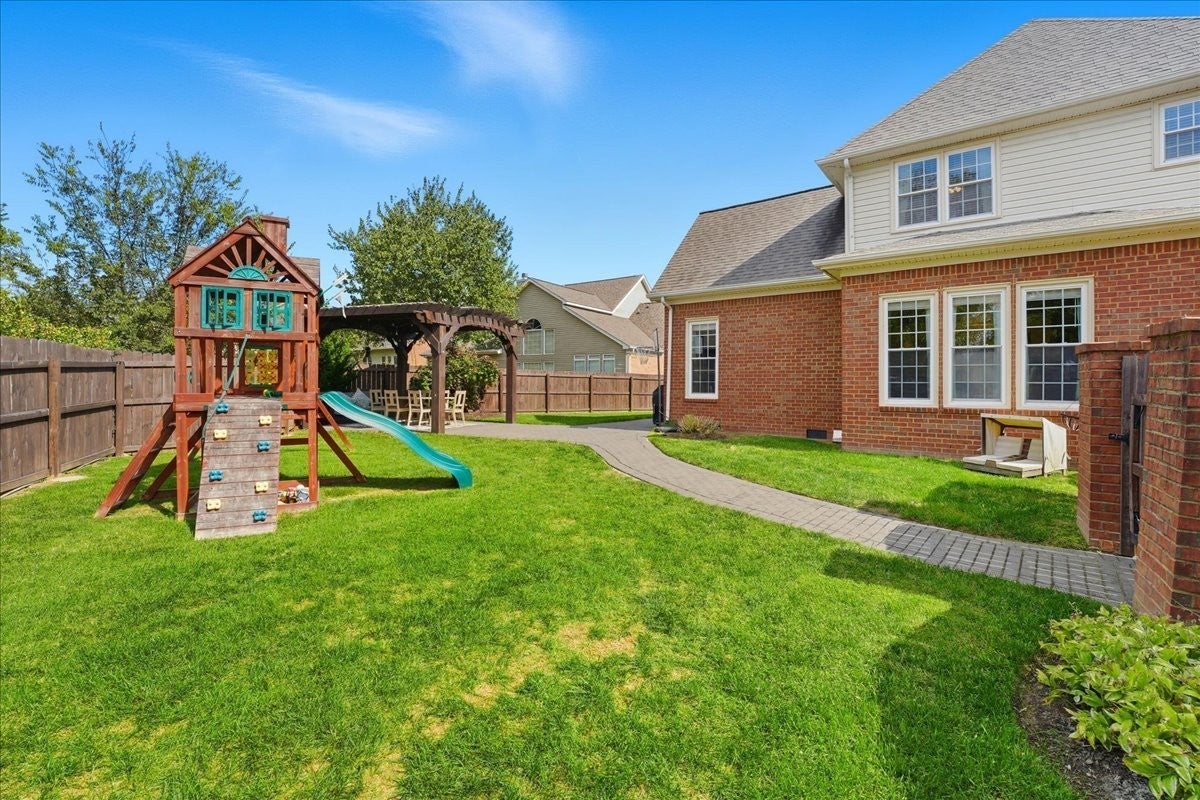 Impressive, fully renovated brick home offering 4K sq ft of beautifully finished living space, perfectly situated on a spacious corner lot in a family-friendly neighborhood. Providing generous room for comfortable living and entertaining outside you have a fully fenced backyard with a charming pergola and stone paver path. Inside, you're welcomed with a stately spiral staircase, designer lighting and sand-and-finish hardwood floors. The stunning kitchen boasts a large island with quartz countertops, a glass tile backsplash, white shaker-style soft-close cabinetry, GE stainless steel 5-burner gas cooktop, built in microwave and oven, built-in Whirlpool refrigerator, and an incredible walk-in pantry. 2 gas fireplaces, soaring ceilings, formal living and dining rooms, spacious storage and laundry rooms, heated and cooled sunroom provides year-round enjoyment. The sprawling main floor primary suite has room for all your furniture + more, the bathroom has a separate soaking tub, tiled shower with frameless glass door, water closet and upgraded finishes throughout. Upstairs you have 3 bedrooms (one en suite bath and one jack and jill bath) as well as another room perfect for a playroom, home office, gym, or even a fifth bedroom (modified closet) suit your needs. California Closets have been installed in the bedroom closets giving you premium storage solutions. The home also features multiple attic storage areas with pull-down access. Enjoy the short stroll to the community pool and tennis court and easy access to Nippers Corner (Publix, Kroger, Walmart), Windy Hill Park and Interstate 65. This beautifully updated home offers style, comfort, and a prime Brentwood location—zoned for top-ranked Granbery Elementary School. Buyer and buyers agent to do their own due diligence on schools/sq footage/ etc