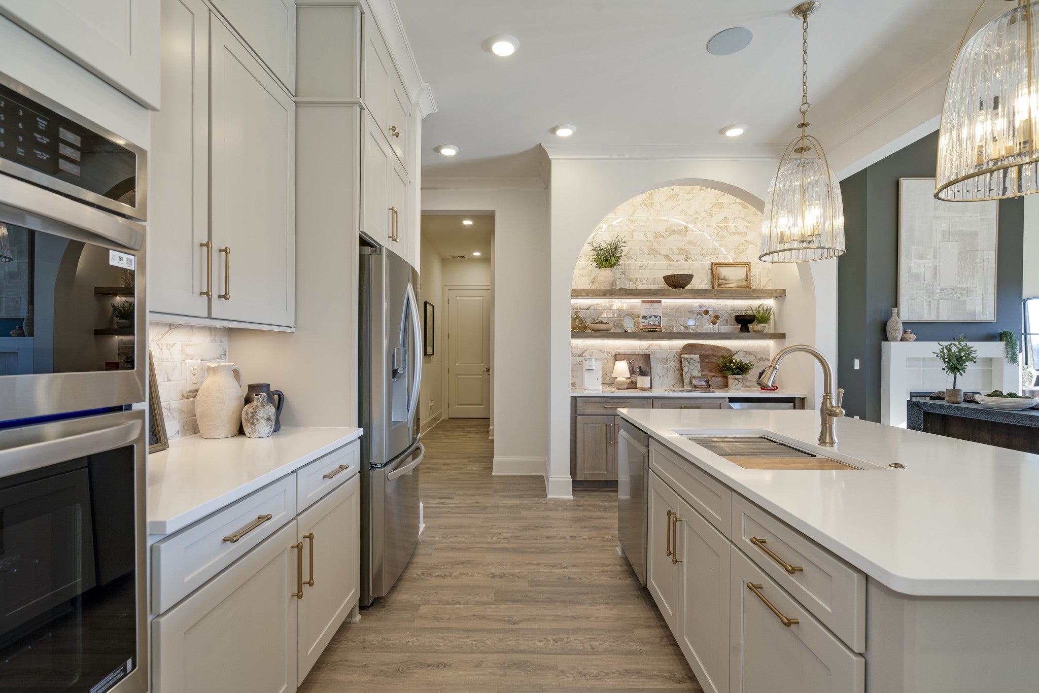 - Built-In Electric Oven, Cooktop, Dishwasher, Disposal, Microwave, Stainless Steel Appliance(s), Smart Appliance(s)