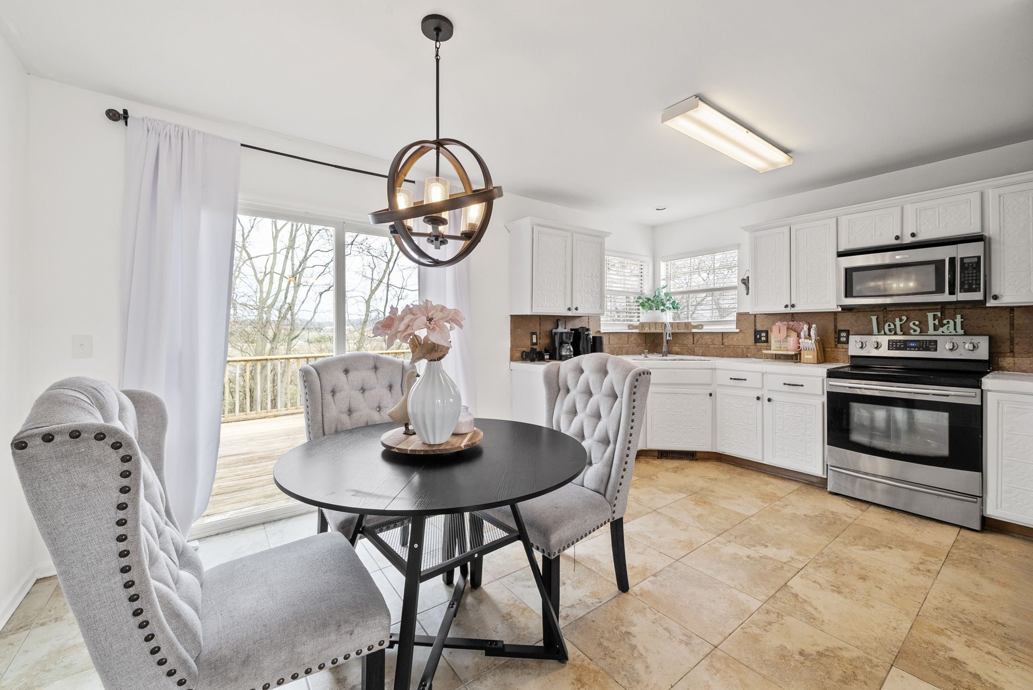- Electric Oven, Cooktop, Dishwasher, Disposal, Microwave, Refrigerator