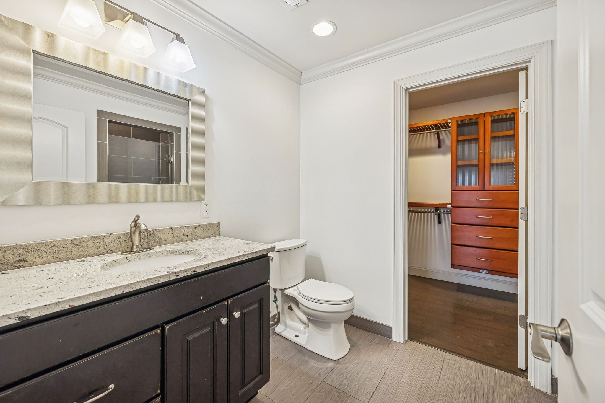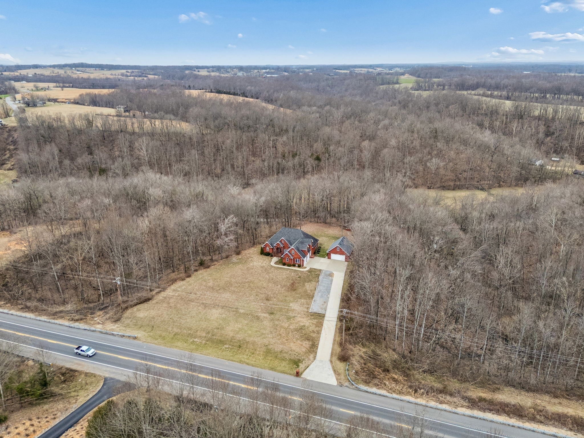 This stunning 6,000+ sq ft all-brick estate sits on 3 private acres and offers the perfect blend of elegance, functionality, and efficiency. From the moment you step inside, you’ll appreciate the rich hardwood floors, granite countertops, and custom built-ins throughout. Designed with both comfort and convenience in mind, the home features dimmable automatic lighting, spacious walk-in closets with built-ins, and abundant storage at every turn. Upstairs, you’ll find a dedicated office and an oversized bonus room—ideal for working from home, hobbies, or additional living space. In addition to the main living areas, the home also includes an extra family/recreation room, providing even more flexible space for entertaining, relaxing, or game nights. The finished basement offers a separate living room and full kitchen area—perfect for multi-generational living, extended guests, or private quarters. Safety and infrastructure are top-notch with a dedicated storm shelter, electrical room, and a separate tech room for security cameras, WiFi, and home systems. Outdoor living is just as impressive with a covered deck and patio overlooking the expansive 3-acre property. A detached garage with a bonus room above adds even more versatility—ideal for a guest suite, studio, gym, or additional office space. This home truly has it all—every detail thoughtfully planned with storage, efficiency, and everyday living in mind.