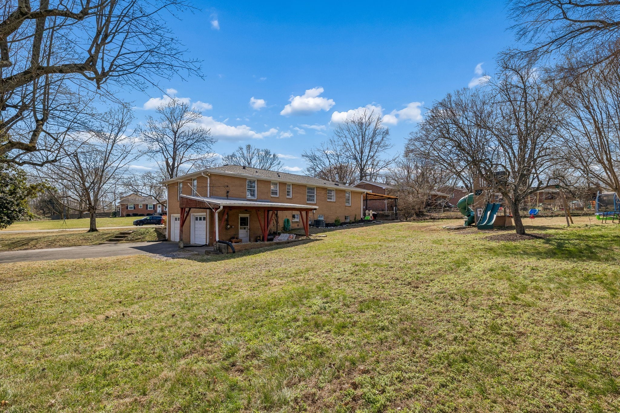 Classic Whispering Hills home on a .4 acre lot! Crieve Hall Elementary zoning! This home is situated in a pocket of Whispering Hills that provides a walkable neighborhood. All the good stuff - original beautiful hardwood floors throughout, tiled bath and half-bath. Knotty-pine in kitchen to your heart's content. Generous room-sizes throughout including the large kitchen and den combo with wood-burning fireplace. Everything is in great shape and ready to leave it as it is or for you to go all HGTV/Magnolia on it. Large basement area with decent natural light has proven to be perfect for guest space, play-space or man-cave. Two car-garage and two separate driveways, carport off of kitchen and nice, covered-patio/porch on the backside of the house. The yard is very generous with wide side-yards and backyard.