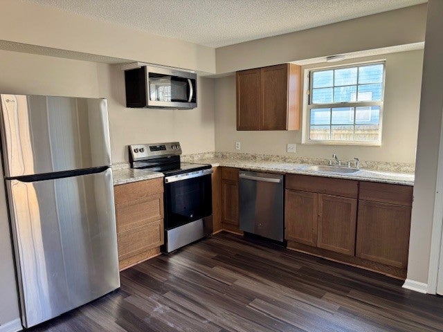 - Electric Range, Dishwasher, Dryer, Microwave, Refrigerator, Stainless Steel Appliance(s), Washer