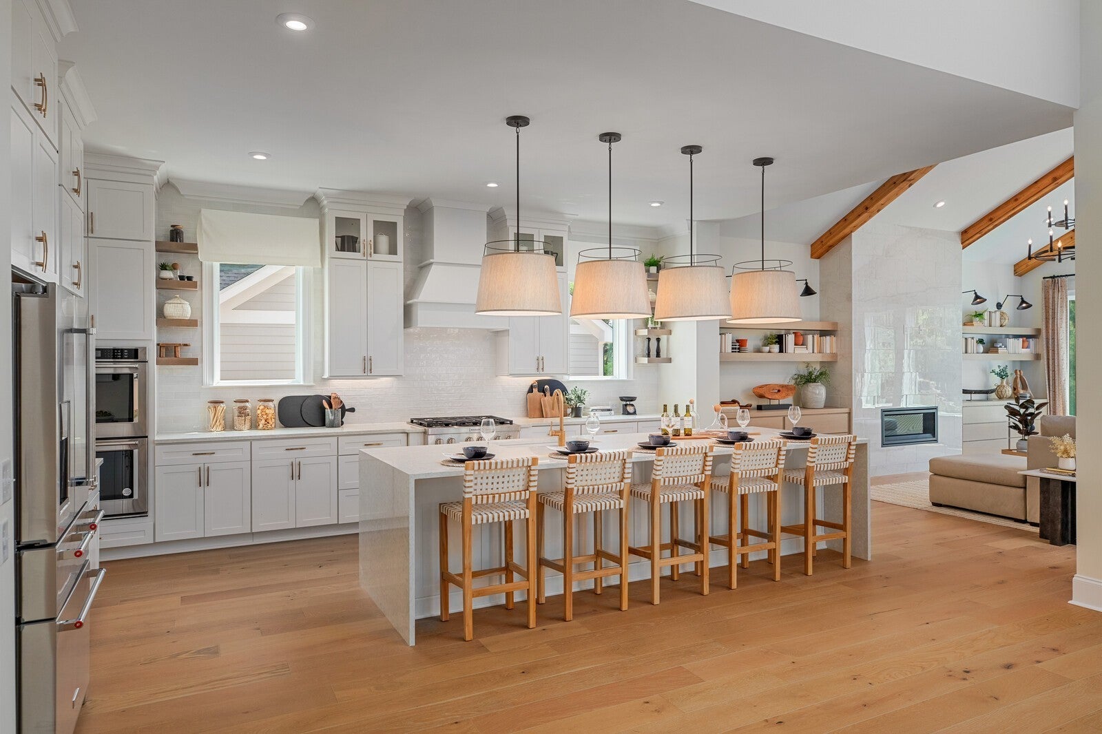 - Double Oven, Built-In Gas Range, Dishwasher, Disposal, Microwave, Refrigerator, Stainless Steel Appliance(s), Smart Appliance(s)