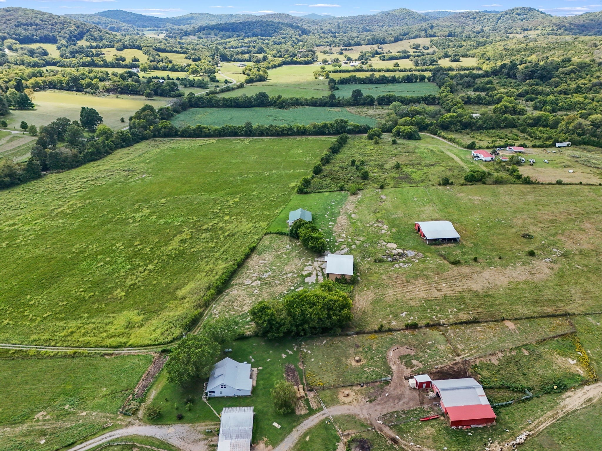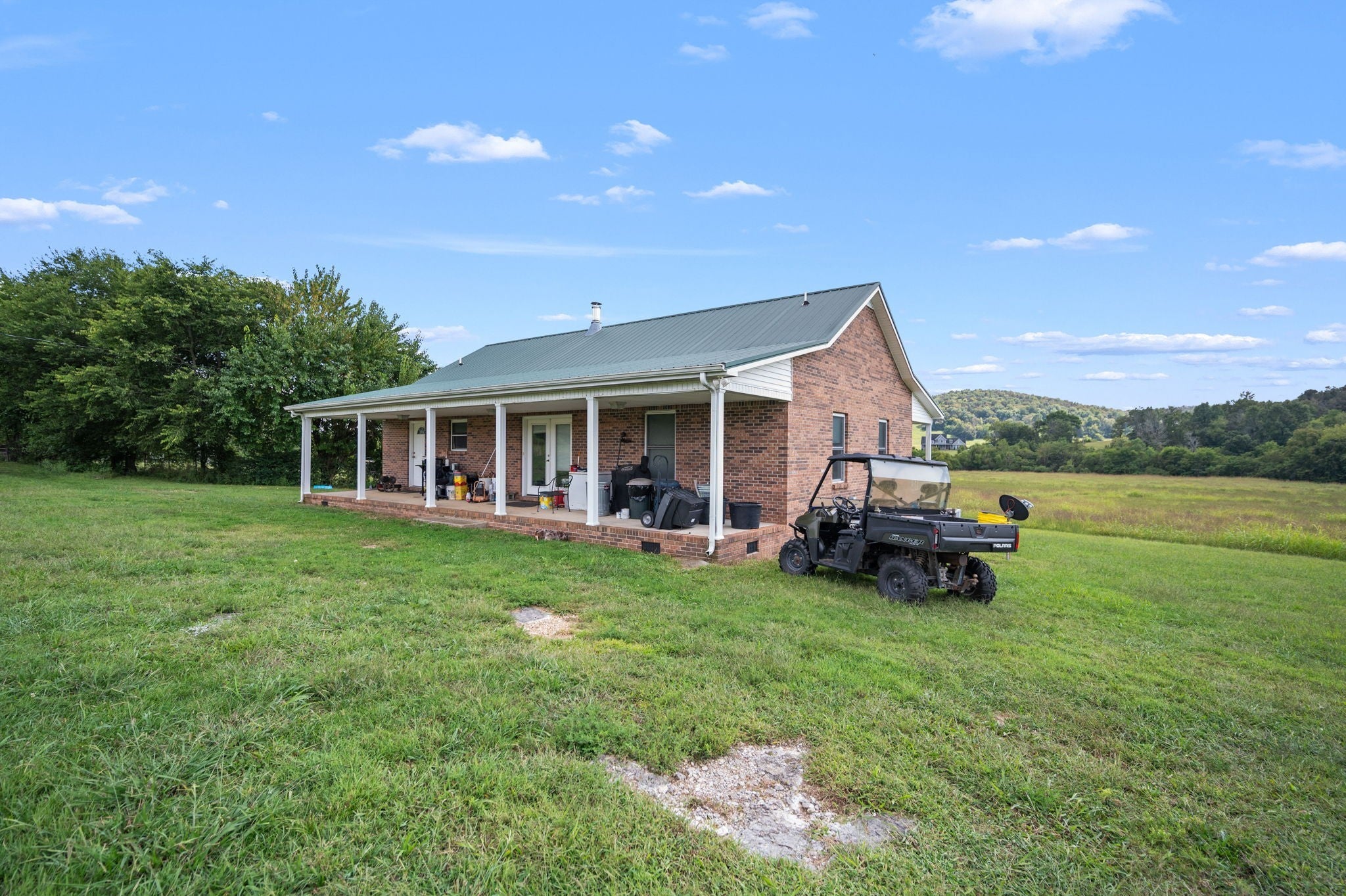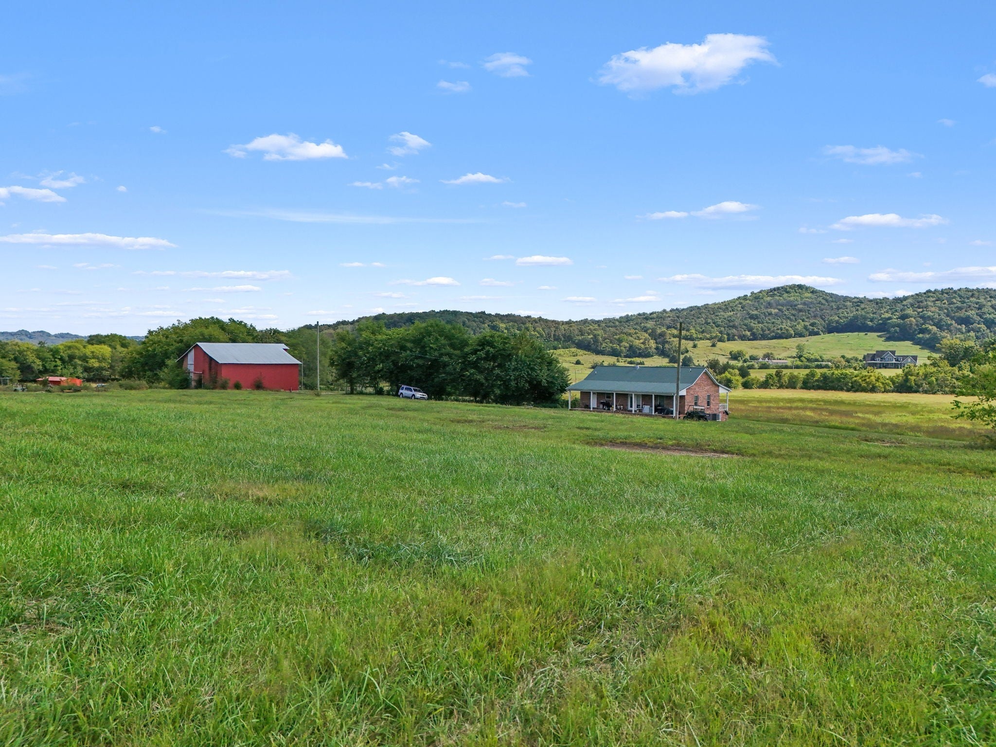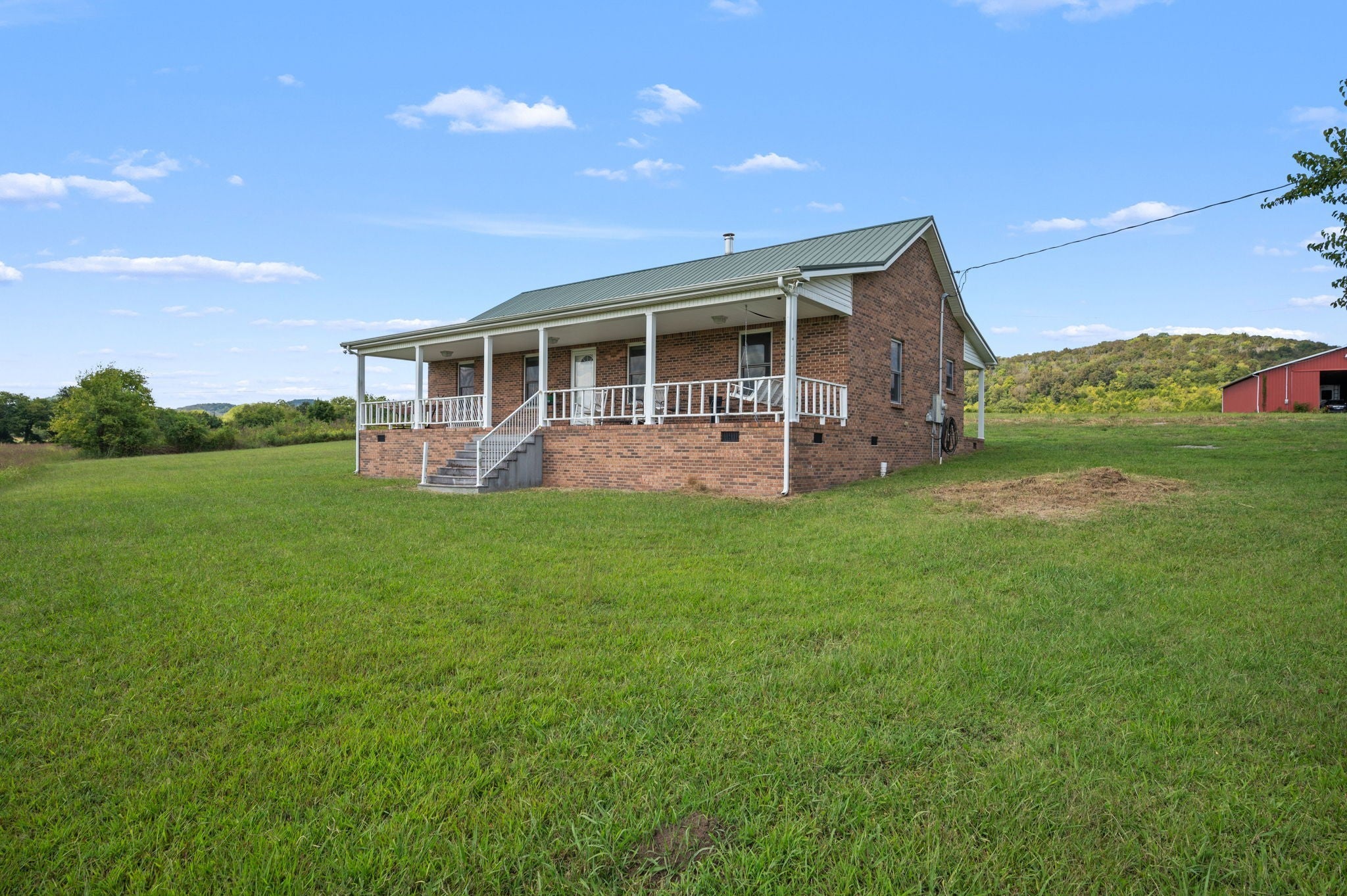 Welcome to the farm! All brick home on 41.43+/- acres with a barn and shop! Home contains 2 bedrooms, an office, and 2 bathrooms--one with a tile shower. Enjoy views of the surrounding countryside from large front and back porches. Central heat and air and a wood stove. Very large barn with electricity. Large shop building with lean-to, water, and electricity. Creek along the front of the property, mostly open pasture ground, and woods in the back.