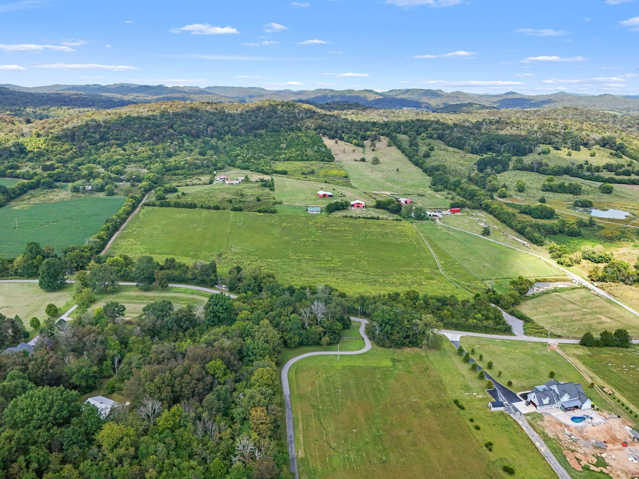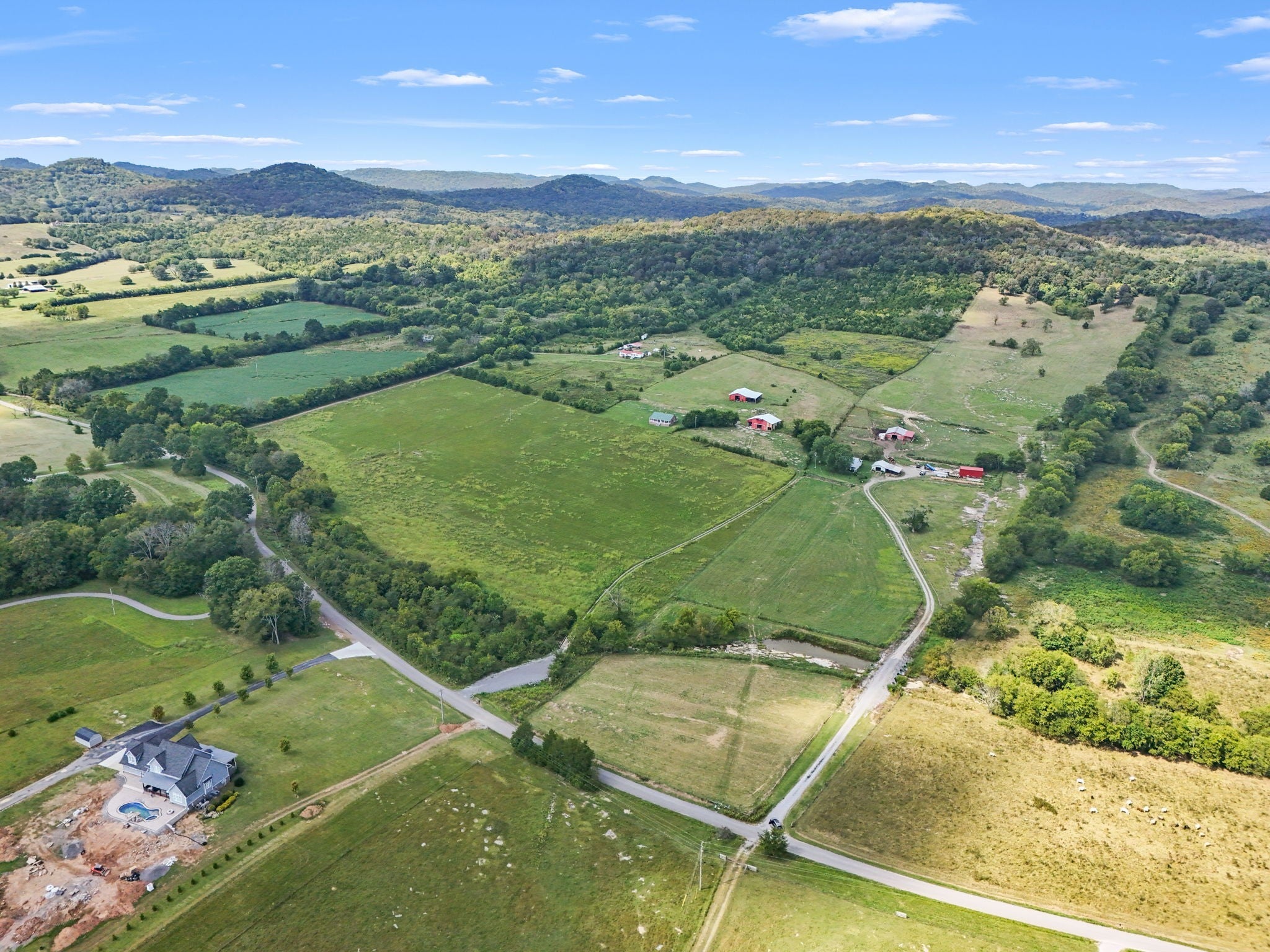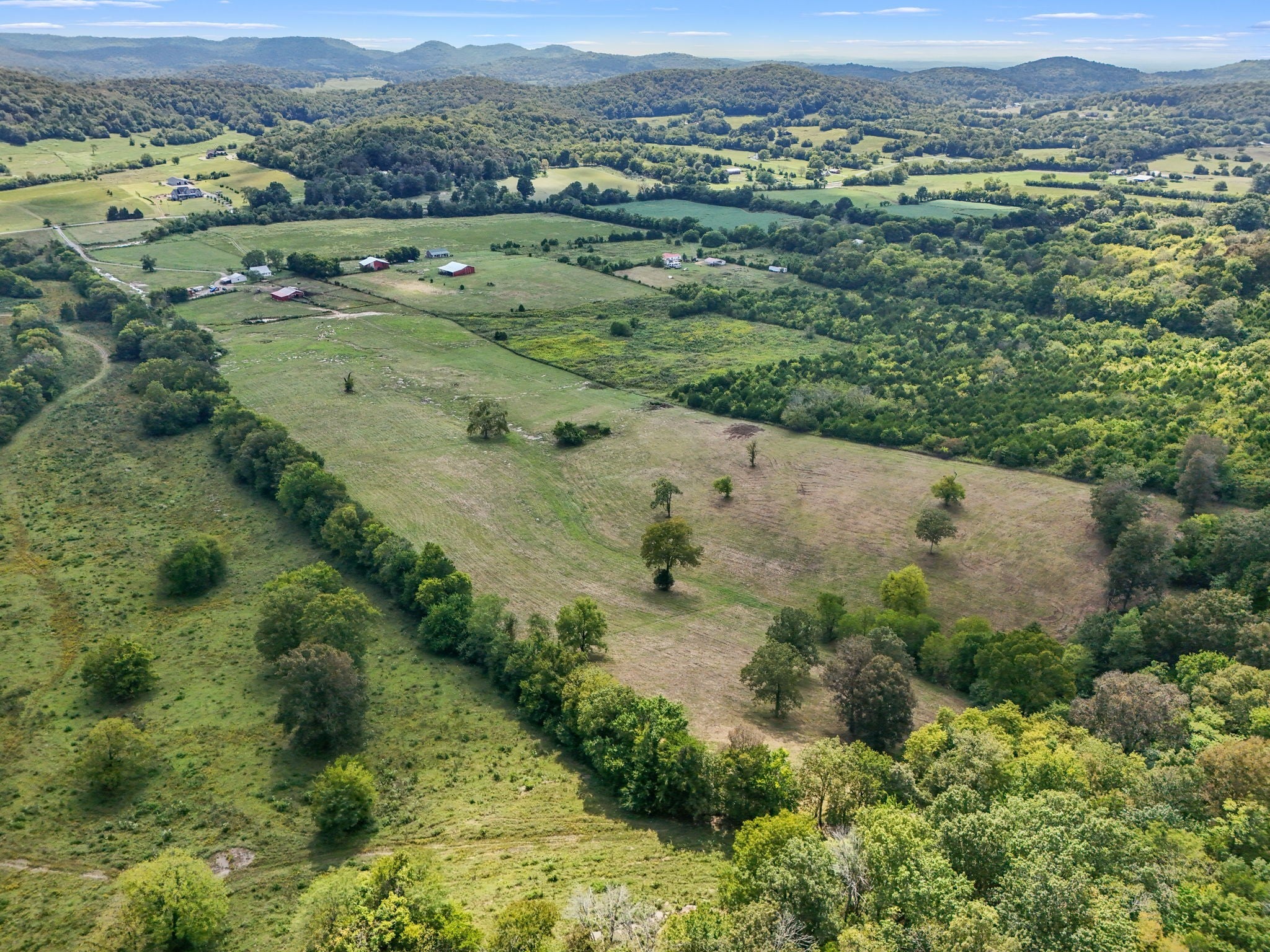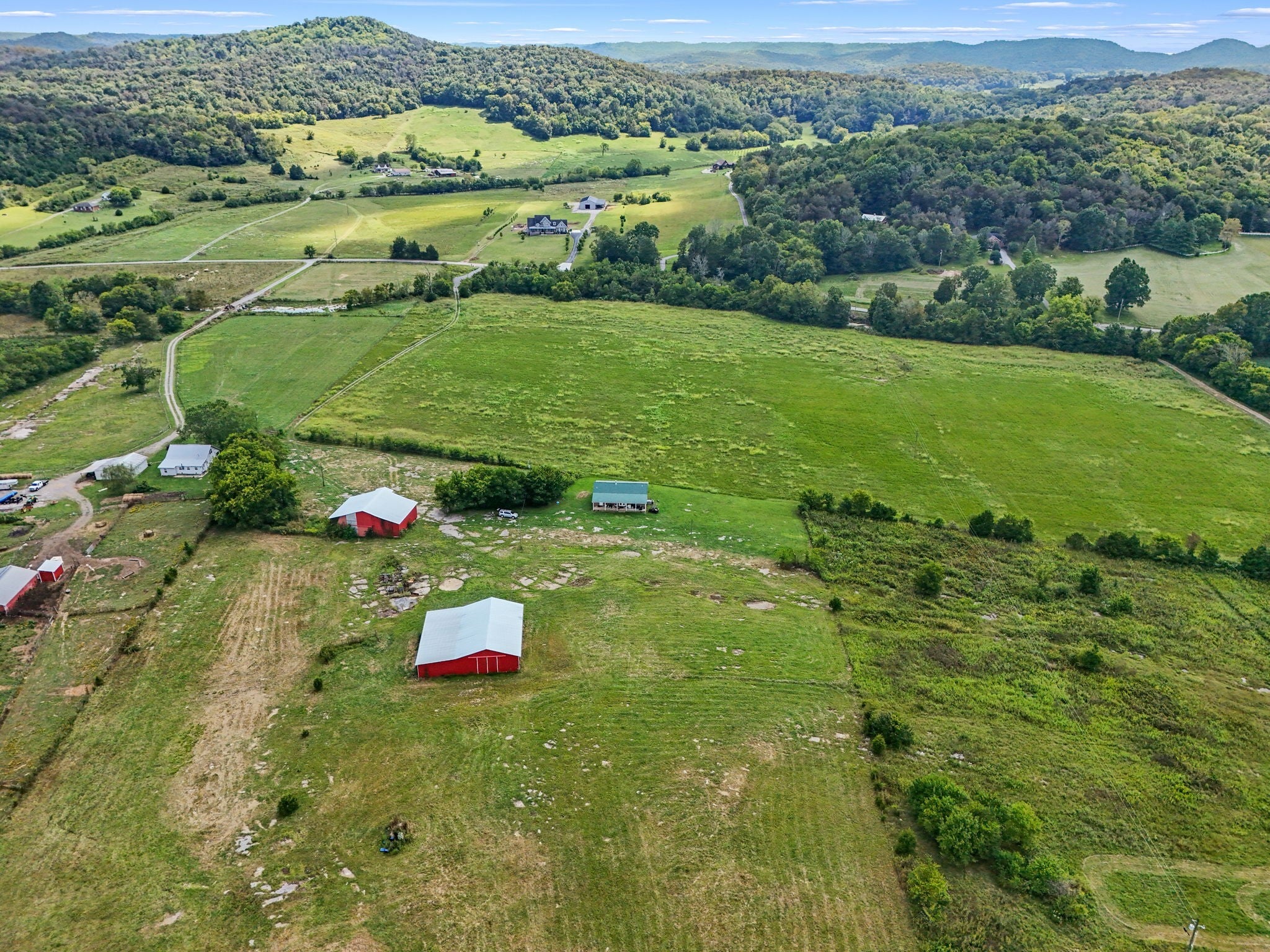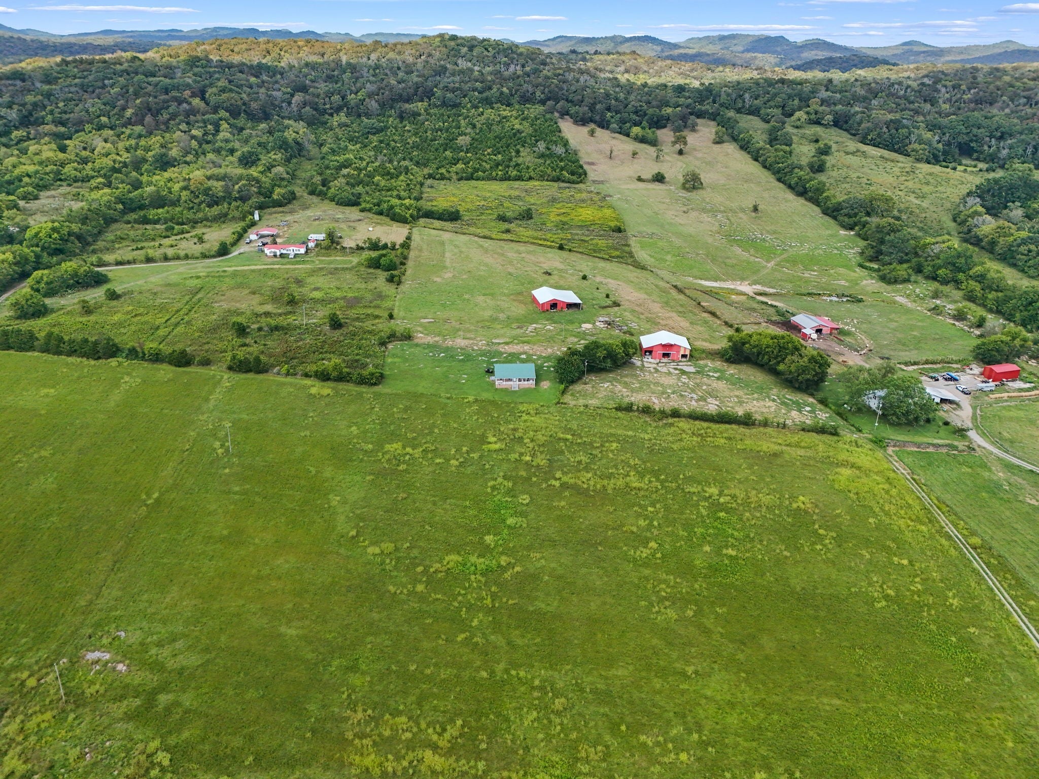 Welcome to the farm! All brick home on 41.43+/- acres with a barn and shop! Home contains 2 bedrooms, an office, and 2 bathrooms--one with a tile shower. Enjoy views of the surrounding countryside from large front and back porches. Central heat and air and a wood stove. Very large barn with electricity. Large shop building with lean-to, water, and electricity. Creek along the front of the property, mostly open pasture ground, and woods in the back.