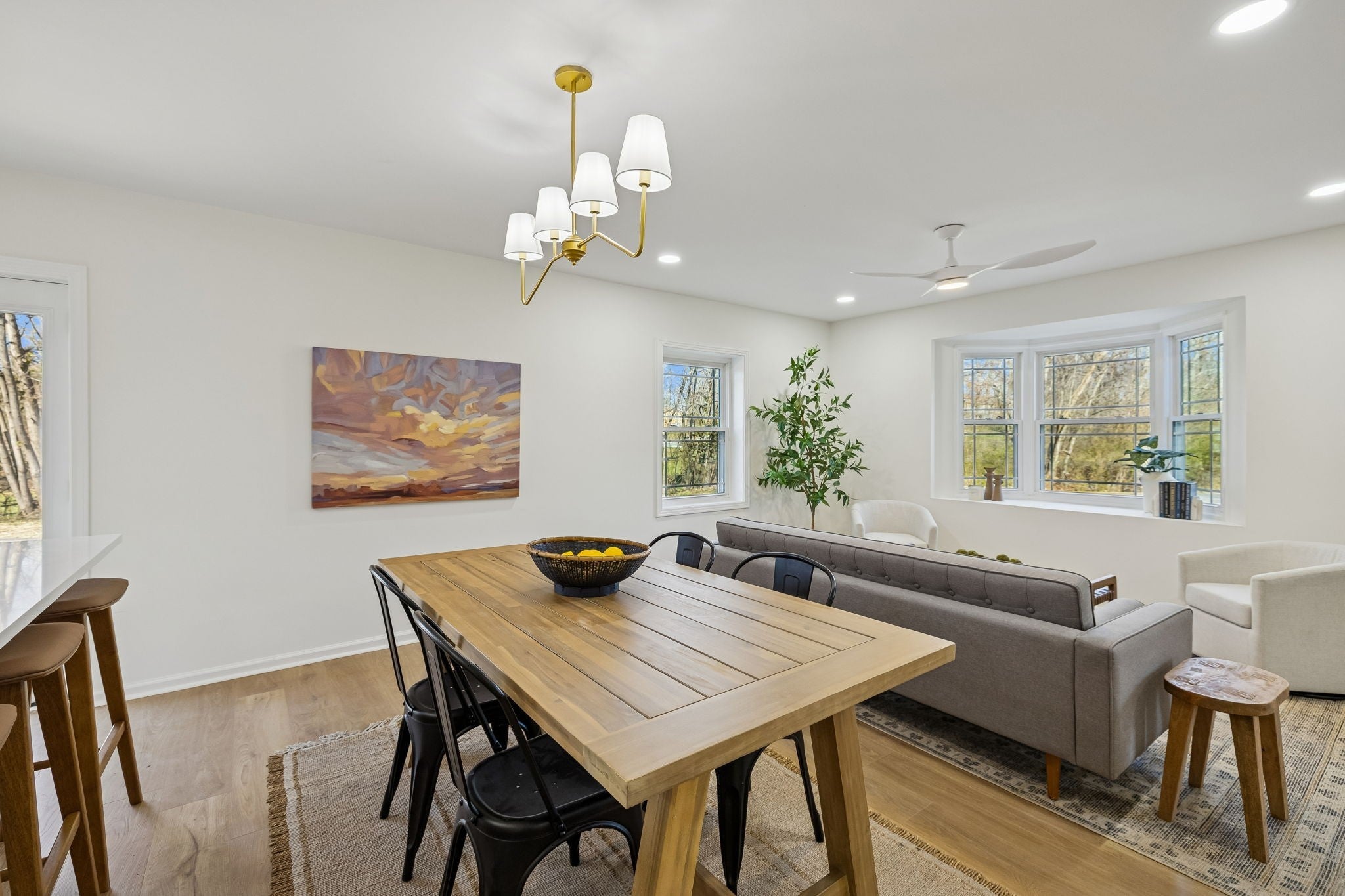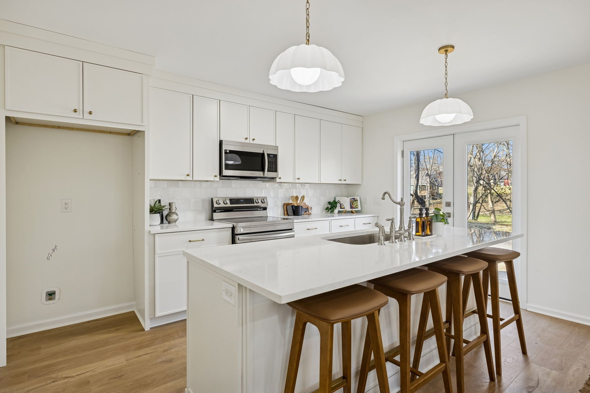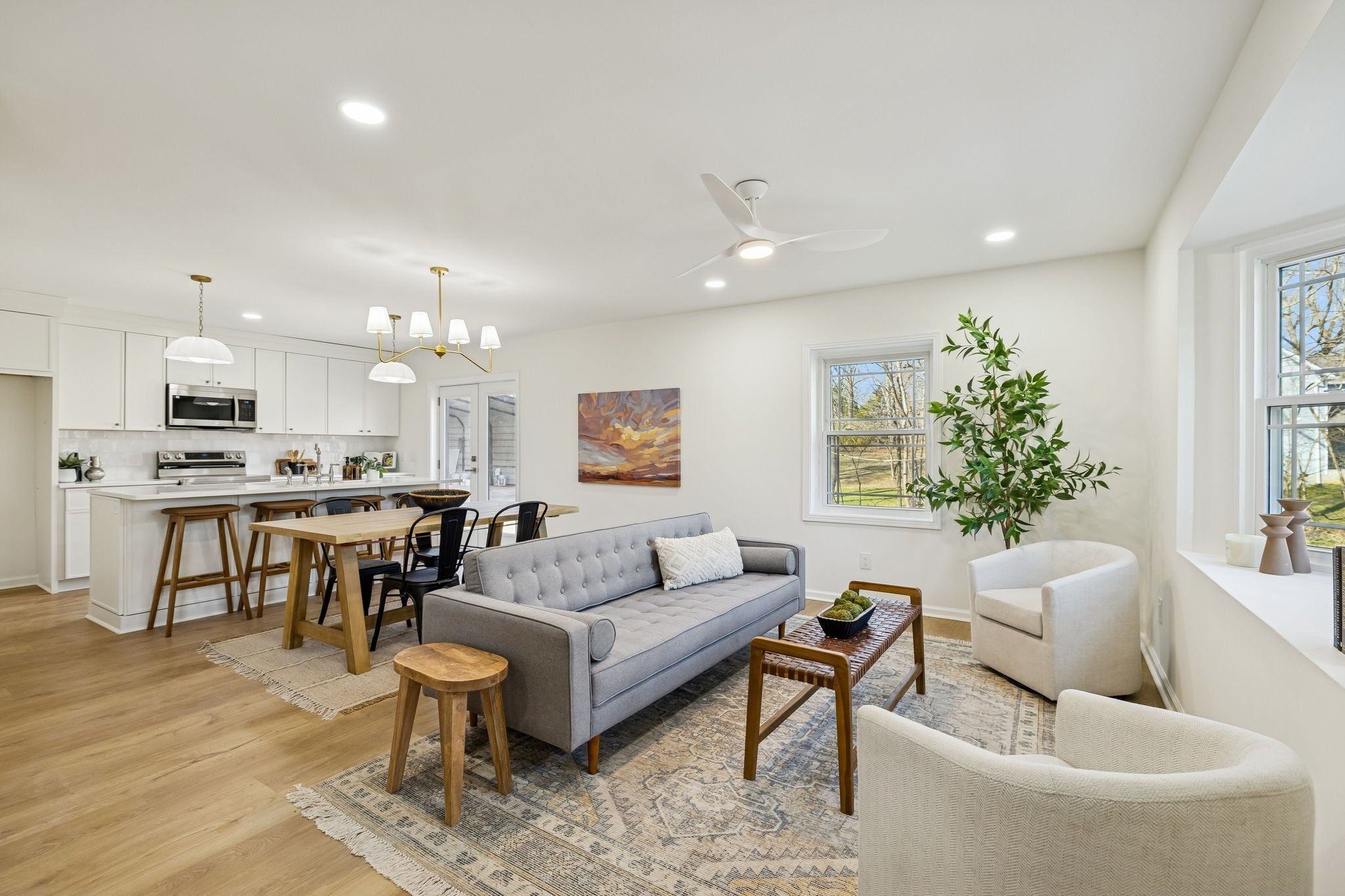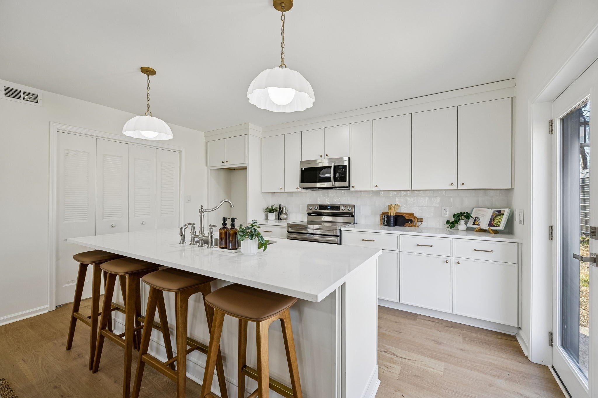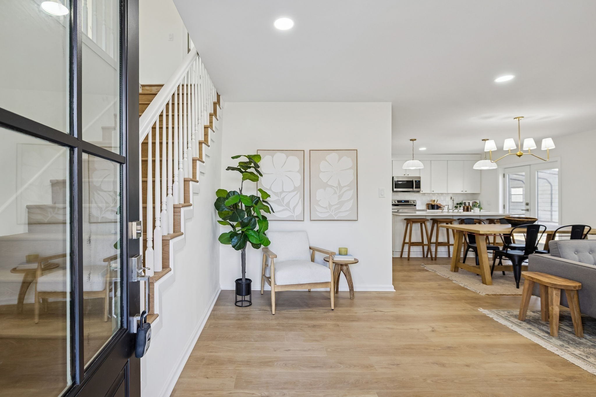 This beautifully renovated 4-bedroom, 2.5-bath home offers the perfect blend of modern design and functional living — all set on a spacious 0.67-acre lot. From the moment you step inside, you’ll notice the bright, open-concept layout connecting the living room, dining area, and kitchen — ideal for both everyday living and entertaining. Throughout the home, you’ll find brand-new light oak LVP flooring, fresh neutral paint, and updated lighting that create a warm and inviting atmosphere. The kitchen is truly the heart of the home — featuring white slim shaker cabinetry, white quartz countertops, a large center island, elegant pendant lighting, and a stunning white zellige tile backsplash that adds texture and character. All three bathrooms have been thoughtfully designed with their own unique style, showcasing wood reeded vanities, white quartz countertops, and beautifully tiled floors that feel both timeless and elevated. Upstairs, you’ll find two additional bonus spaces — perfect for a second living area, home office, playroom, or flex space to fit your needs. Outside, the property sits on a generous 0.67-acre lot and includes a detached two-car carport, offering both space and functionality. Major updates provide peace of mind, with the roof, windows, and HVAC all within the last five years. This home is truly a showstopper — move-in ready and waiting for its next owner.