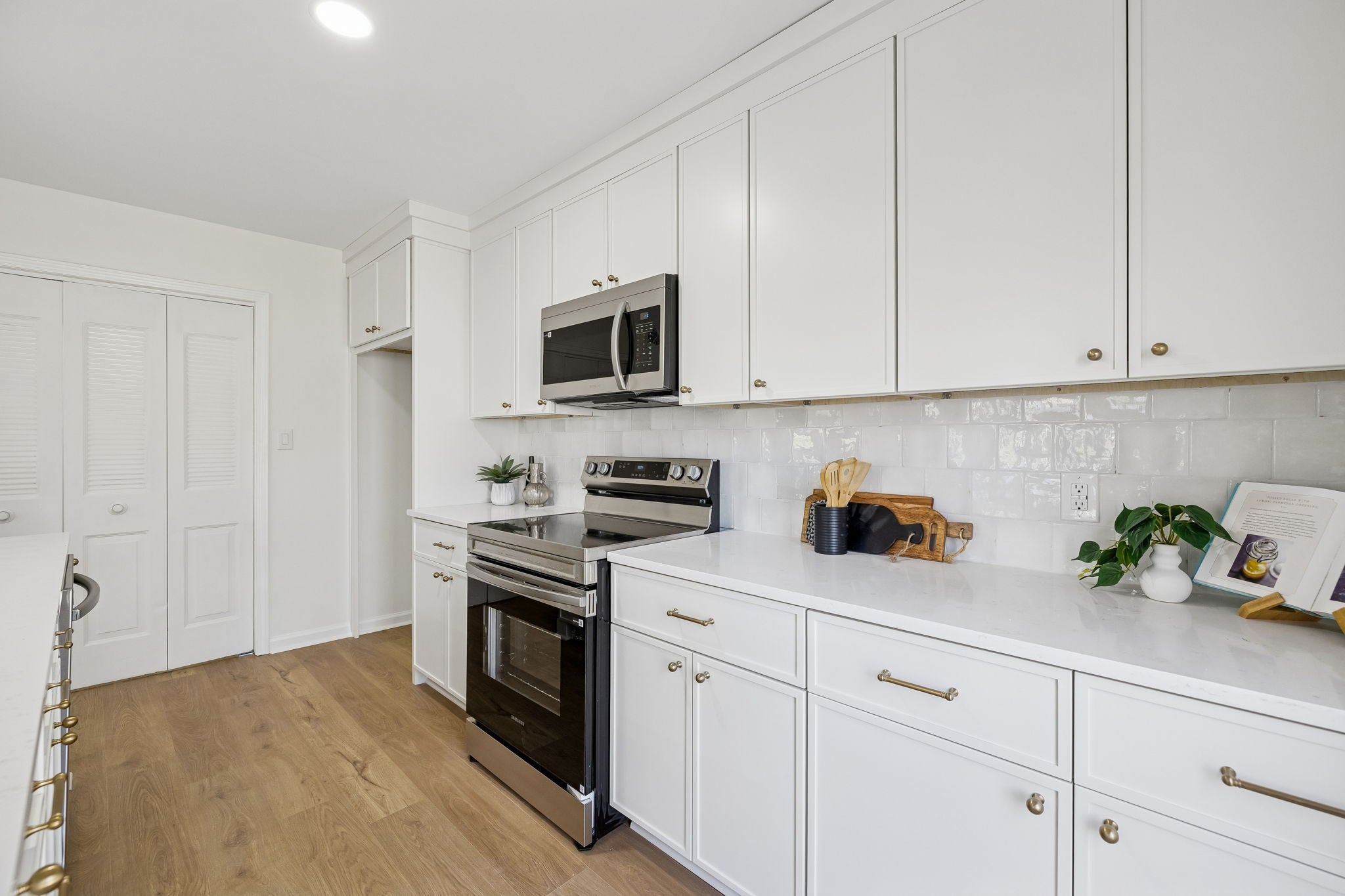 - Electric Range, Dishwasher, Microwave, Stainless Steel Appliance(s)