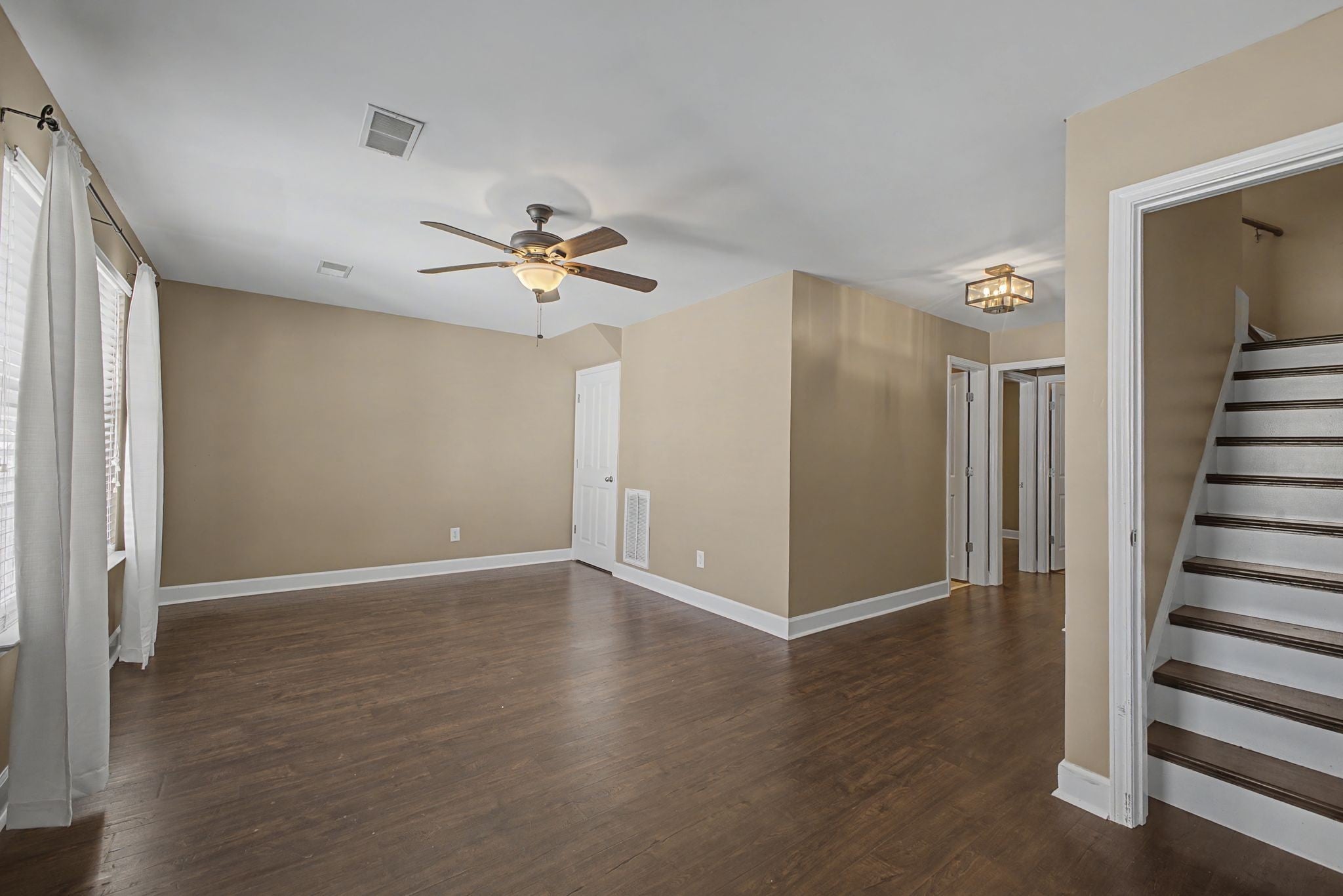 Beautifully maintained and spacious end-unit town home! Enjoy relaxing mornings on the welcoming covered front porch before stepping into a bright, open living space filled with natural light. This home features newer flooring throughout for a consistent style. The spacious kitchen and breakfast area flow seamlessly to the deck, offering peaceful, relaxing views — perfect for entertaining or unwinding at the end of the day. The private primary suite includes a walk-in closet and a well-appointed bath with a separate shower. The finished lower level adds incredible flexibility with a large bonus room, a 4th bedroom or office, full bath, and separate laundry area. Step outside to the walk-out, partially covered extended patio and fenced backyard — an ideal space to relax, entertain, and enjoy. Located in an amenity-rich community walkable to restaurants, coffee shops, fitness studios, salons, dry cleaners, a church, and Greenway access. Neighborhood events and celebrations are also common. This home is move-in ready with space, style, and versatility!
