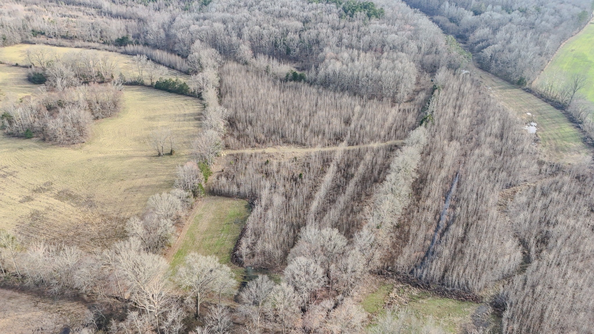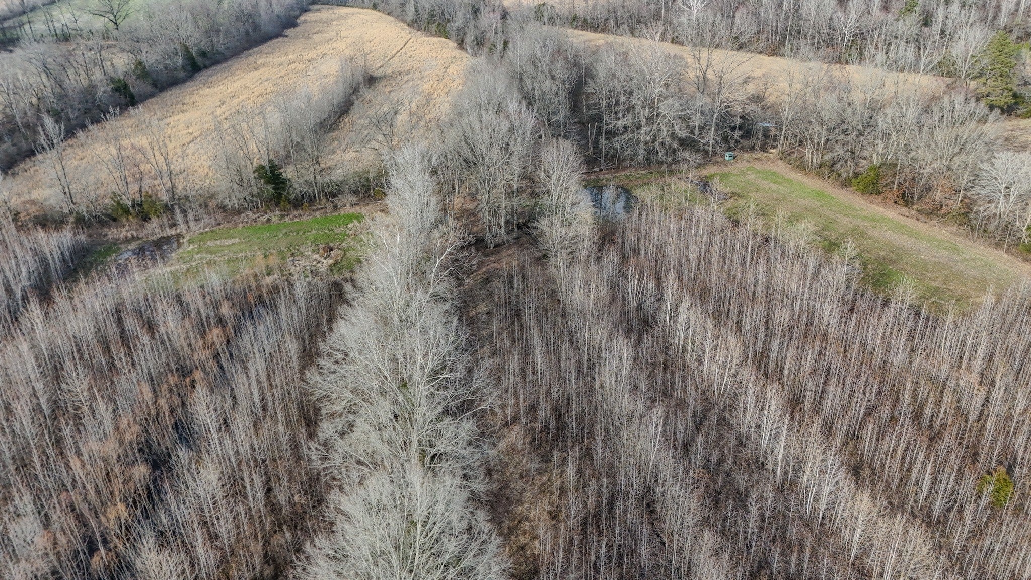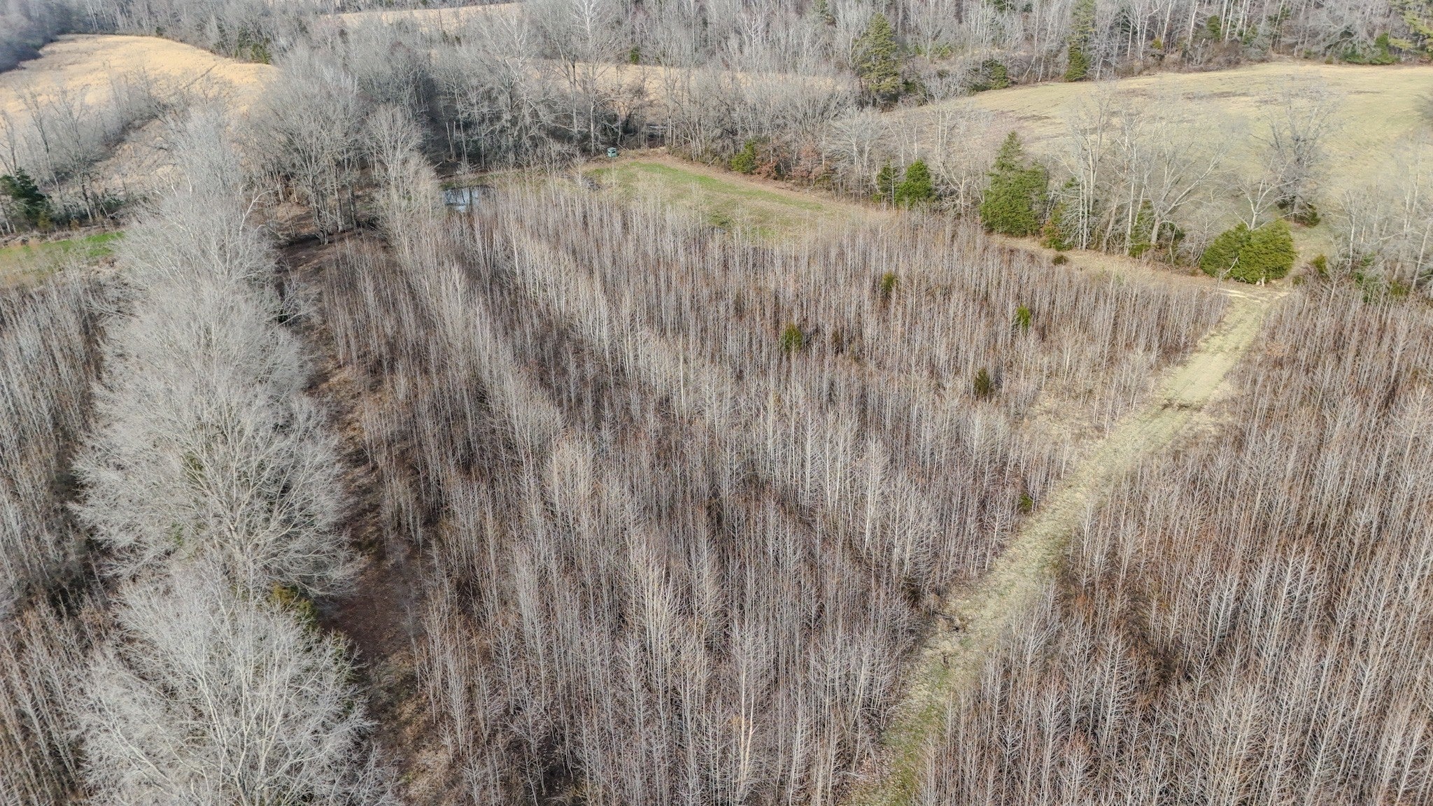 This versatile farm offers a balanced mix of open pasture, mature hardwoods, a pond set in a valley, and multiple potential build sites. Direct access from a county maintained road includes a new gate and gravel driveway that provides convenient entry and leads into the interior of the property. Large pasture areas offer flexibility for livestock, hay production, row crops, gardens, or additional food plots. Two established food plots are already in place and include Redneck hunting blinds positioned to overlook the fields. Dense undergrowth and early successional cover provide bedding and nesting habitat for deer, turkey, and small game. The pond is surrounded by mature timber and serves as a consistent water source for wildlife and livestock. An extensive internal trail system connects the pasture, pond, and wooded areas, supporting hunting access, equipment use, and general land management across much of the property. Make sure to watch the video tour below!
