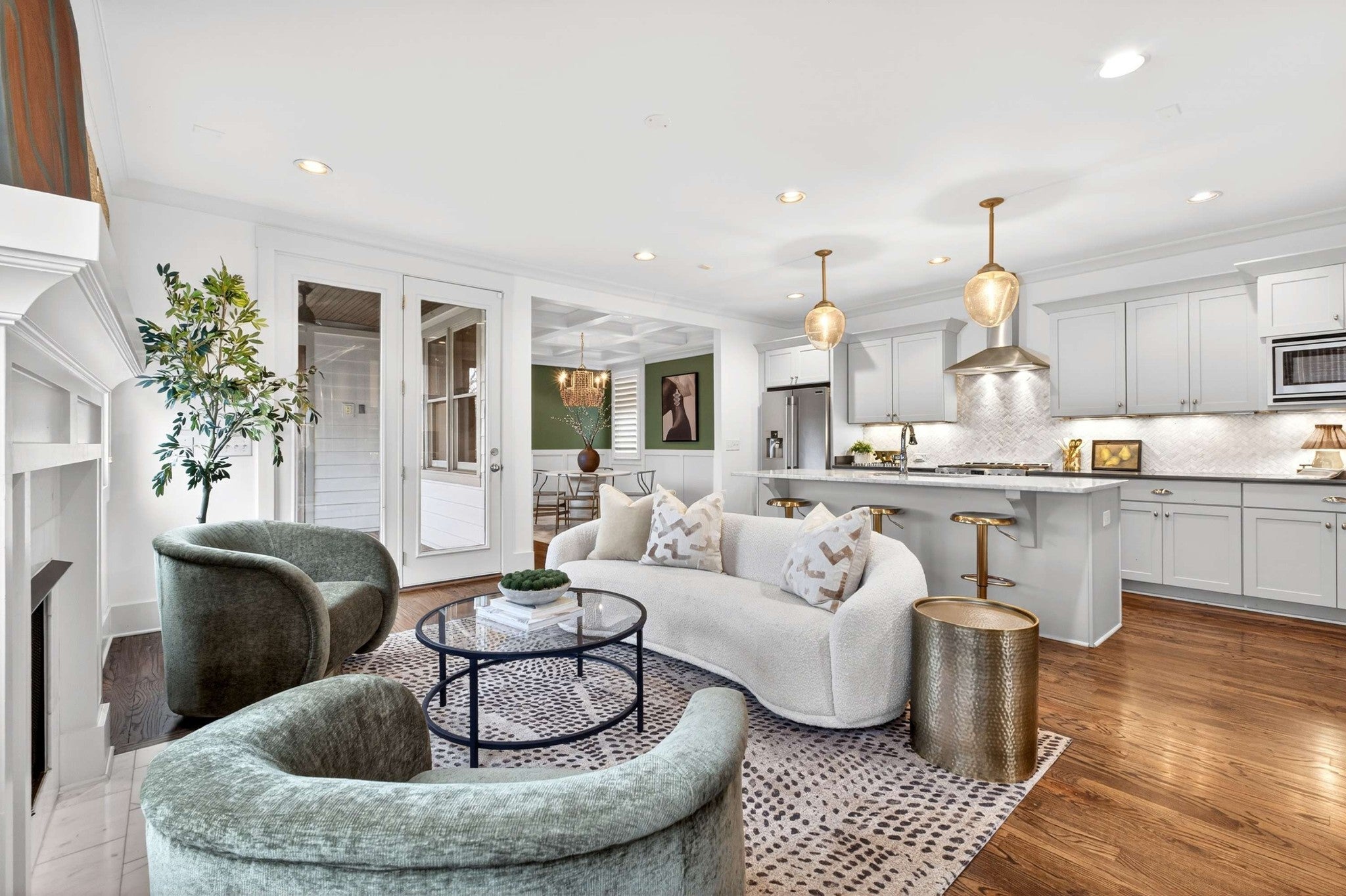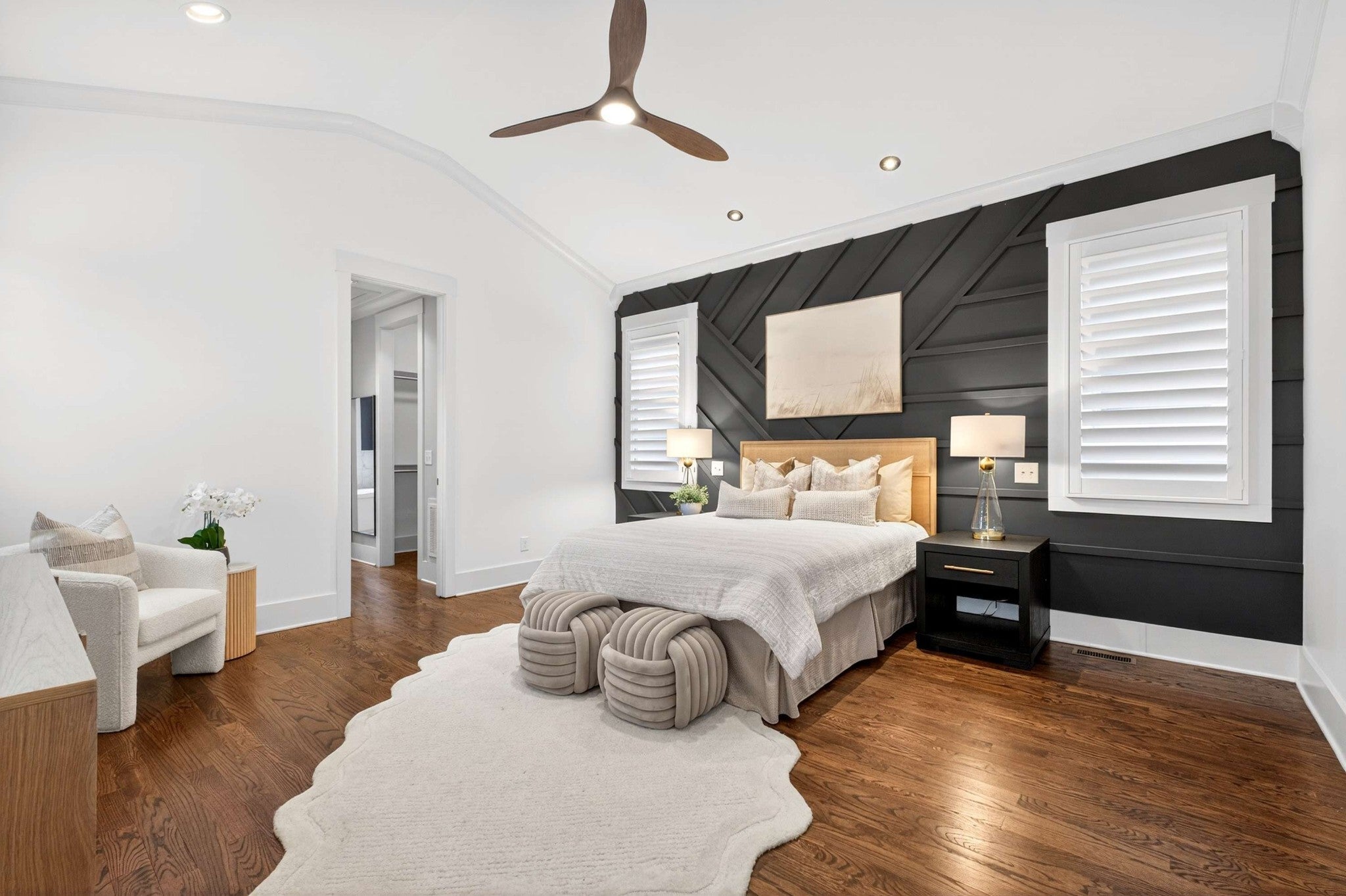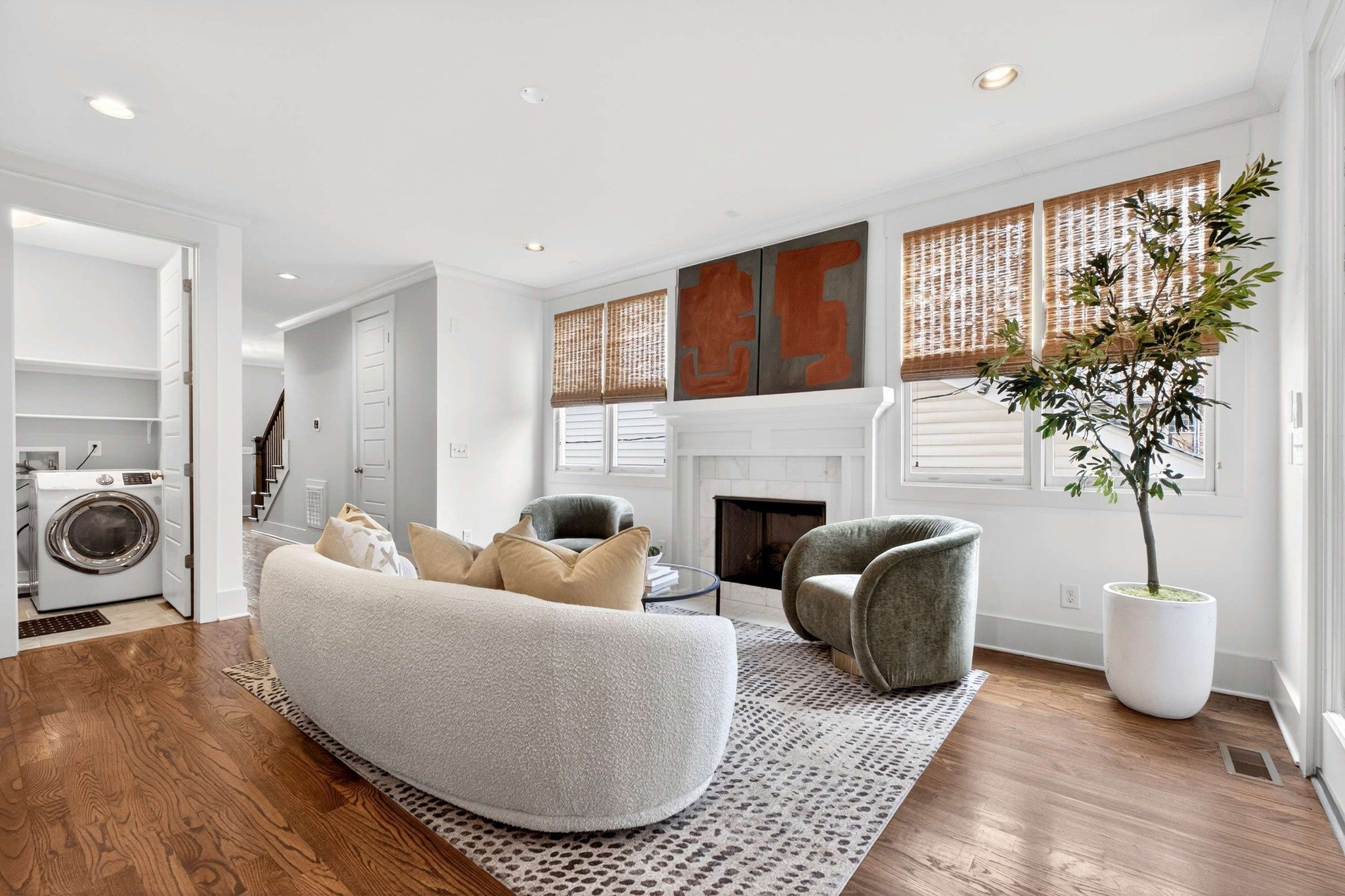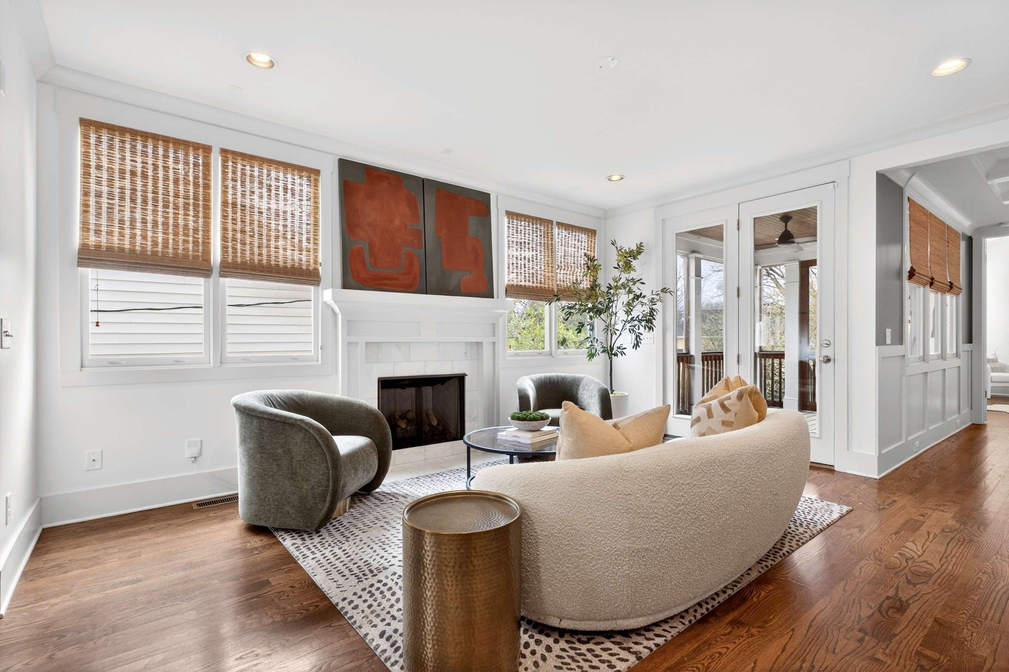 This stunning modern home is just minutes from Downtown Nashville and packed with custom touches and upscale finishes! A beautiful custom wood door welcomes you into a bright, open concept living space with fresh paint, hardwood floors, and all-new ceiling fans. The sunlit living room features a gas fireplace with a stylish tile mantle and flows seamlessly into a chef’s kitchen with white cabinetry, quartz countertops, custom tile backsplash, stainless appliances, new dishwasher, stove hood, walk-in pantry, and a large island with seating. The formal dining room shines with wainscoting and a coffered ceiling - ideal for entertaining. The main-level primary suite offers a vaulted ceiling and a spa-like bath with dual vanities, walk-in tile shower, freestanding soaking tub, private toilet room, and a walk-in closet with custom built-ins. Also on the main floor: a powder bath and mudroom for added convenience. Upstairs features three spacious bedrooms - all with walk-in closets - plus two full baths with updated hardware and a versatile loft bonus room. Enjoy the outdoors with a screened porch and large open deck overlooking a private, fenced backyard. Recent upgrades include a brand-new roof, new front windows, new ceiling fans, and all-new bathroom hardware. A one-car garage, utility room, and quick access to I-440, shopping, and dining complete this exceptional home. Stylish, spacious, and move-in ready - this one has it all!