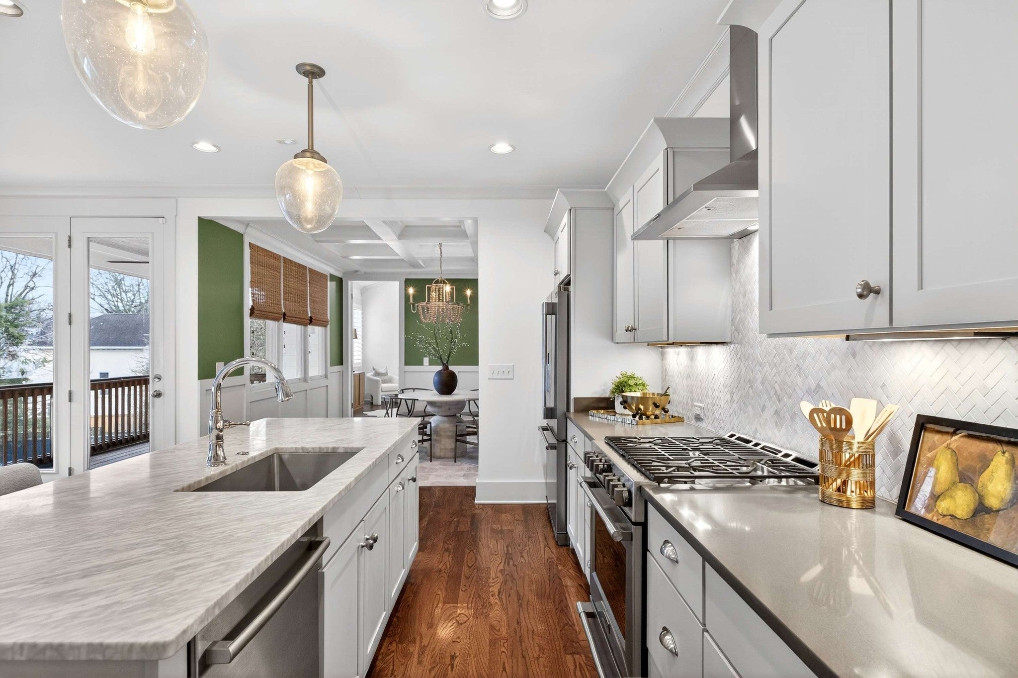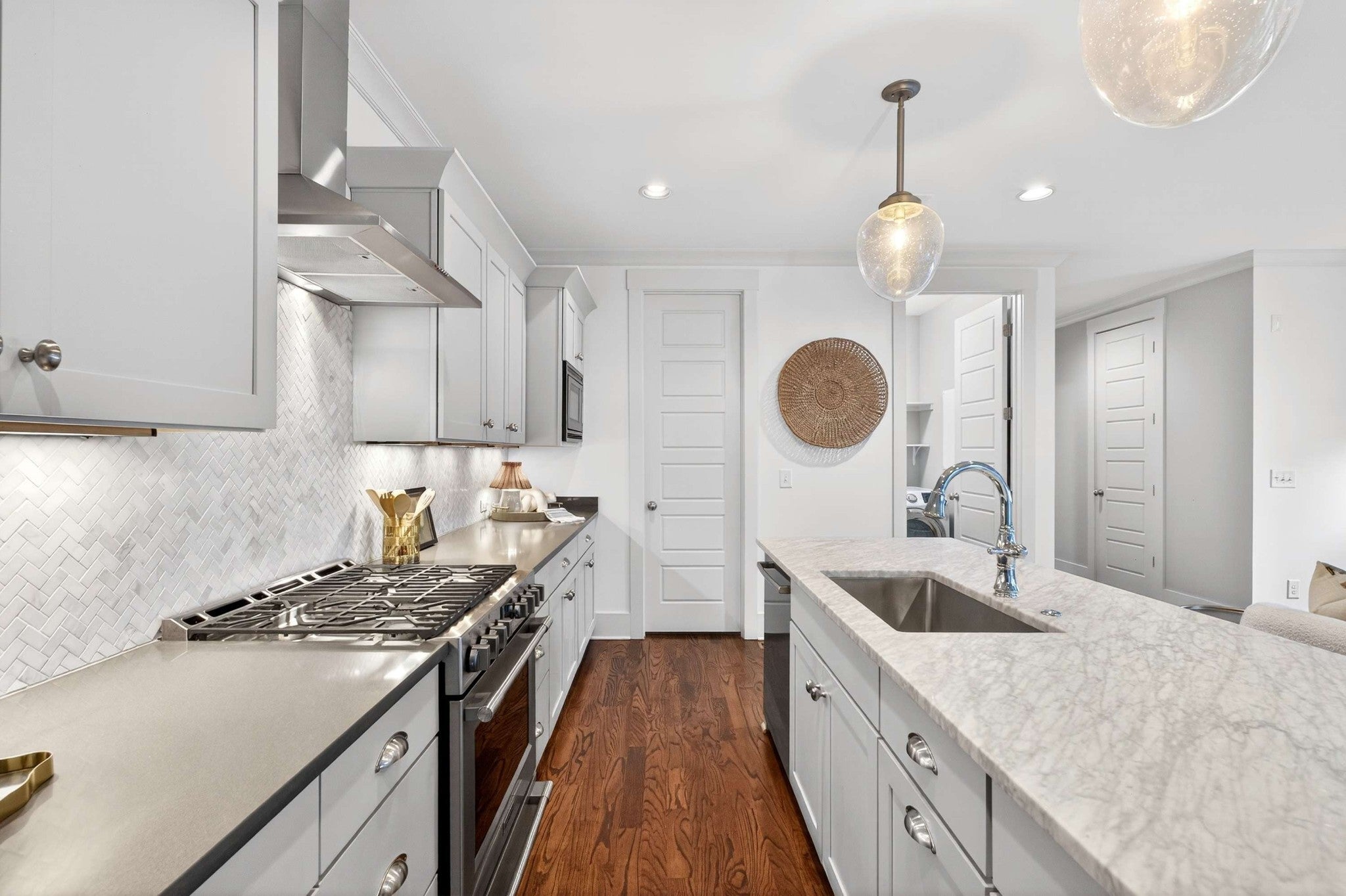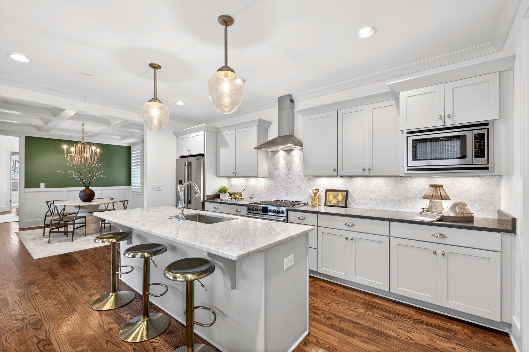 This stunning modern home is just minutes from Downtown Nashville and packed with custom touches and upscale finishes! A beautiful custom wood door welcomes you into a bright, open concept living space with fresh paint, hardwood floors, and all-new ceiling fans. The sunlit living room features a gas fireplace with a stylish tile mantle and flows seamlessly into a chef’s kitchen with white cabinetry, quartz countertops, custom tile backsplash, stainless appliances, new dishwasher, stove hood, walk-in pantry, and a large island with seating. The formal dining room shines with wainscoting and a coffered ceiling - ideal for entertaining. The main-level primary suite offers a vaulted ceiling and a spa-like bath with dual vanities, walk-in tile shower, freestanding soaking tub, private toilet room, and a walk-in closet with custom built-ins. Also on the main floor: a powder bath and mudroom for added convenience. Upstairs features three spacious bedrooms - all with walk-in closets - plus two full baths with updated hardware and a versatile loft bonus room. Enjoy the outdoors with a screened porch and large open deck overlooking a private, fenced backyard. Recent upgrades include a brand-new roof, new front windows, new ceiling fans, and all-new bathroom hardware. A one-car garage, utility room, and quick access to I-440, shopping, and dining complete this exceptional home. Stylish, spacious, and move-in ready - this one has it all!