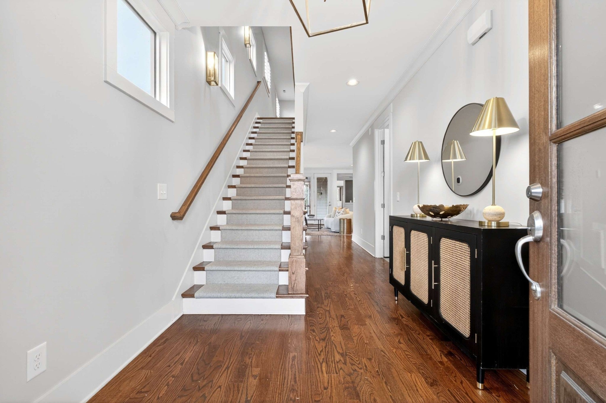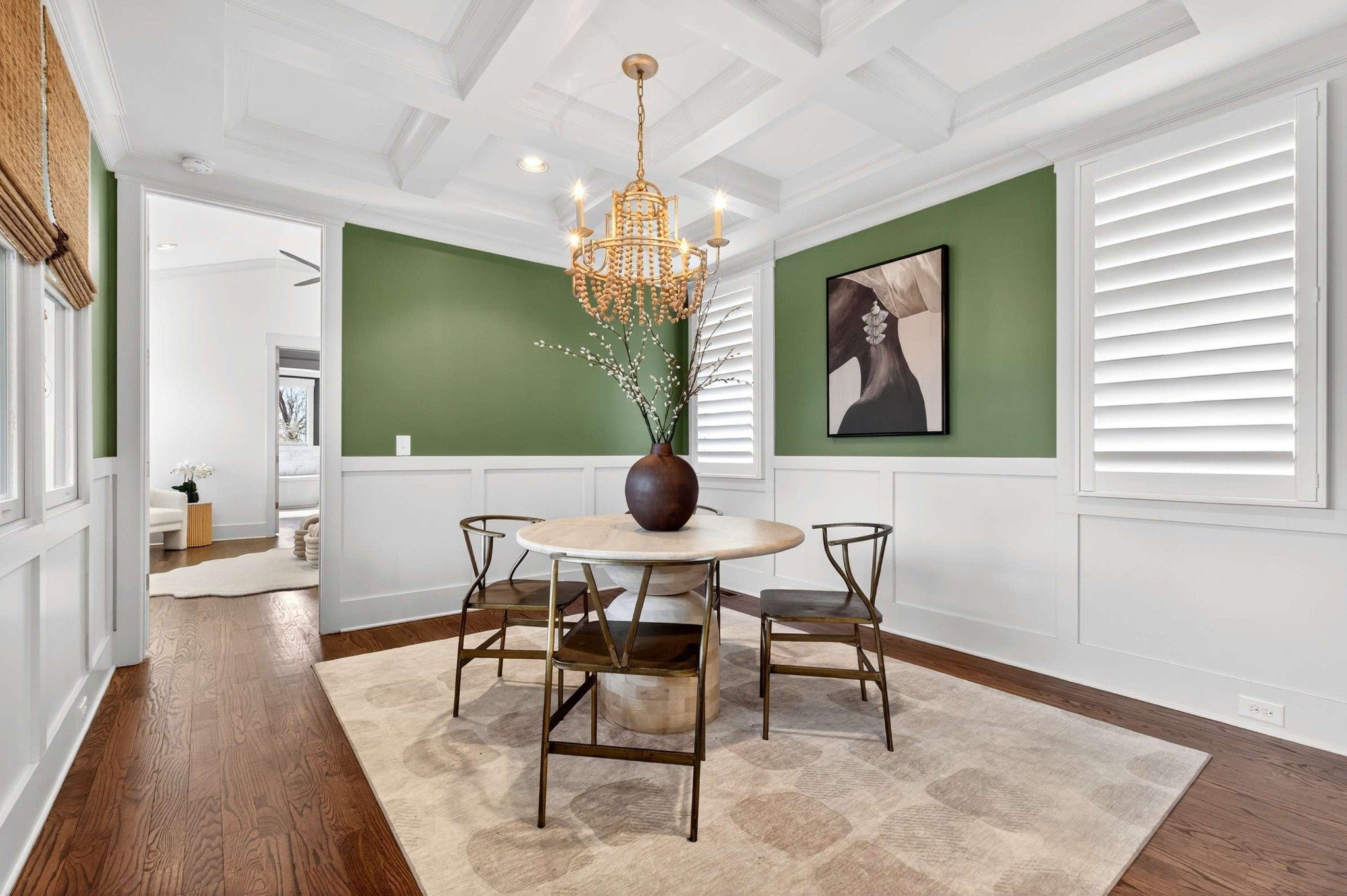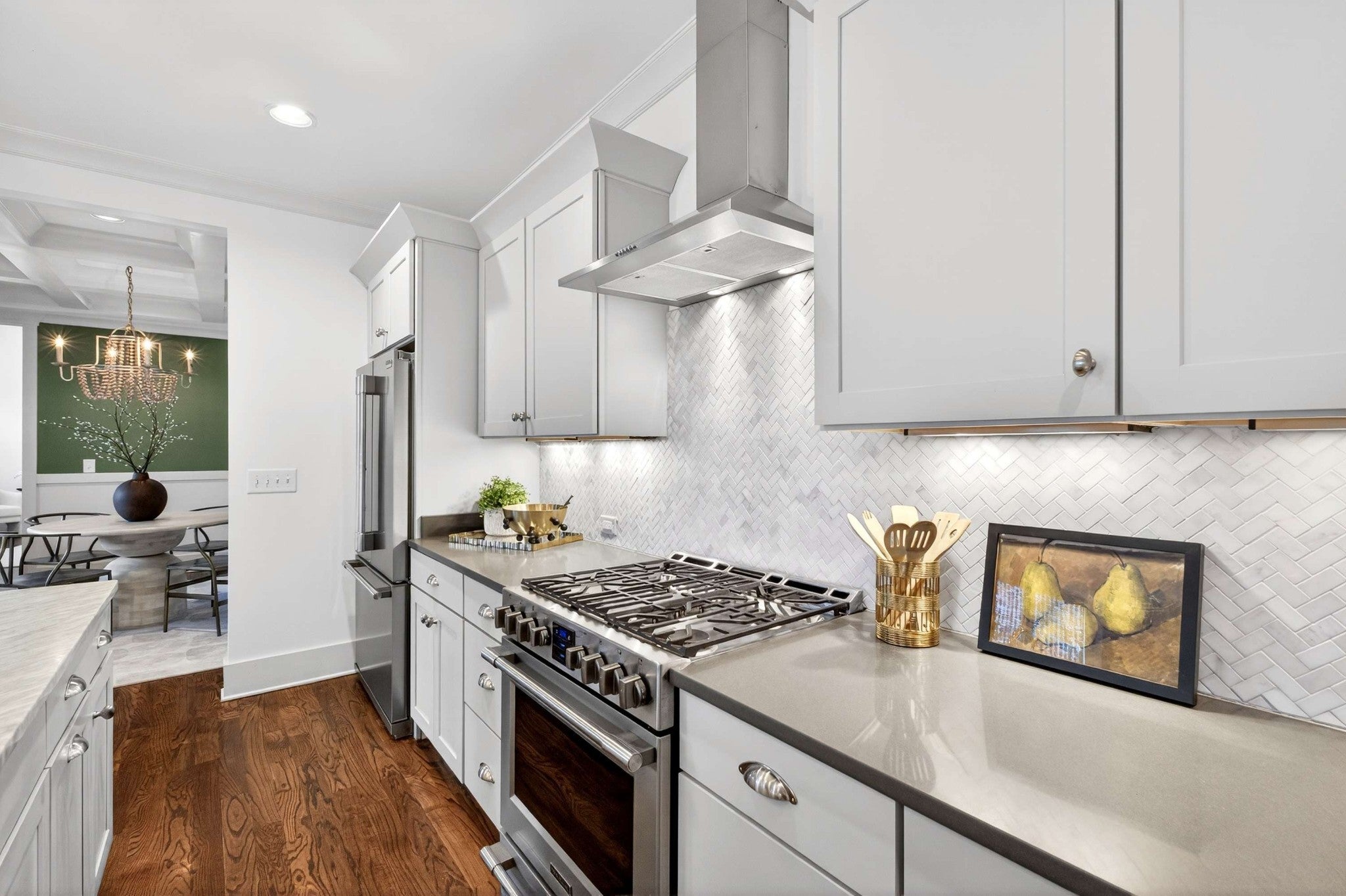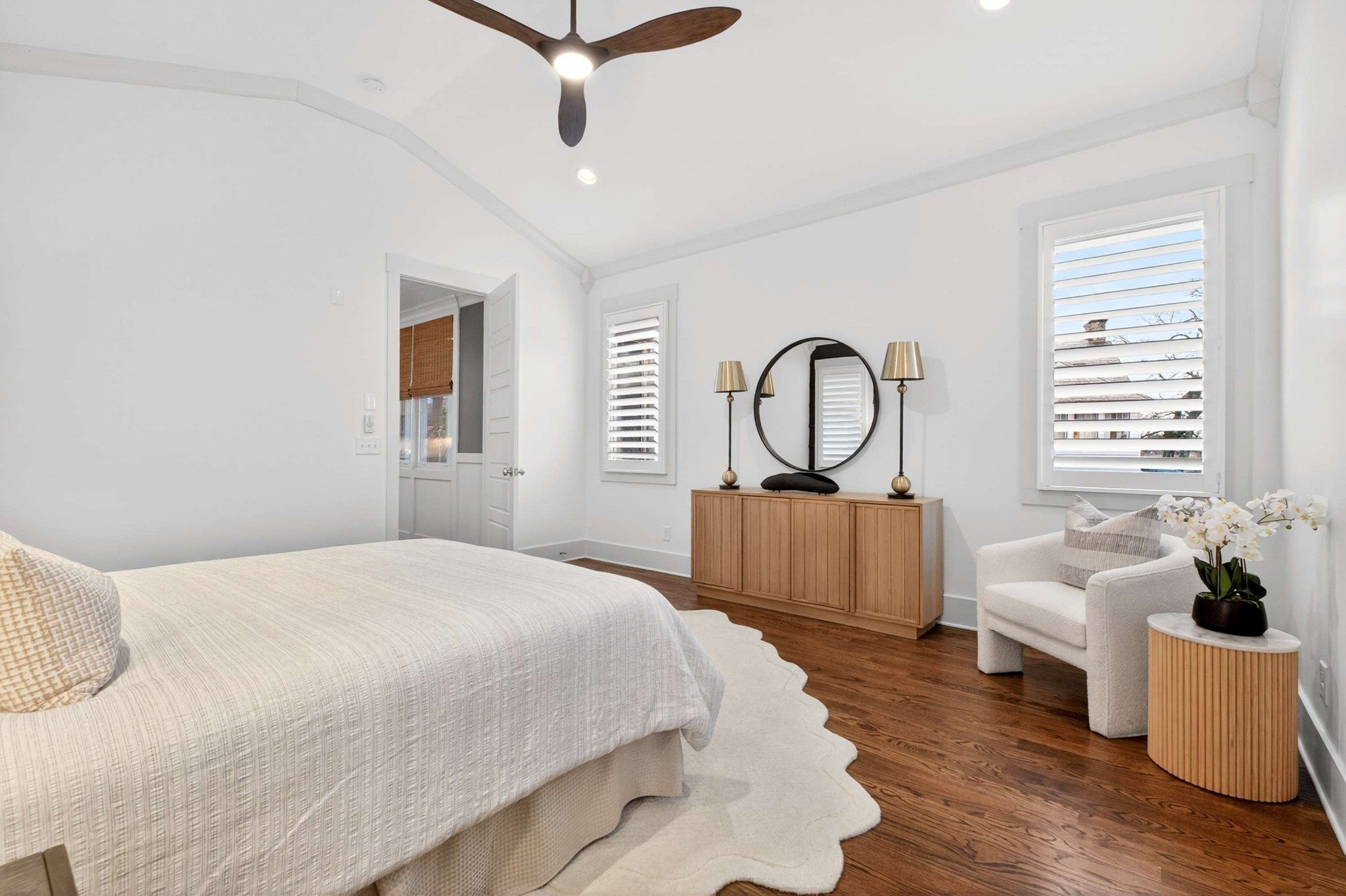 This stunning modern home is just minutes from Downtown Nashville and packed with custom touches and upscale finishes! A beautiful custom wood door welcomes you into a bright, open concept living space with fresh paint, hardwood floors, and all-new ceiling fans. The sunlit living room features a gas fireplace with a stylish tile mantle and flows seamlessly into a chef’s kitchen with white cabinetry, quartz countertops, custom tile backsplash, stainless appliances, new dishwasher, stove hood, walk-in pantry, and a large island with seating. The formal dining room shines with wainscoting and a coffered ceiling - ideal for entertaining. The main-level primary suite offers a vaulted ceiling and a spa-like bath with dual vanities, walk-in tile shower, freestanding soaking tub, private toilet room, and a walk-in closet with custom built-ins. Also on the main floor: a powder bath and mudroom for added convenience. Upstairs features three spacious bedrooms - all with walk-in closets - plus two full baths with updated hardware and a versatile loft bonus room. Enjoy the outdoors with a screened porch and large open deck overlooking a private, fenced backyard. Recent upgrades include a brand-new roof, new front windows, new ceiling fans, and all-new bathroom hardware. A one-car garage, utility room, and quick access to I-440, shopping, and dining complete this exceptional home. Stylish, spacious, and move-in ready - this one has it all!