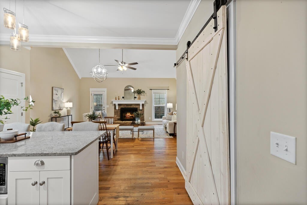 DREAMS DO COME TRUE!! Welcome home to this beautiful 2016 Craftsman-style residence offering 2,752 square feet of thoughtfully designed living space in the highly desirable Kensington Park subdivision. This spacious home features 4 bedrooms and 3 full bathrooms with a functional open-concept layout ideal for both everyday living and entertaining. The main level showcases solid hardwood flooring throughout the living areas, tile in the laundry and baths, and a seamless flow between spaces. The heart of the home is the chef's kitchen, complete with granite countertops, a gas range, abundant cabinetry, a large island bar, and two pantries for exceptional storage. All appliances are gas, including gas heat, a cozy gas fireplace, and an instant tankless gas water heater--providing both efficiency and comfort. The oversized primary suite on the main level is a true retreat, featuring sliding glass doors that open to the back patio. The luxury ensuite bath offers a soaker tub, separate tiled shower, double vanity, private water closet, and generous space to unwind. Also on the main level: • Separate formal dining room • Full bathroom • Large laundry room with utility sink • Spacious two-car garage Upstairs, you'll find two additional bedrooms plus a generous bonus room that can easily serve as a recreation space or fourth bedroom. A hardwood landing overlooks the vaulted living room below, adding architectural character and an open, airy feel. Situated on a corner lot with a spacious side yard, this home offers both curb appeal and room to enjoy outdoor living. Location is exceptional--less than 3 minutes to Interstate 75 and convenient to all North Cleveland restaurants and shopping. Zoned for highly sought-after Candies Creek Cherokee Elementary and Cleveland City Schools. This is a rare opportunity to own a well-appointed Craftsman home in one of the area's most convenient and desirable neighborhoods. Call your favorite Realtor for a private tour today!