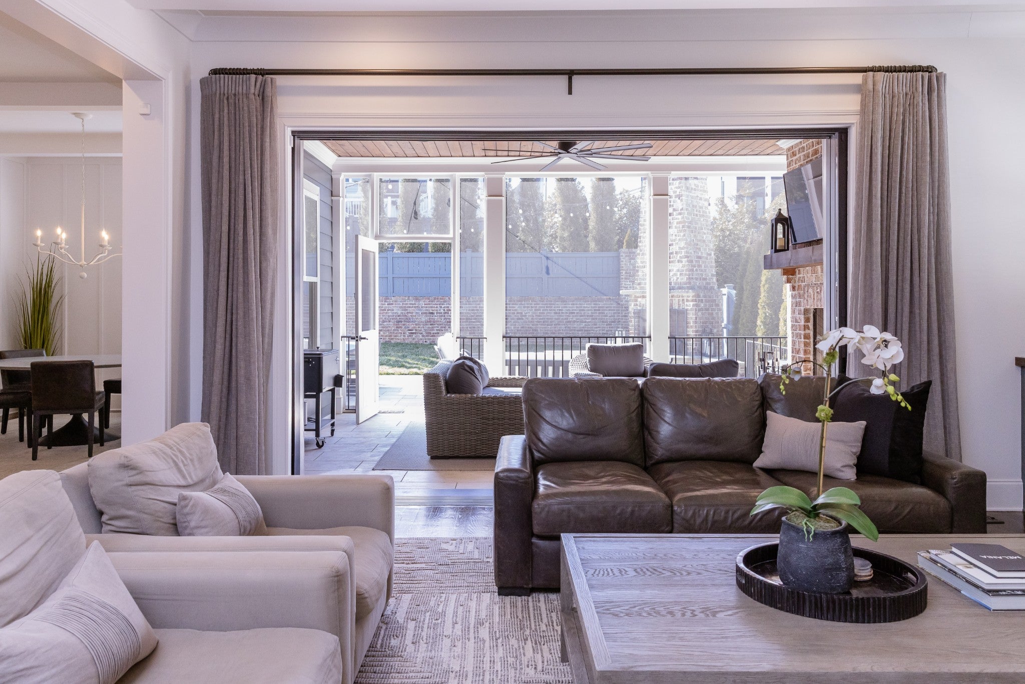 Built by Zurich Homes, this 5-bedroom, 5.5-bath residence offers thoughtful design, quality craftsmanship, and functional living throughout. The main level features a private primary suite with two oversized walk-in closets, a dedicated office (or optional guest bedroom), and seamless flow for everyday living and entertaining. The chef’s kitchen is equipped with double ovens, a gas cooktop, abundant prep space, and connects to a formal dining room, breakfast area, and well-appointed butler’s pantry. A spacious laundry room provides additional cabinetry and workspace. Oversized sliding doors open the main living area to a large screened porch, creating true indoor-outdoor living. Three fireplaces - in the great room, screened porch, and outdoor patio - make the home ideal for year-round gatherings. Upstairs offers three secondary bedrooms and a generous bonus room. Additional highlights include a front-loading three-car garage with epoxy floors, built-in workbench, and ample storage, professional landscape lighting and full irrigation in both front and rear yards, a security camera system covering the front and back of the home, and an August smart lock system for added convenience and peace of mind. A well-designed home offering comfort, storage, and versatility in every space.