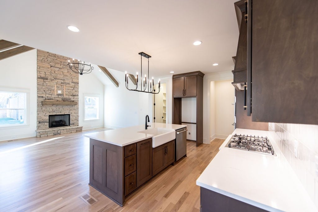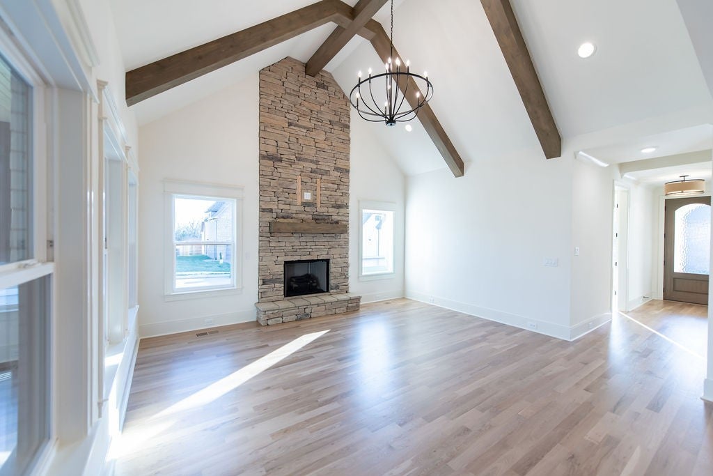✨ New Construction in Stonehollow – The Lillian Plan ✨ Welcome to the beautifully designed Lillian Plan, offering 4 bedrooms, 3 full baths, and a thoughtfully crafted layout perfect for modern living. The main level features a spacious Owner’s Suite and Bedroom #2, along with a dedicated Office/Study ideal for working from home. The stunning Great Room showcases a vaulted ceiling with cedar beams and a dramatic floor-to-ceiling stone gas fireplace. The kitchen is equipped with custom wood cabinetry and elegant quartz/granite countertops, which are also featured in the Owner’s Bath. Sand & finish hardwood flooring runs throughout the main level, adding warmth and sophistication. Upstairs you’ll find Bedrooms #3 and #4 plus a generous 14x19 bonus room over the two-car garage — perfect for a media room, playroom, or guest retreat. Enjoy outdoor living year-round on the screened-in covered back porch. Additional highlights include: • Full yard sod • Epoxy-coated garage floors • Two-car garage • 2-10 Home Warranty included This exceptional new construction home combines quality craftsmanship with timeless design — don’t miss your opportunity to own in desirable Stonehollow!