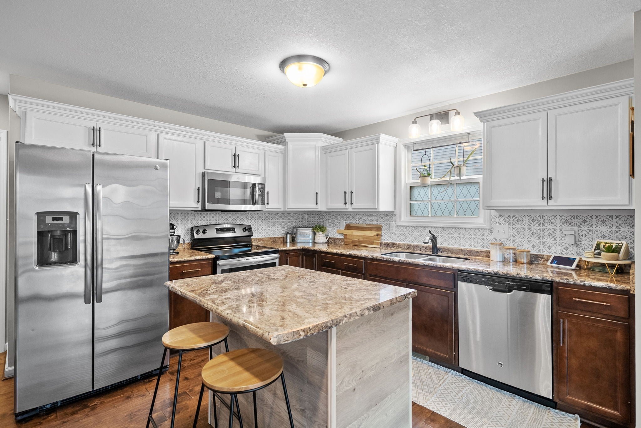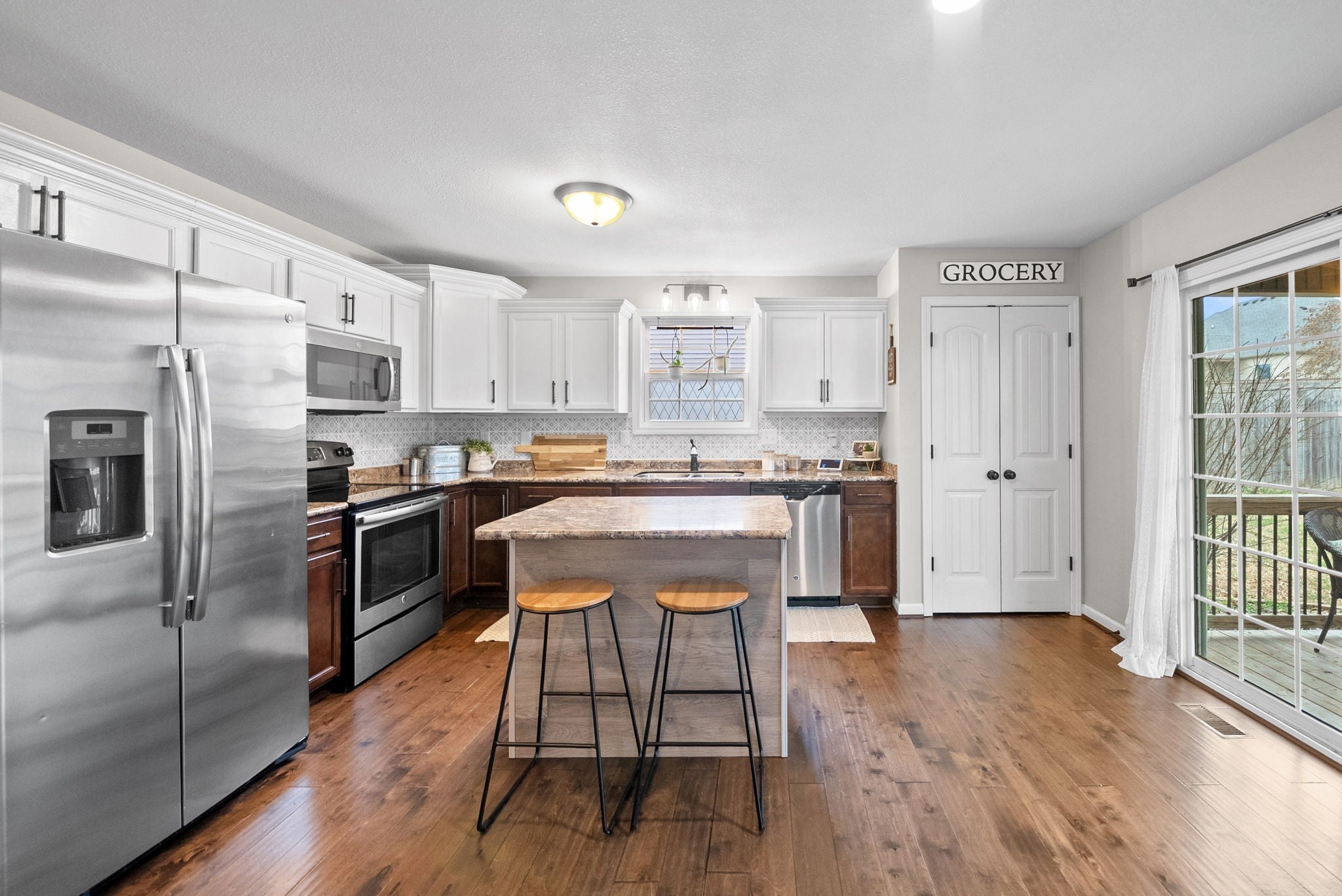 - Electric Oven, Cooktop, Dishwasher, Microwave, Refrigerator, Stainless Steel Appliance(s)