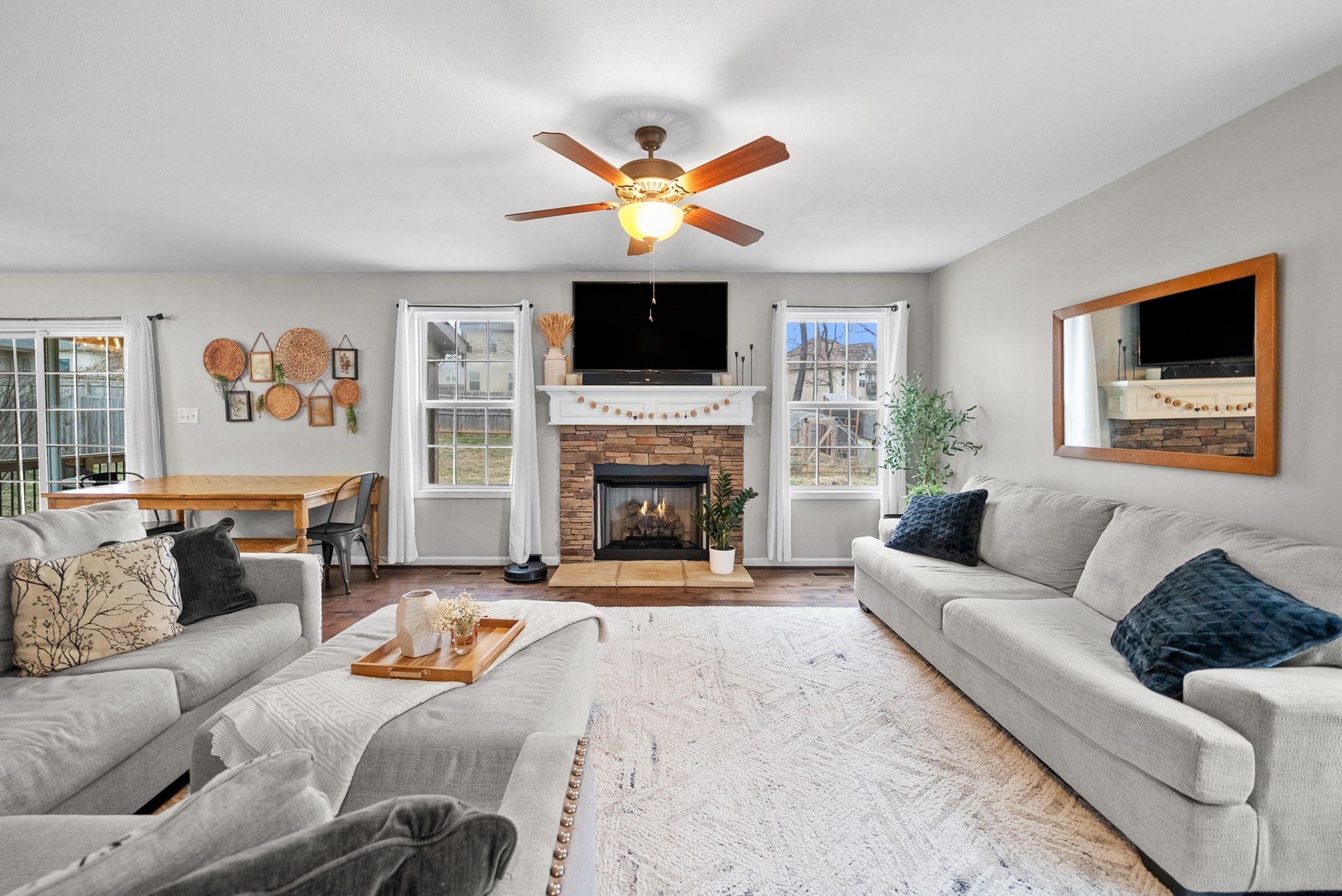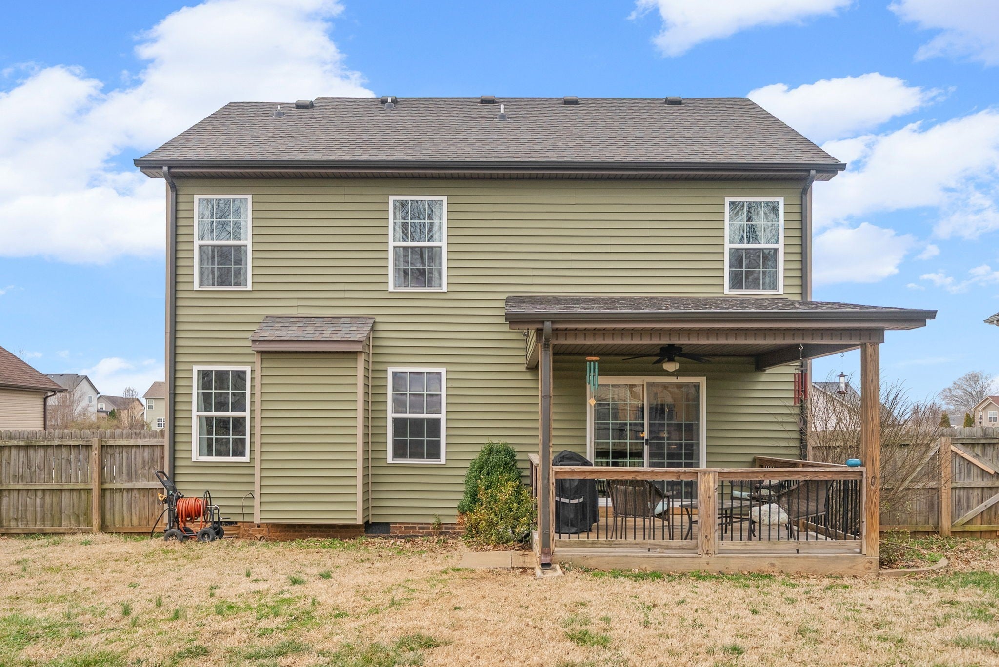 Link for video tour below! This one has it ALL! ASSUMABLE VA LOAN WITH 2.75% RATE! ALL NEW CARPET! Upstairs Laundry! Bonus room! Fully Fenced Backyard! Welcome to this beautiful home offering classic curb appeal, a covered front porch, and a spacious two-car garage. The first floor has an open floor plan with a large living room centered around a stone fireplace, and large windows for natural light. The kitchen features granite countertops, stainless steel appliances, and island for extra seating, and: a built in coffee bar! The half bathroom on the first floor features a custom shiplap accent wall. The stairs and second floor were re-carpeted in Feb of 2026. The master bedroom is spacious with a tray ceiling, walk-in closet, custom green cabinets and hand painted accent wall in the ensuite bathroom, and a XL soaking tub. Bonus room at the front of the home has hardwoods and could be used as an additional bedroom. The backyard has a covered back porch, is fully fenced, and a garden bed ready for you to plant in the spring!